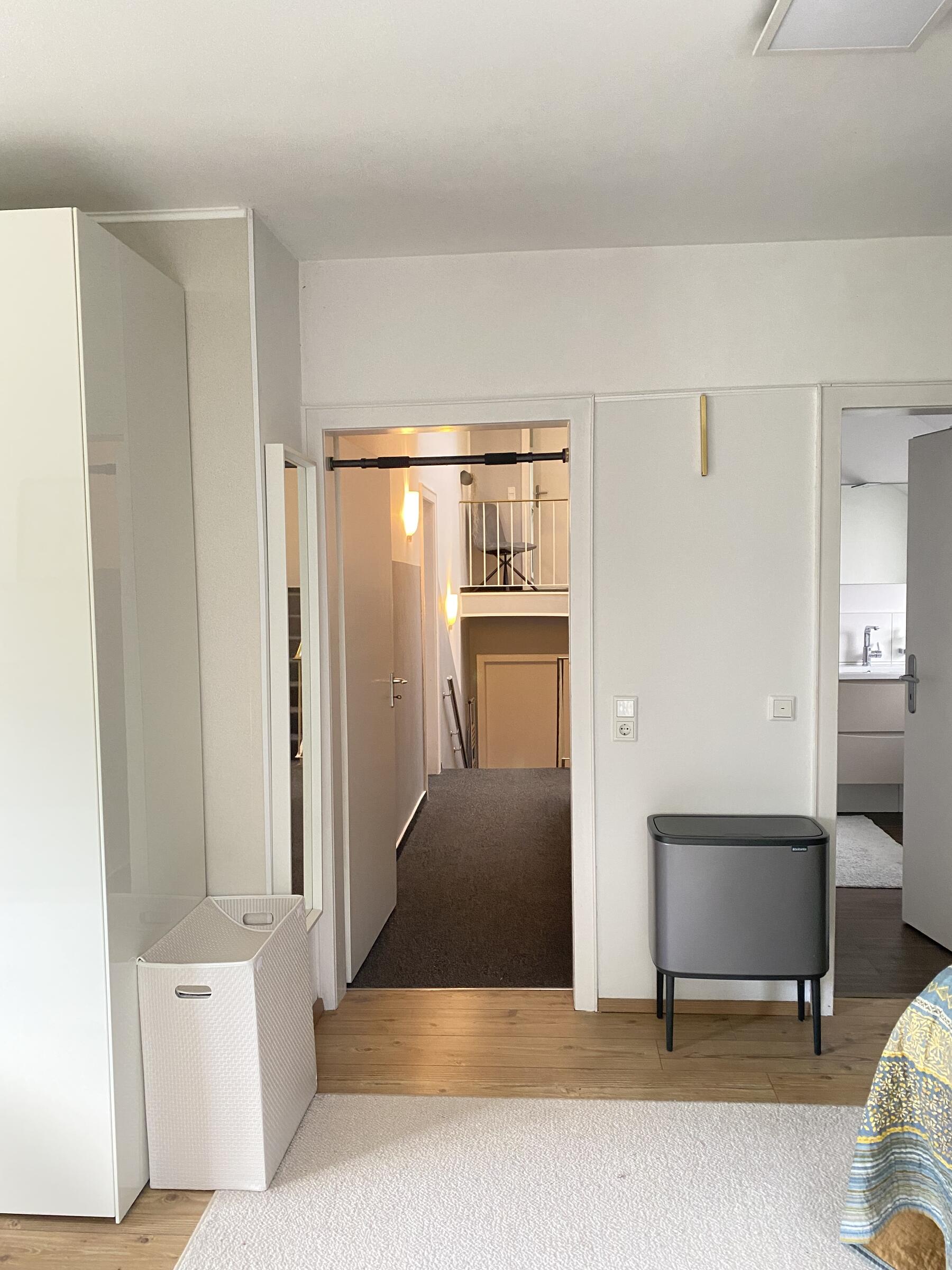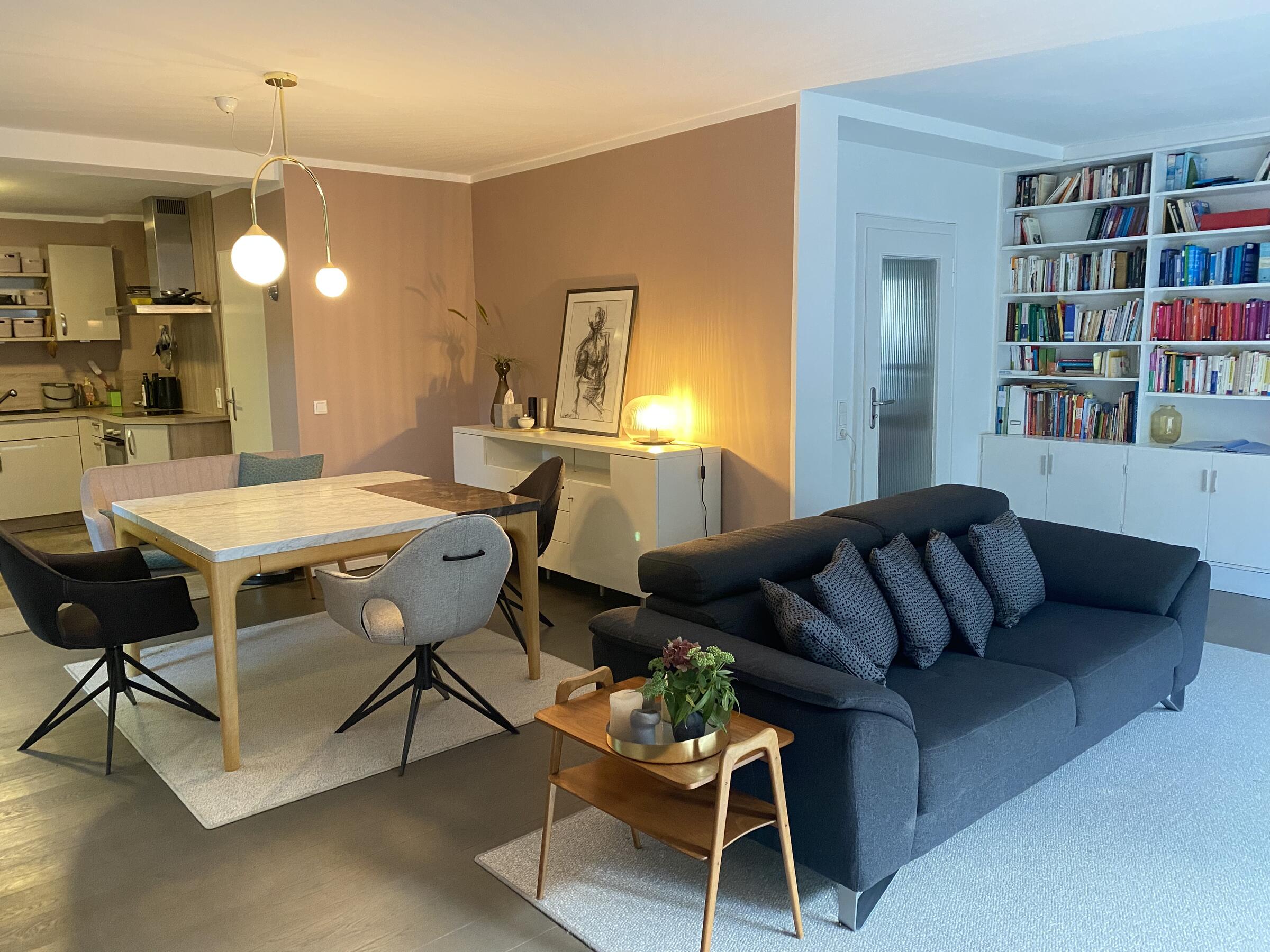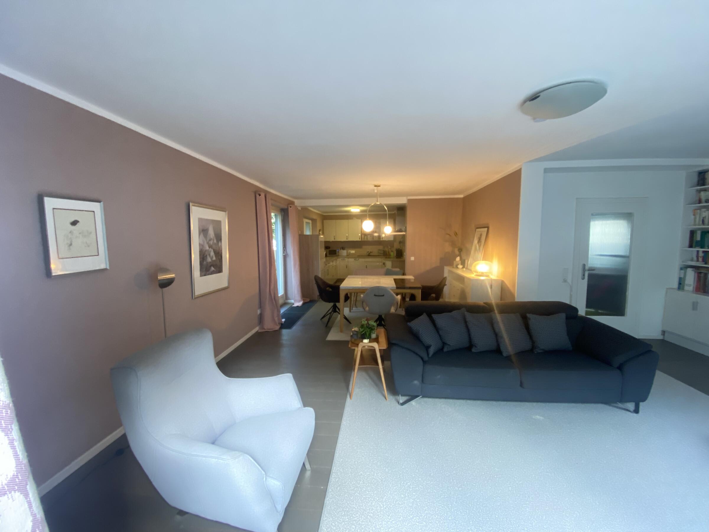 Unser freistehendes Haus ist vielseitig nutzbar. Es erstreckt sich über fünf Ebenen, die jeweils auf halber Höhe angeordnet sind. Der Außenanblick lässt das geräumige Innere nicht vermuten. Dieses Innere umfasst zwei sehr großflächige Ebenen, welche durch dezente und doch auffällige Farbgebung und Inneneinrichtung sehr ansprechend sind. Das Haus selbst ist umgehbar und zur einen Seite durch einen kleinen Wasserlauf vom Nachbargrundstück begrenzt. Die Straße von 1936 ist noch original erhalten und zeichnet sich durch eine zurückhaltende und freundliche Nachbarschaft aus. Es stehen zahlreiche Parkmöglichkeiten zur Verfügung.