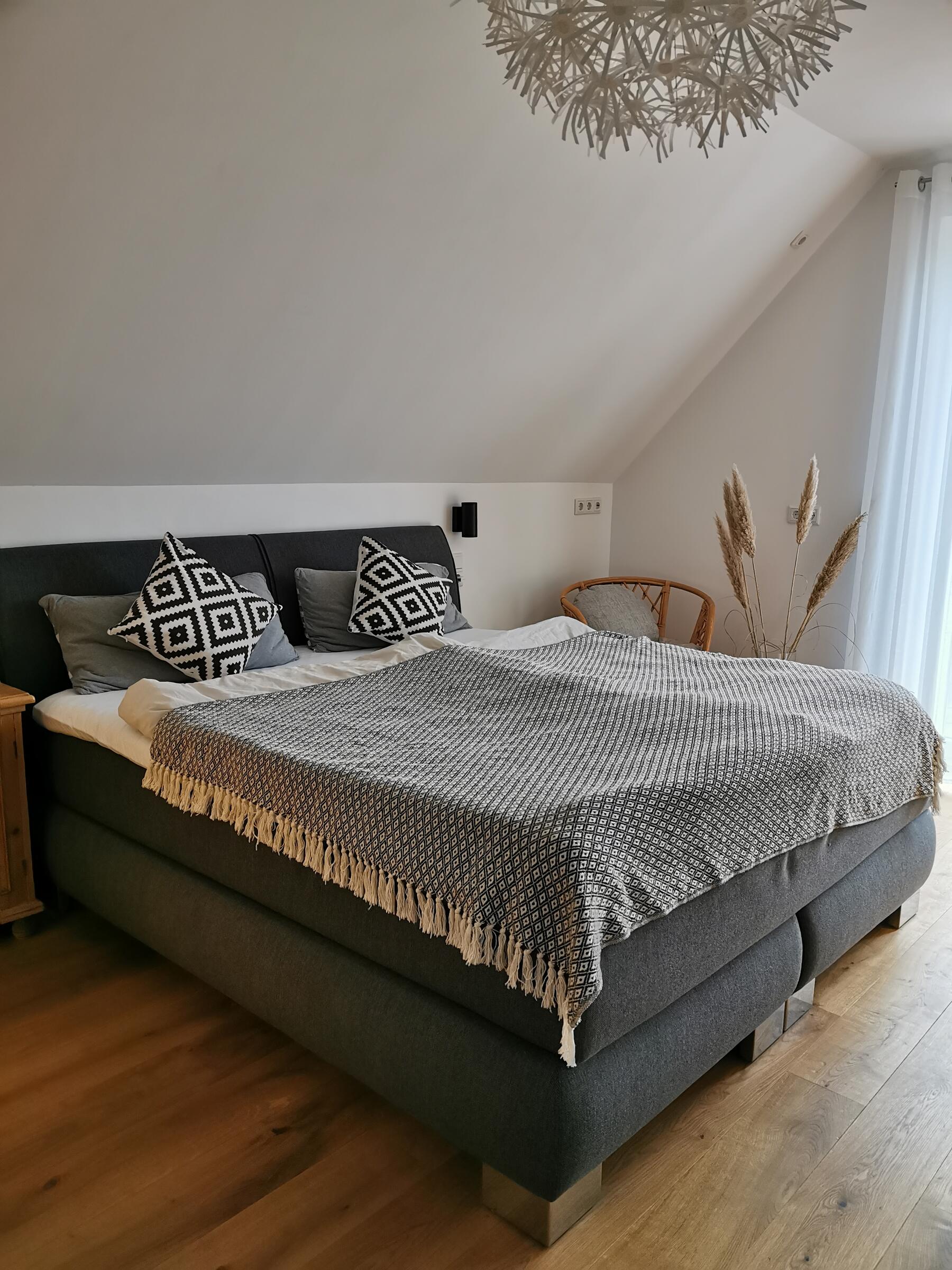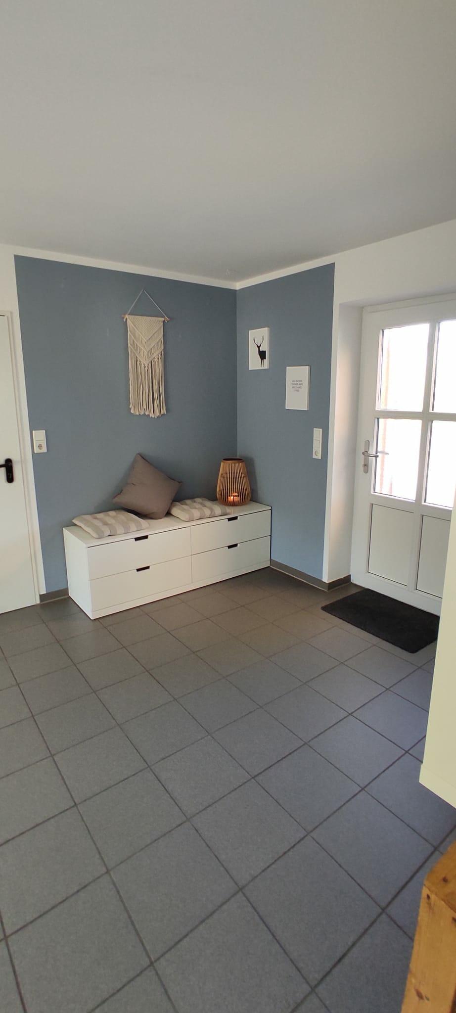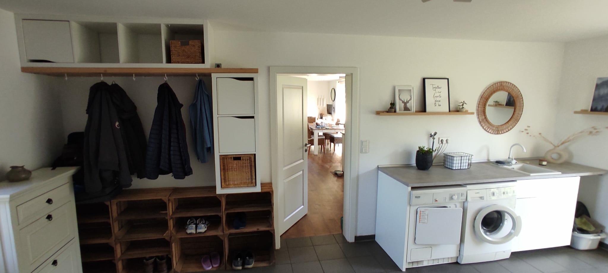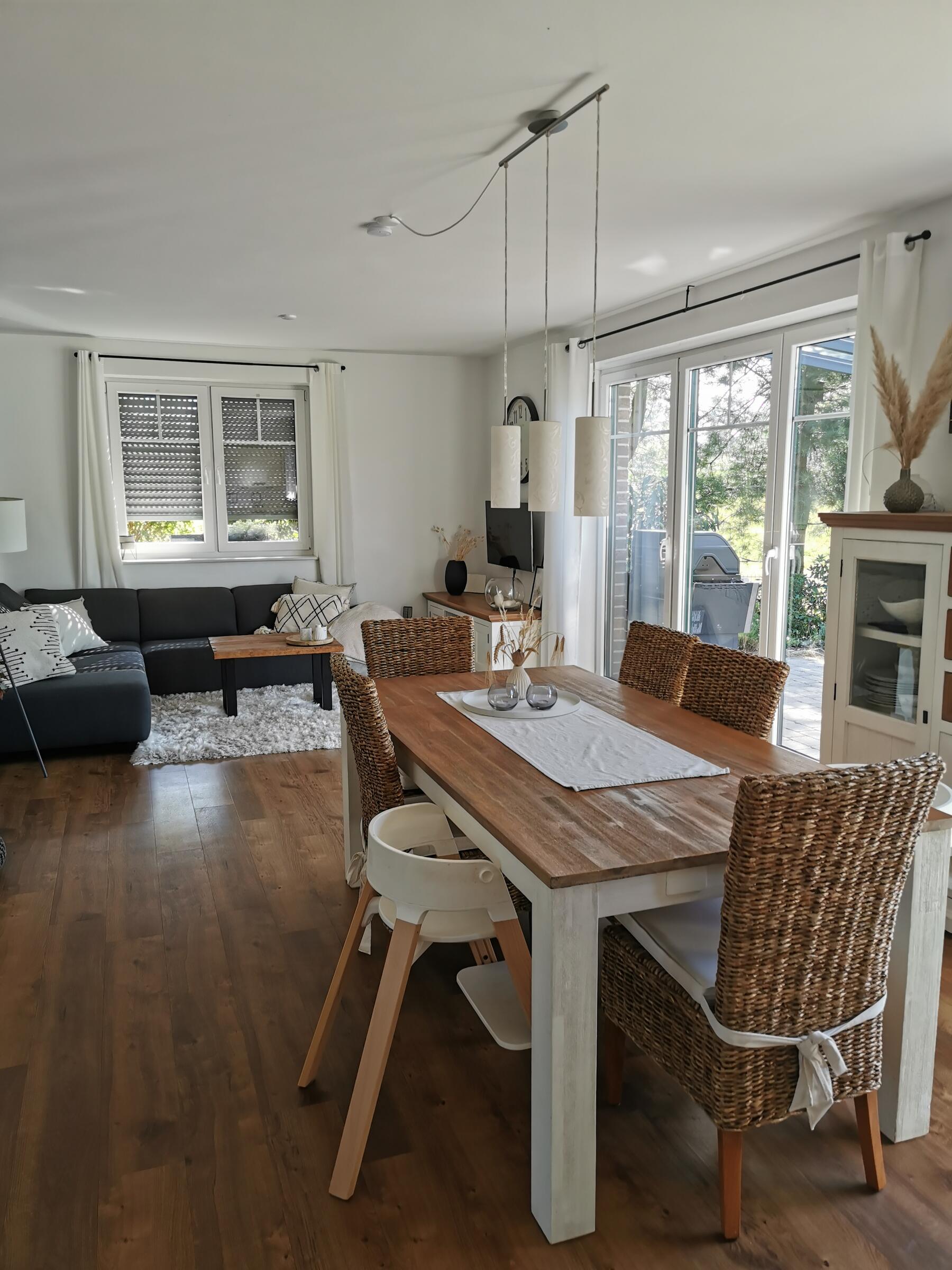 Am Rande eines kleinen Dorfes zwischen Bauernhöfen, Feldern und Wäldern befindet sich unser modernes Einfamilienhaus auf einem 900 m² großen idyllischen Grundstüсk. Die Räume unseres ca. 160 m² großen Einfamilienhauses sind sehr hell und im skandinavischen Look gestaltet. Aufgrund der bodentiefen und großen Fenster fällt viel Licht in die Räume. Im Außenbereich bietet unser Grundstück eine große Terrasse, einen großen Garten direkt vorm Waldrand.
