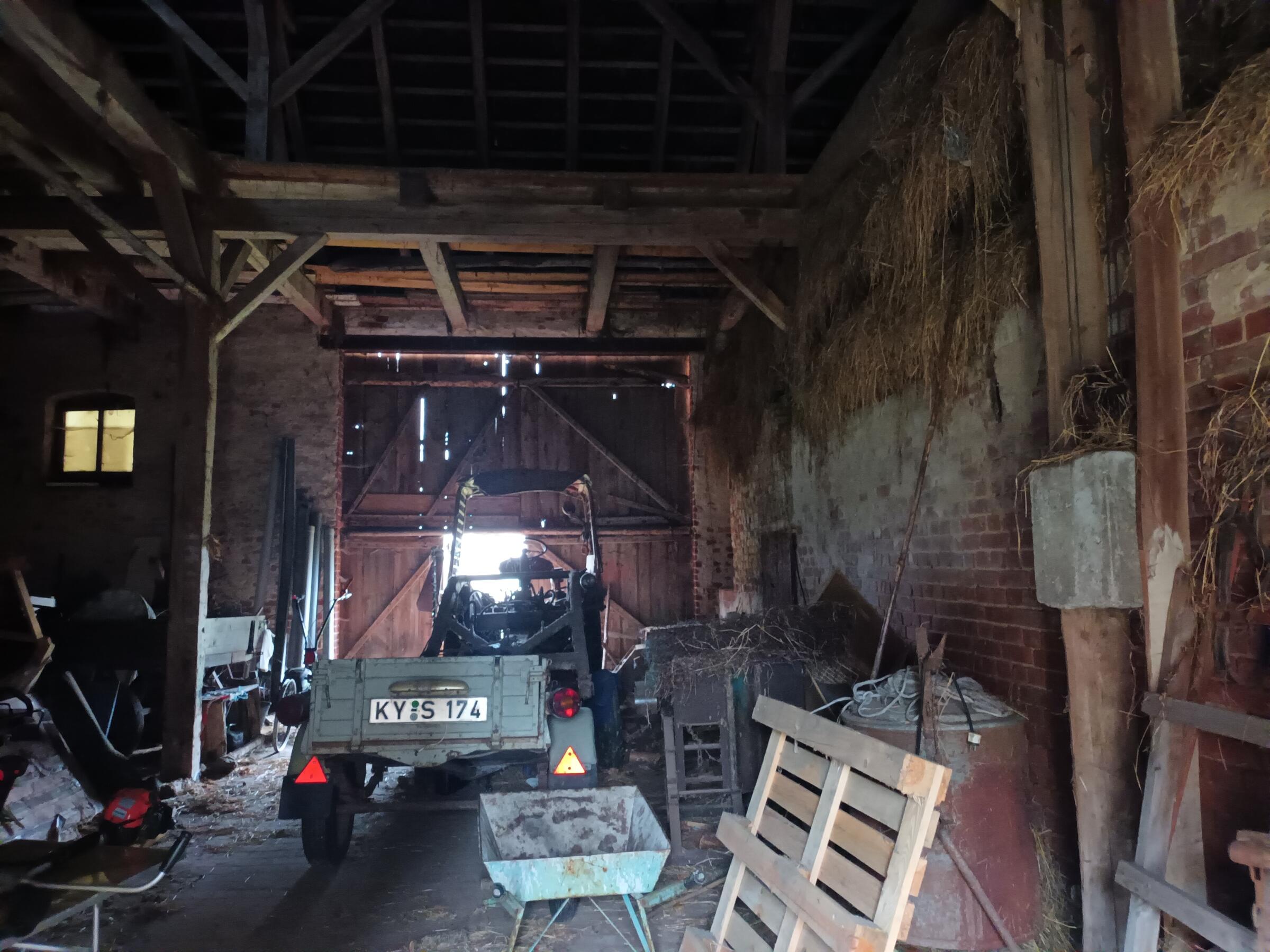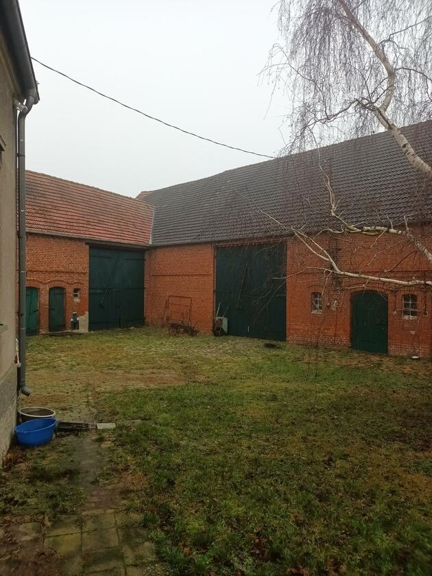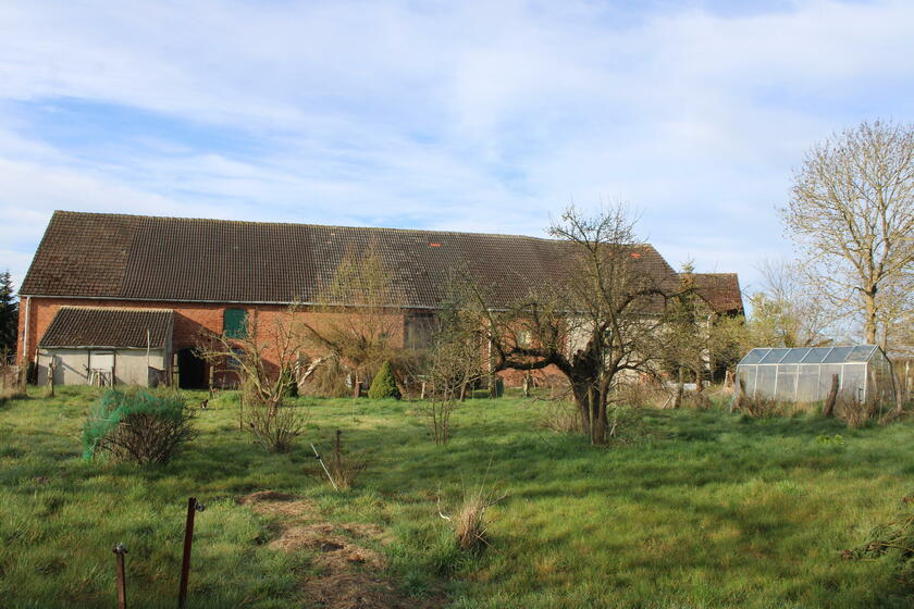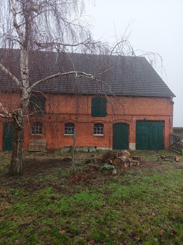 Der Dreiseitenhof wurde in den frühen Jahren des 20. Jahrhunderts errichtet und befindet sich in einer sehr ländlichen Gegend. Der Hof besteht aus einem traditionellen Bauernhaus und einer beeindruckenden Backsteinscheune mit verschiedenen Ställen. Das Bauernhaus bietet typisch eingerichtete Wohnräume. Das Mobiliar und die Einrichtungsgegenstände sind funktionell und dem Hof entsprechend in die Jahre gekommen. Die Fenster können mit Außenrollläden verdunkelt werden. Die Räume dürfen nach Absprache teilweise umgestaltet werden. Im Außenbereich stehen neben dem Innenhof auch eine großzügige Wiesenfläche und zwei verwilderte Gärten zur Verfügung. Parkplätze gibt es auf dem Hof.