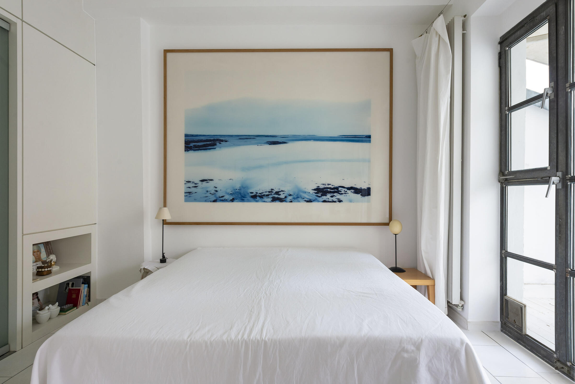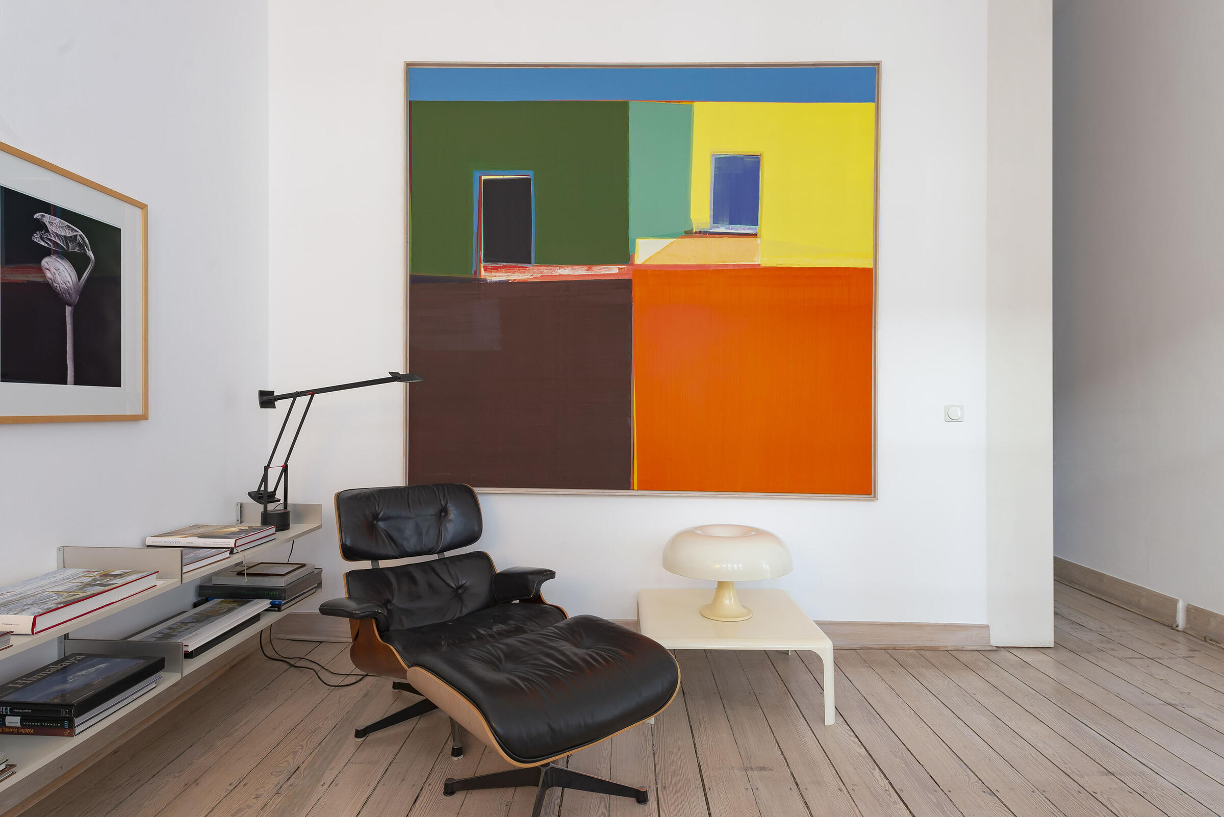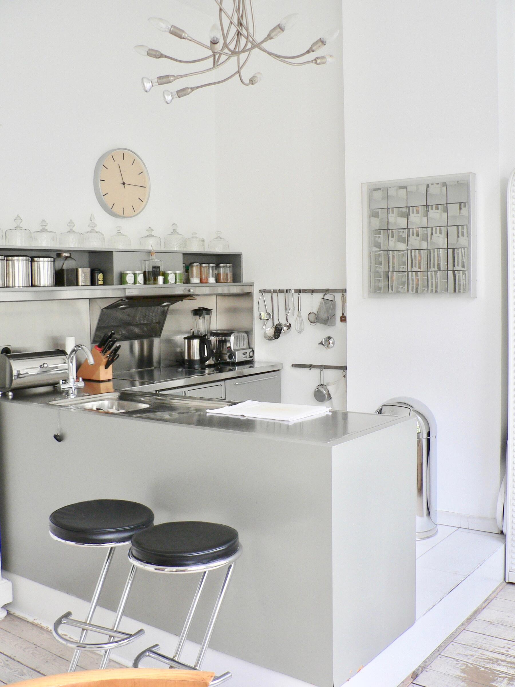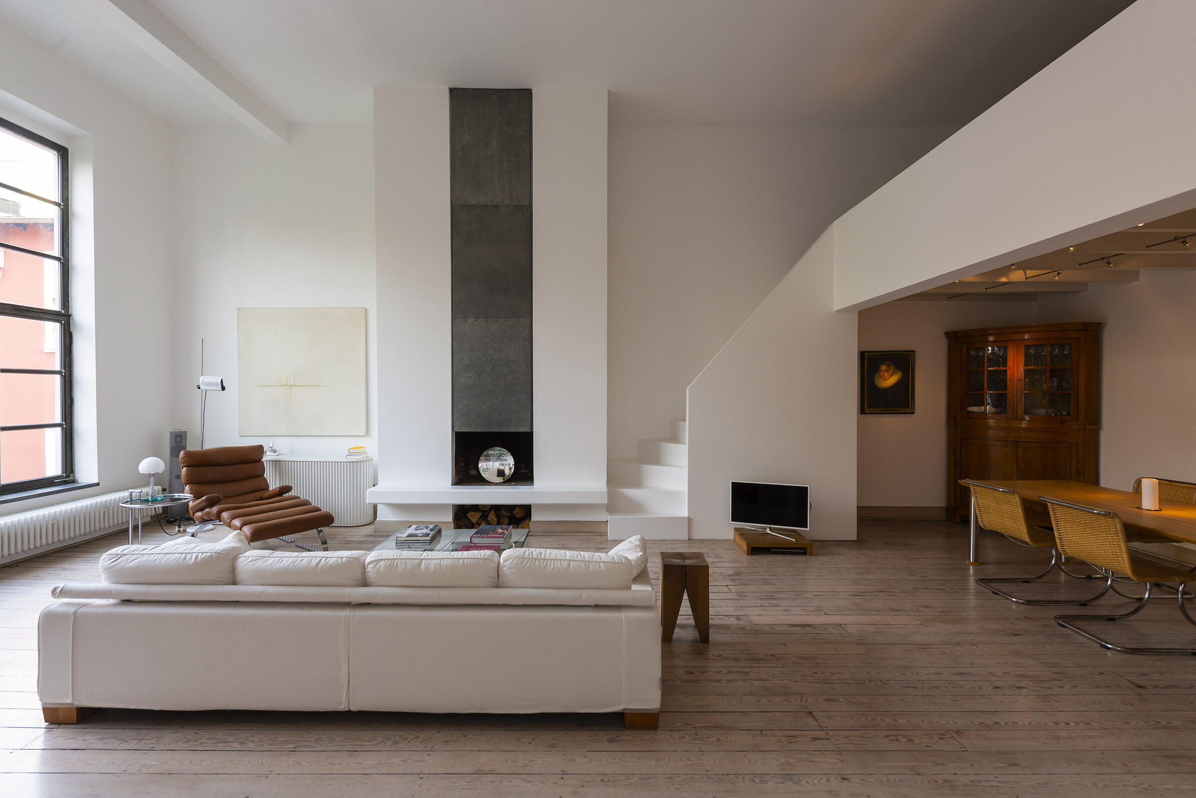 Das Loft befindet sich in einem Haus aus dem Jahr 1900 im alten Teil von Düsseldorf-Oberkassel. Es handelt sich um ein ehemaliges Bildhaueratelier. Das Atelier selbst hat eine Größe von 70 m² und ist inkl. einer Empore 5 m hoch. Zum Garten gibt es ein Fenster von 4,50 x 4,50 m Größe. Die Holzböden sind weiß lasiert. Vom Atelier geht ein offenes Schlafzimmer ab. Zur Vorderseite des Hauses liegen noch ein (wohnliches) Büro und eine mit Biedermeiermöbeln eingerichtete Küche. Der deckenhohe Kamin hat eine Stahlesse. Alle Fenster sind verzinkte Industrie-Sprossenfenster. Das Atelier liegt nach Norden und bietet somit gleichmäßiges Licht. Die Eigentümer kommen aus der Werbebranche.
