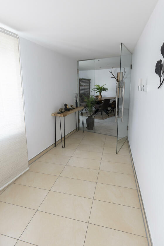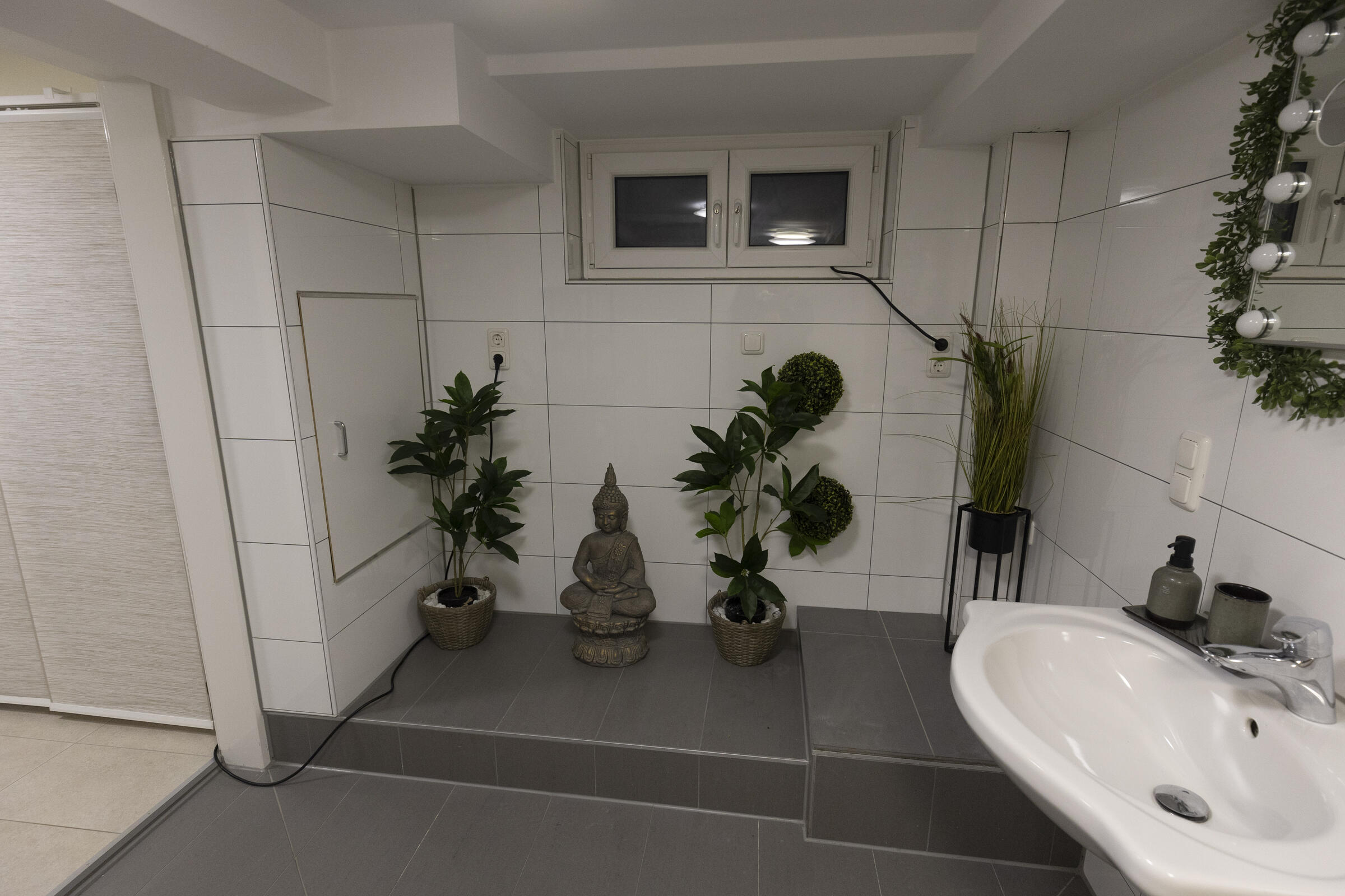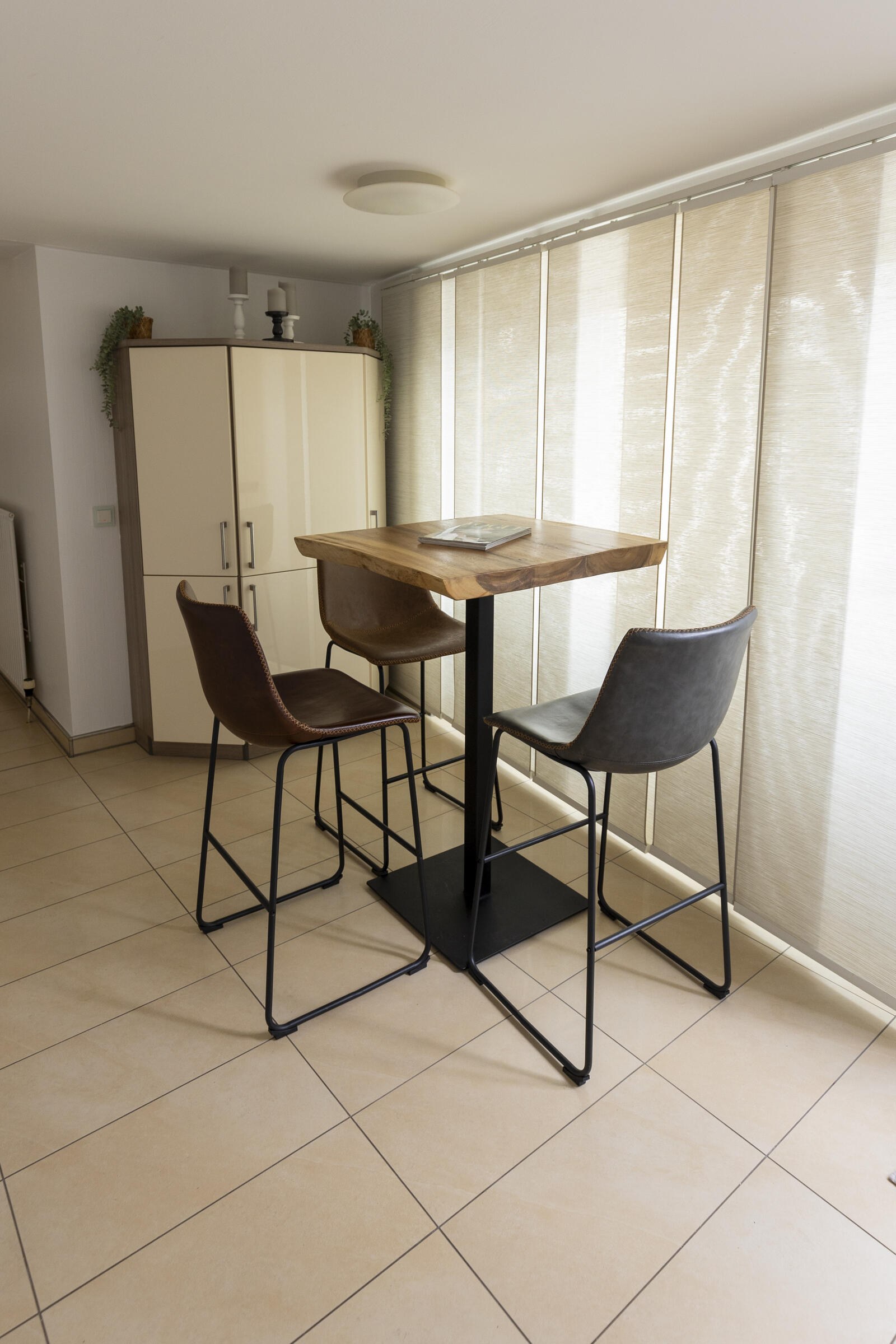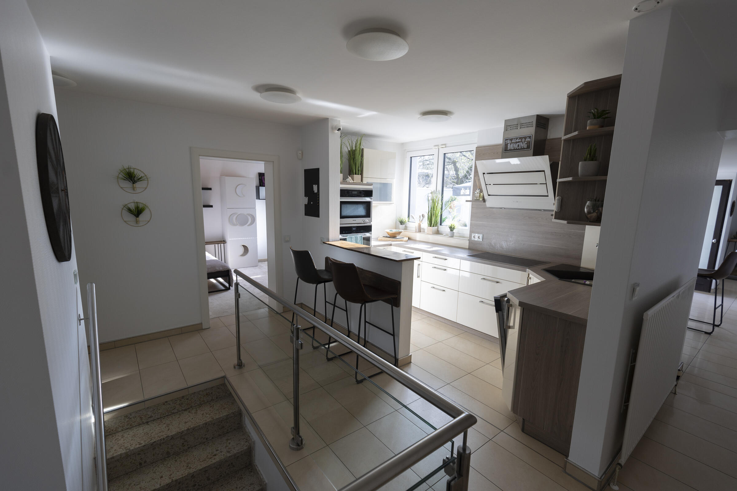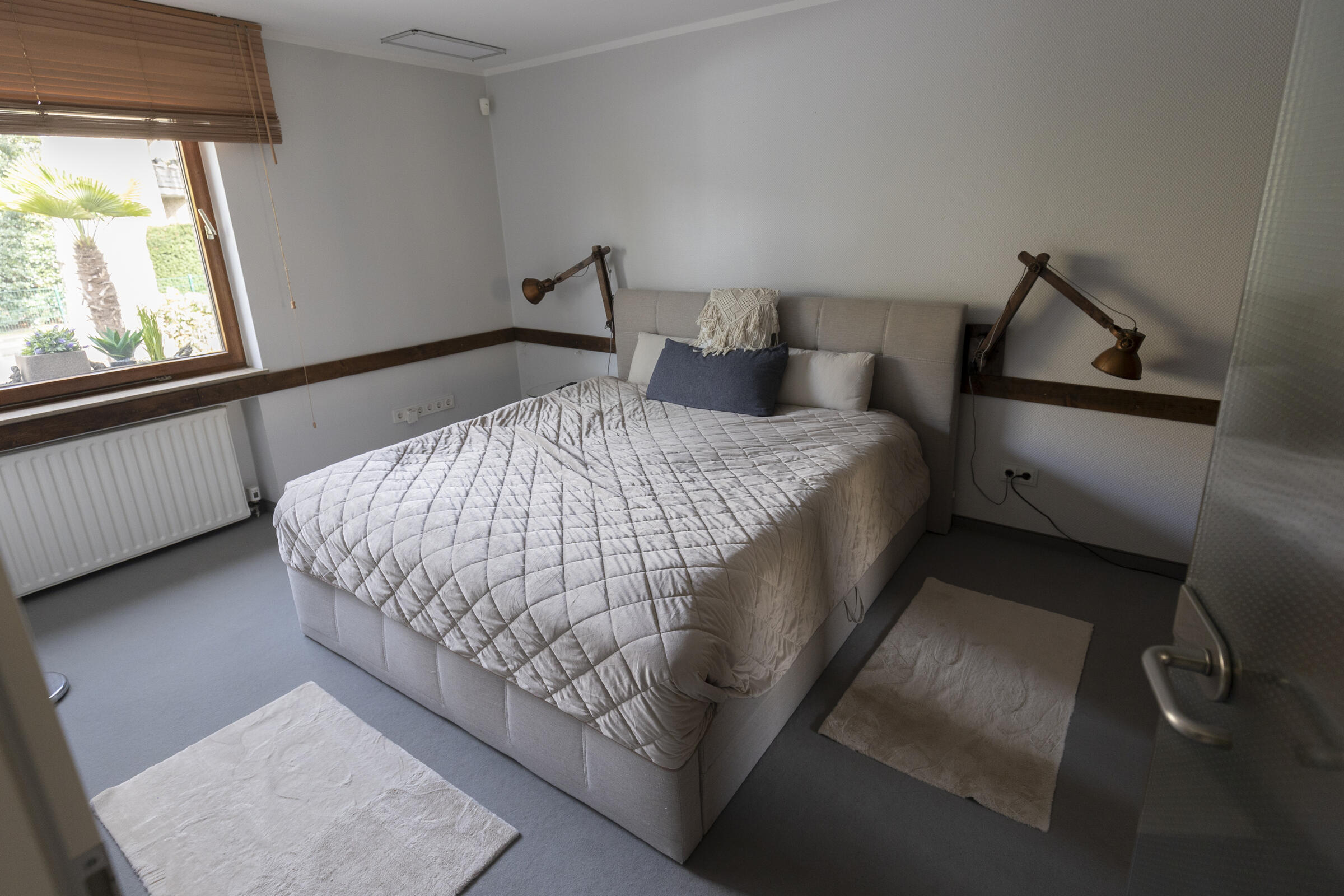 Unser unbewohnter Bungalow befindet sich in einer ruhigen Wohnsiedlung. Durch die teilweise bodentiefen Fensterfronten im Erdgeschoss fällt im Tagesverlauf viel Sonnenlicht in die minimalistisch eingerichteten Wohnräume. Die Fenster können mit Hilfe von Vorhängen und Jalousien verdunkelt werden. Im Wohn- und Essbereich und im Schlafzimmer wurde heller Velourboden verlegt. Die Fußböden der anderen Räume sind großflächig gefliest. Die Möbel können nach Absprache umgeräumt werden. Im Außenbereich steht eine Terrasse zur Verfügung. Parkplätze befinden sich direkt vor dem Haus und in der näheren Umgebung auf der ruhigen Straße.