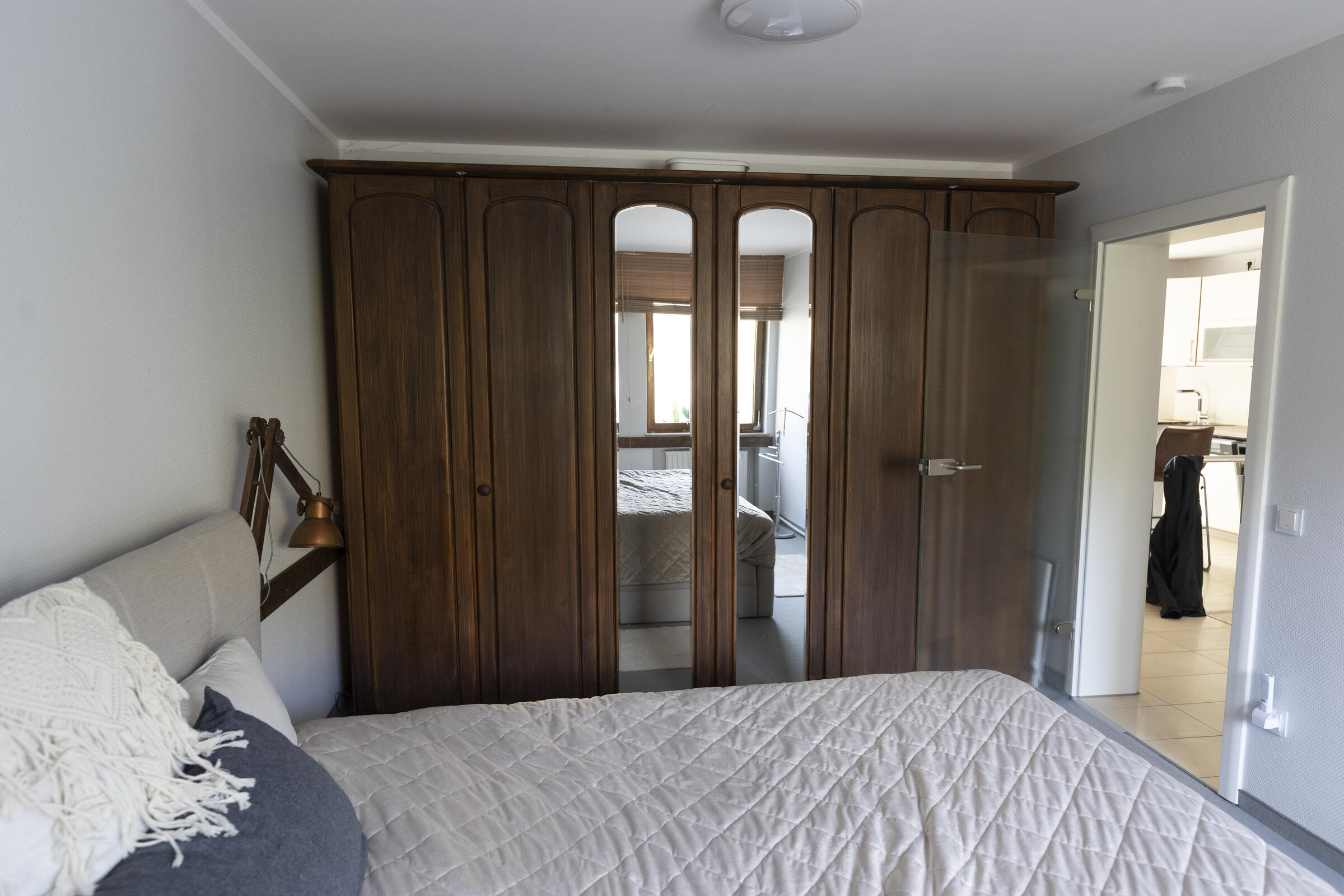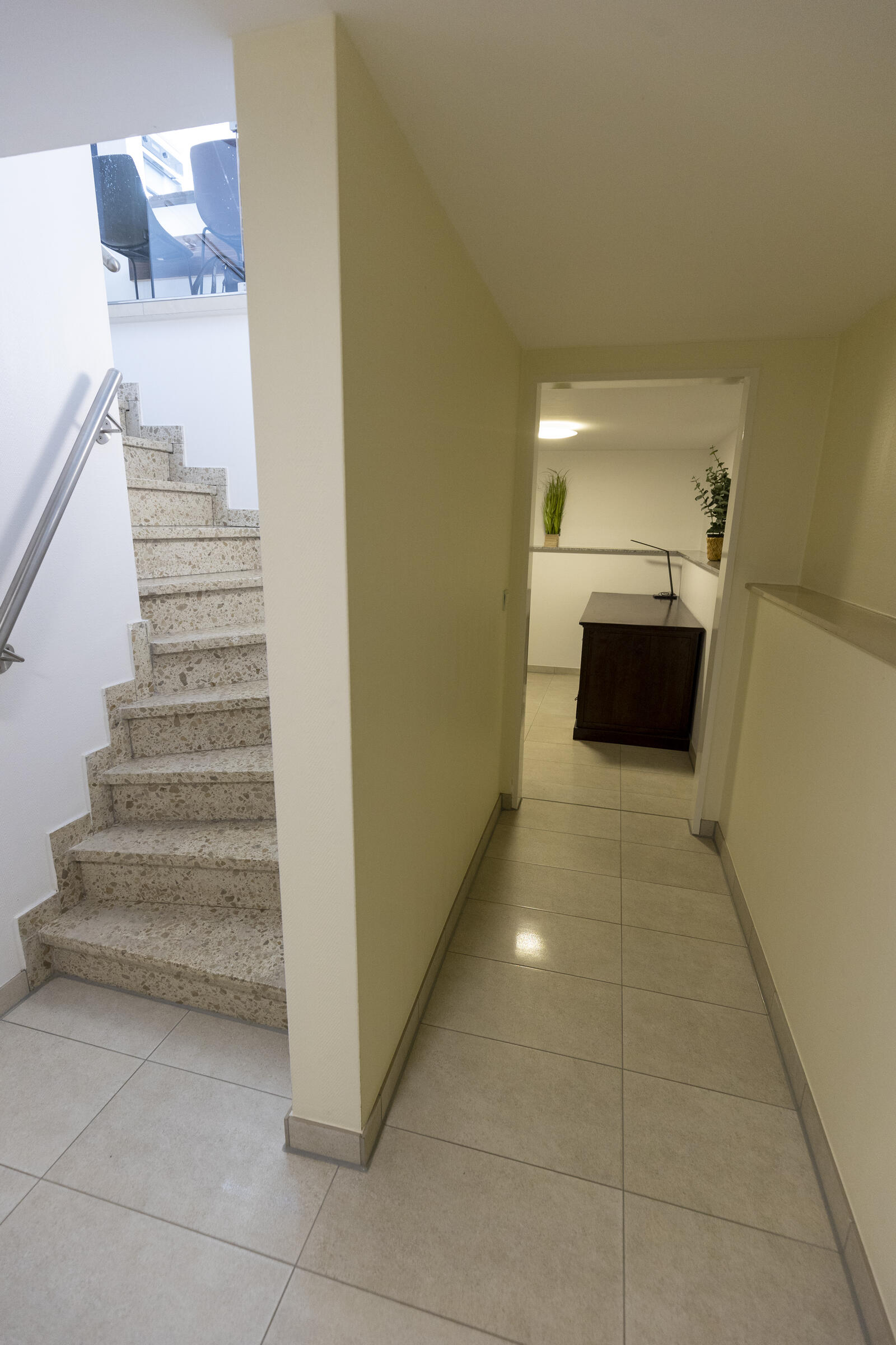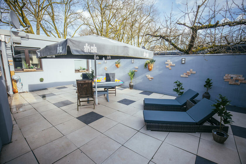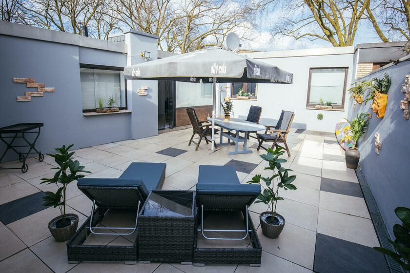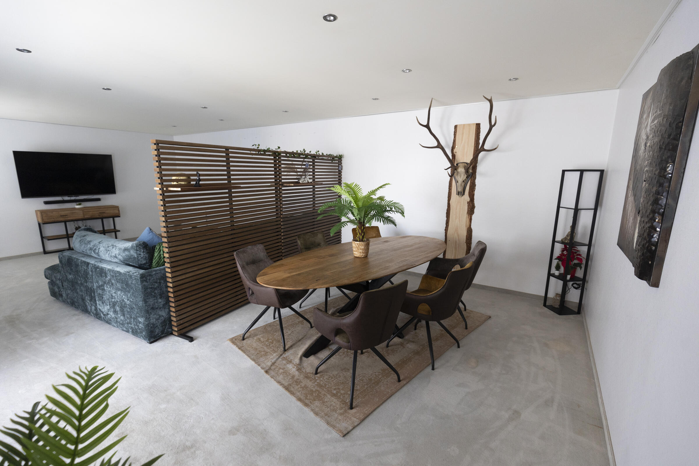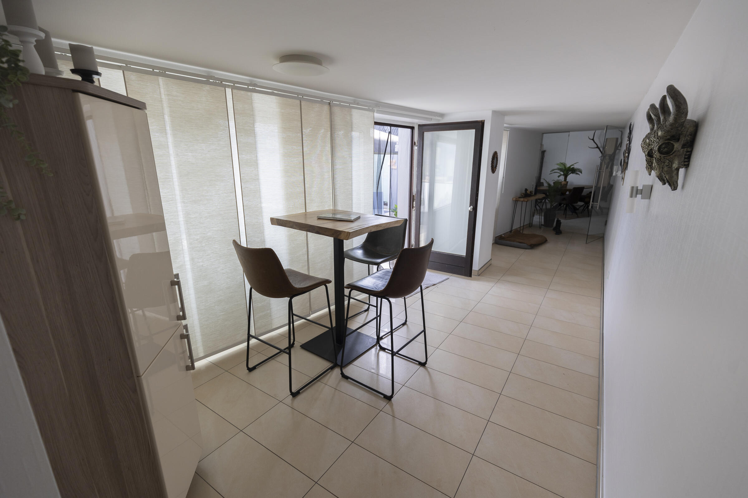 Unser unbewohnter Bungalow befindet sich in einer ruhigen Wohnsiedlung. Durch die teilweise bodentiefen Fensterfronten im Erdgeschoss fällt im Tagesverlauf viel Sonnenlicht in die minimalistisch eingerichteten Wohnräume. Die Fenster können mit Hilfe von Vorhängen und Jalousien verdunkelt werden. Im Wohn- und Essbereich und im Schlafzimmer wurde heller Velourboden verlegt. Die Fußböden der anderen Räume sind großflächig gefliest. Die Möbel können nach Absprache umgeräumt werden. Im Außenbereich steht eine Terrasse zur Verfügung. Parkplätze befinden sich direkt vor dem Haus und in der näheren Umgebung auf der ruhigen Straße.