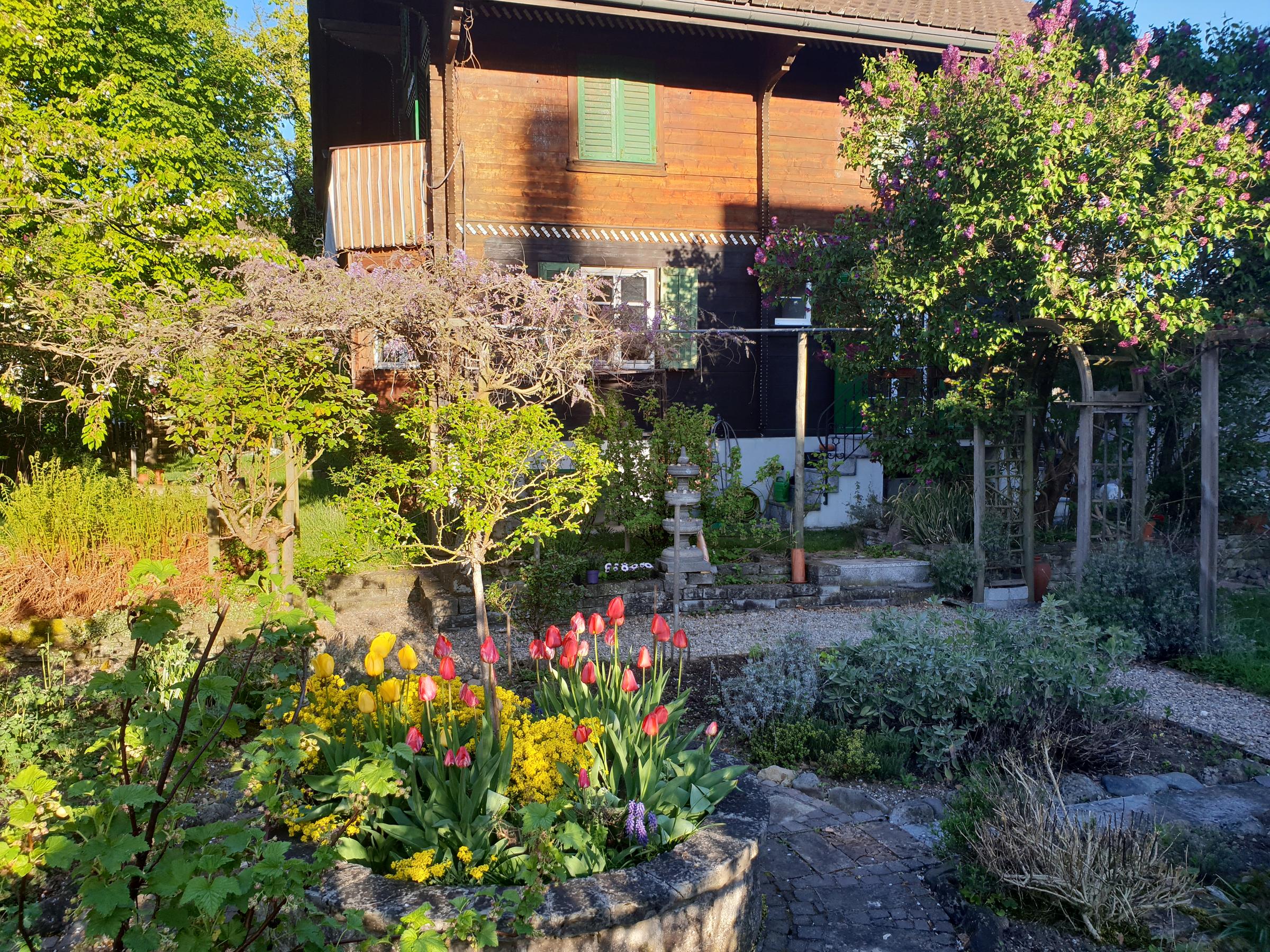 Auf dem Grundstück von 1000 m² liegt ein freistehendes Einfamilienhaus (Holzbau), ein kleines Gartengebäude, welches als Wohn- und Gästeraum ausgebaut wurde, eine Garage sowie ein Pizzaofen/Grill. Das Grundstück ist mit Gemüse- und Kräutergarten, Bäumen, Büschen und Blumen bepflanzt, die Freiflächen bestehen aus Wiese. Kieswege verbinden Wohnhaus, Nebengebäude und Gartengebäude. Das Haus ist im Landhausstil ausgebaut und eingerichtet, der Innenausbau besteht aus Holz- und Steinelementen, das Wohn-/Esszimmer ist mit Parkett ausgelegt. Das Gartengebäude liegt mitten im Garten, umgeben von Pergola mit Reben, Nutzgarten und Pizzaofen/Grillstelle. Die große Garage kann als Raum für Teamaufenthalt, Maske und Garderobe genutzt werden, außerdem beinhaltet sie eine Werkstatt sowie Kühlschrank. Ein weiterer Raum (mit Sauna) für Maske und Garderobe befinden sich im Keller. Es sind drei eigene Parkplätze vorhanden, auf der gegenüberliegenden Straßenseite ist ein öffentlicher Parkplatz verfügbar. Die Location liegt im Kanton Zürich, im Bezirk Winterthur, am Rande eines malerischen, kleinen mittelalterlichen Landstädtchens, im Umkreis von 500 m befinden sich diverse Einkaufsmöglichkeiten (Bäckerei, Molkerei, Metzgerei usw.). Der 2 km entfernte Bahnhof ist per Bus erreichbar und weist einen S-Bahnanschluss Richtung Zürich oder St. Gallen auf.