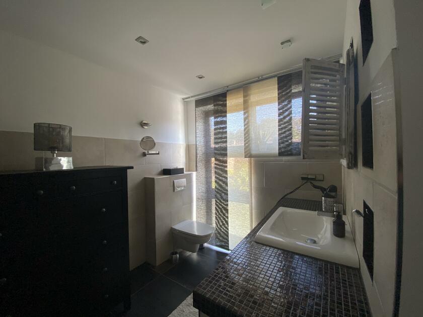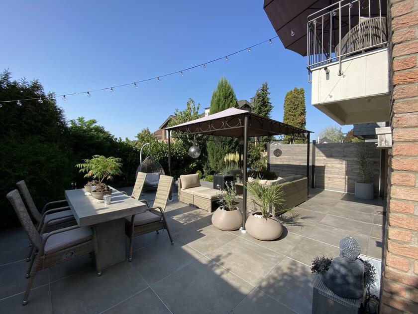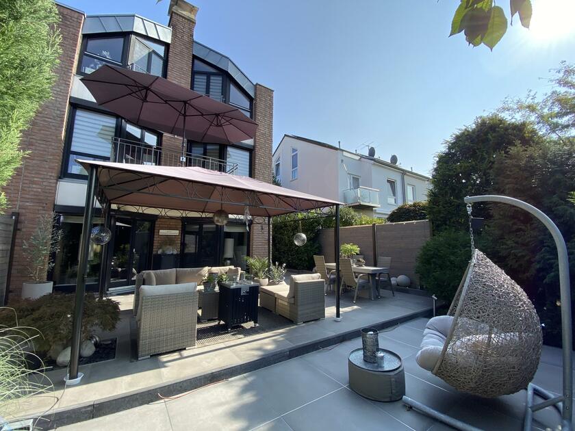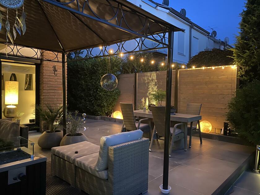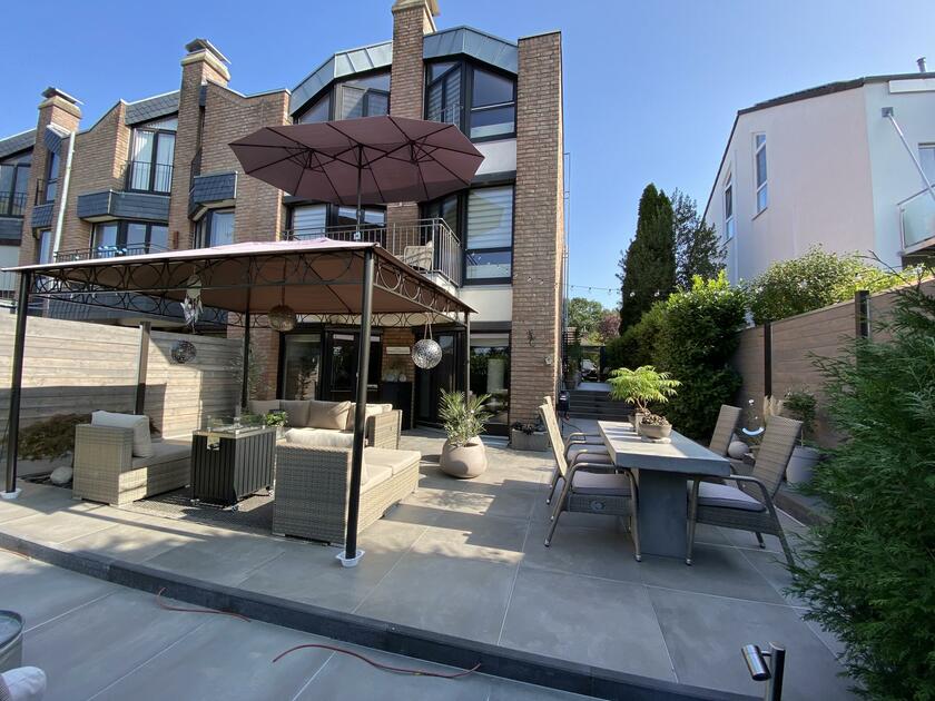 Unser Reihenendhaus befindet sich in einer Spielstraße. In der Nachbarschaft gibt es vorrangig Familien mit Kindern. Das Haus ist sehr hell und mit versetzten Ebenen. Der Einrichtungsstil ist durchgängig und in Naturtönen gehalten. Der Gartenbereich ist komplett neu gestaltet. Es gibt noch eine Randbepflanzung, aber keine Rasenfläche. Der ausgebaute kleine Dachspeicher dient zur Aufbewahrung von Kleidungsstücken, Bettwäsche etc. Die Kellerräume sind komplett ausgebaut, alle Rohre verkleidet und die Böden sind gefliest. Der Vorgarten, Einfahrt und Carport werden neu gepflastert. Die gesamte Dekoration kann verändert werden.