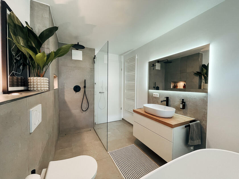 Diese neuwertige Wohnung wurde im Jahr 2022 fertiggestellt und befindet sich im 1. Obergeschoss eines Dreifamilienhauses. Die Wohnung ist nach Südwesten ausgerichtet und besticht durch eine moderne Wohnraumaufteilung und der Verwendung von hochwertigen Materialien, wie Echtholzparkett und Einrichtungsgegenstände namhafter skandinavischer Designer. Neben einem hellen und offenem Wohn- und Küchenbereich bietet die Wohnung ein Schlafzimmer mit Terrassenzugang, ein Büro bzw. Gästezimmer mit Terrassenzugang sowie ein Gäste-WC und Tageslichtbad mit bodenebener Dusche und freistehender Badewanne. Von Stuttgart aus ist die Wohnung in weniger als 30 min mit dem Auto zu erreichen. Kostenfreie Parkplätze stehen am Straßenrand zur Verfügung.