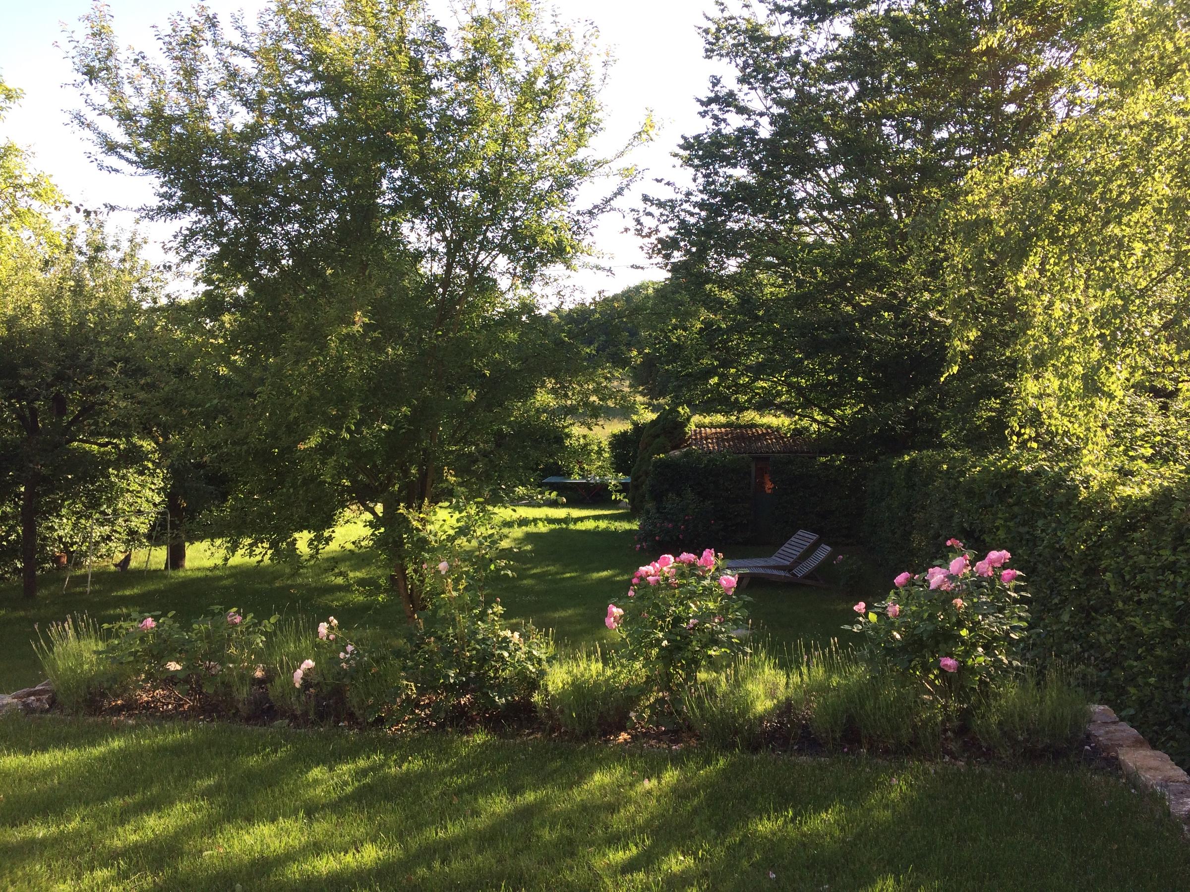 Der unterste Raum mit 55 qm führt in den Garten mit alten Obstwiesen, Rosen & Lavendel hinaus. In den Garten gelangt man auch über eine breite Treppe, die am Haus entlang führt.