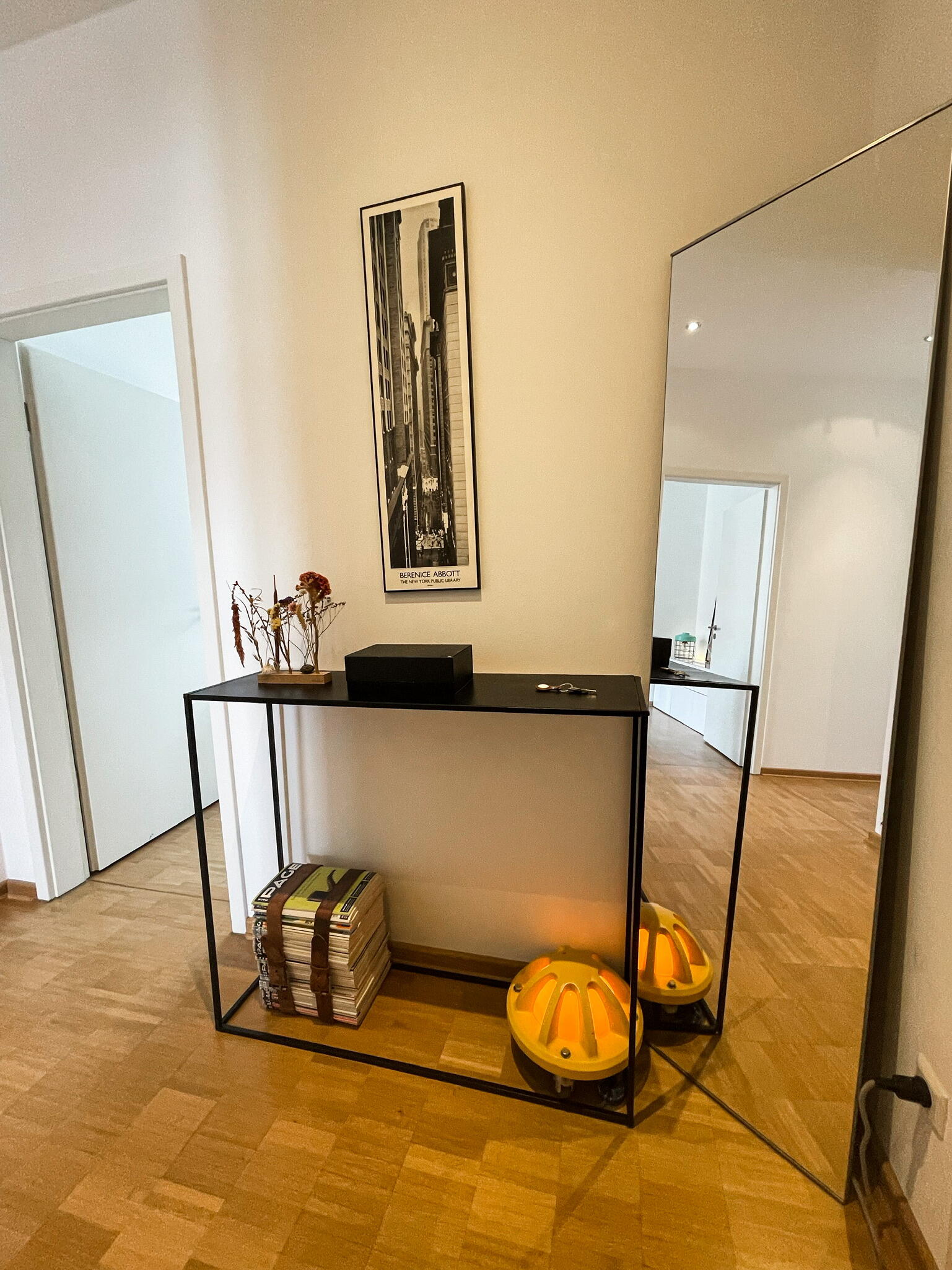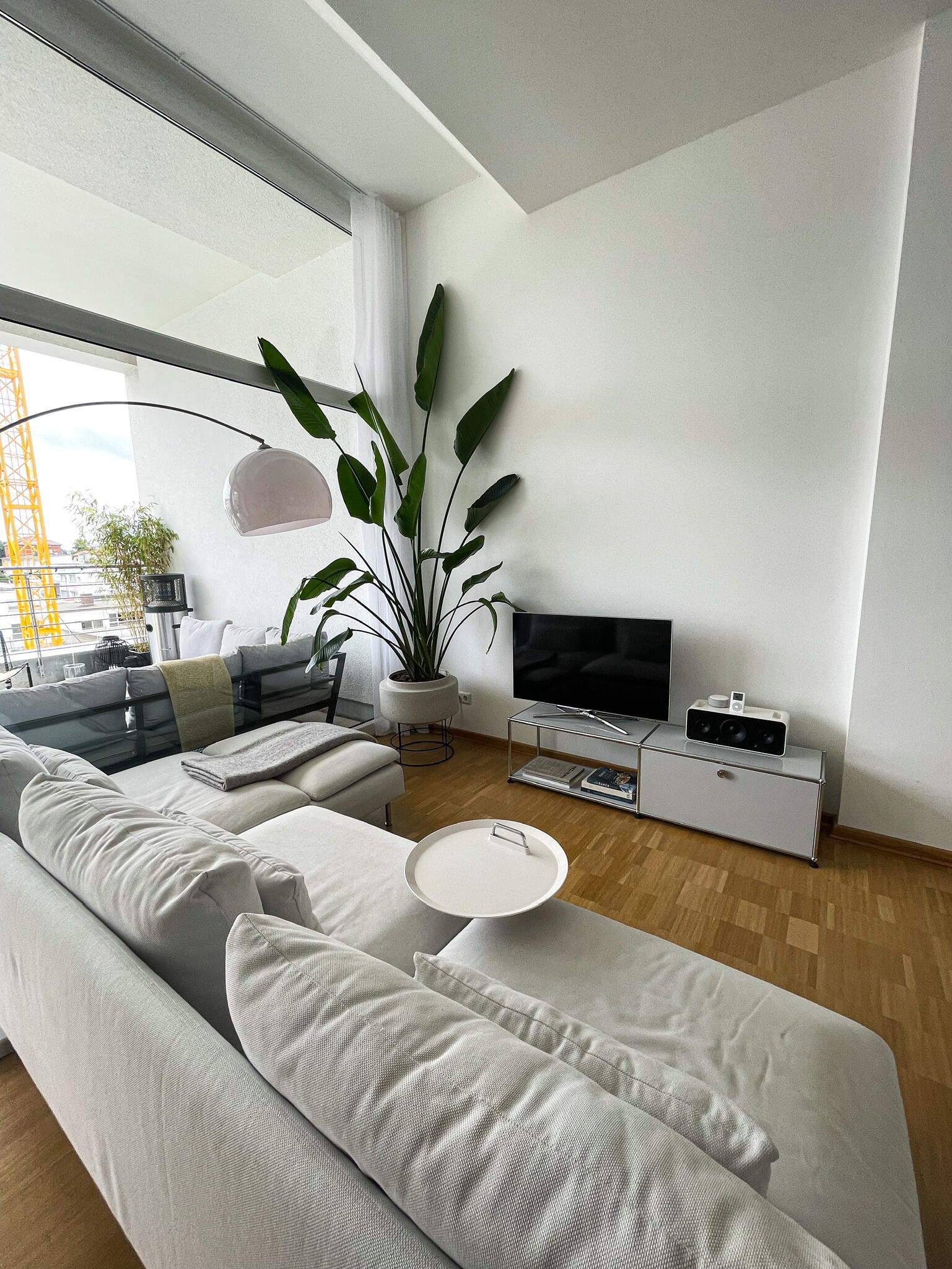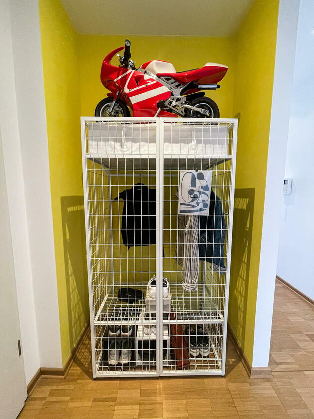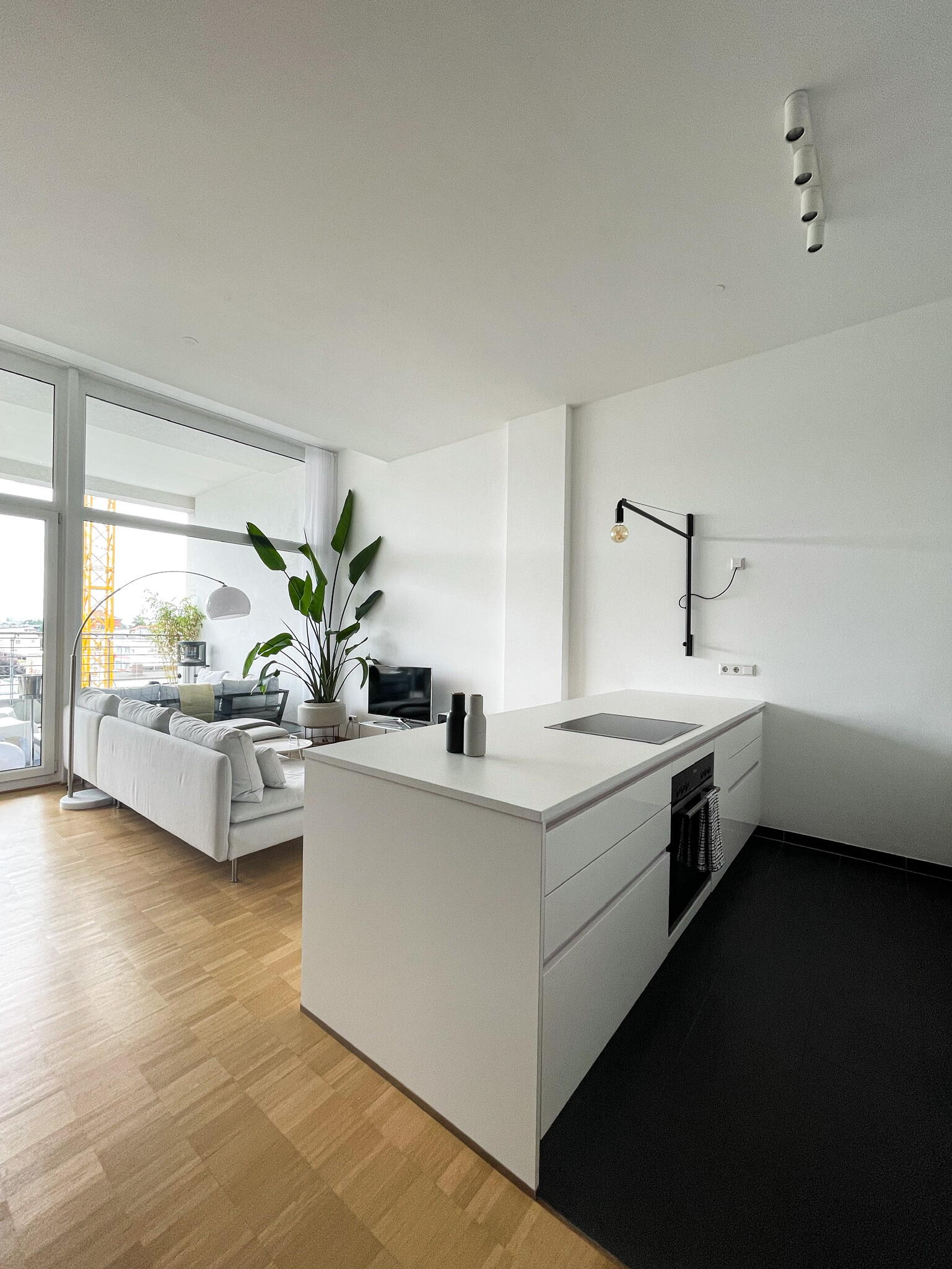 Die Wohnung befindet sich in der Fürther Südstadt auf einem alten Kasernengelände in der Nähe des Südstadtparks. Das Gebäude hat Geschichte und wurde 2008 kernsaniert. Die berühmten Carrera-Autos wurden in diesem Fabrikgebäude gebaut. Daher auch die eindrucksvolle Deckenhöhe von knapp 4 Metern. Durch die großen Fensterfronten zu allen Himmelsrichtungen ist die Wohnung sehr hell, kann aber durch automatische Außenrollos verdunkelt werden. Highlight sind die zwei Balkonterrassen, von denen die größere 32 m² misst und nach Südwesten in den Innenhof ausgerichtet ist und ein kleiner Balkon mit ca. 10 m², der nach Nordosten zur Straße gerichtet ist. Die offene Wohnküche in schlichtem modernen weiß und der offene Kleiderschrank, das große Bad mit riesigem Spiegel, WC, Dusche und Badewanne sowie das Gäste-WC eignen sich ebenfalls als Motive. Neben dem Wohn- und Essbereich, dem Schlafzimmer, Arbeitszimmer, Bad, Gäste-WC und den beiden Balkonen gibt es noch eine Abstellkammer mit Waschmaschinenanschluss, einen großzügigen Eingangsbereich und einen Kellerraum auf der Etage.