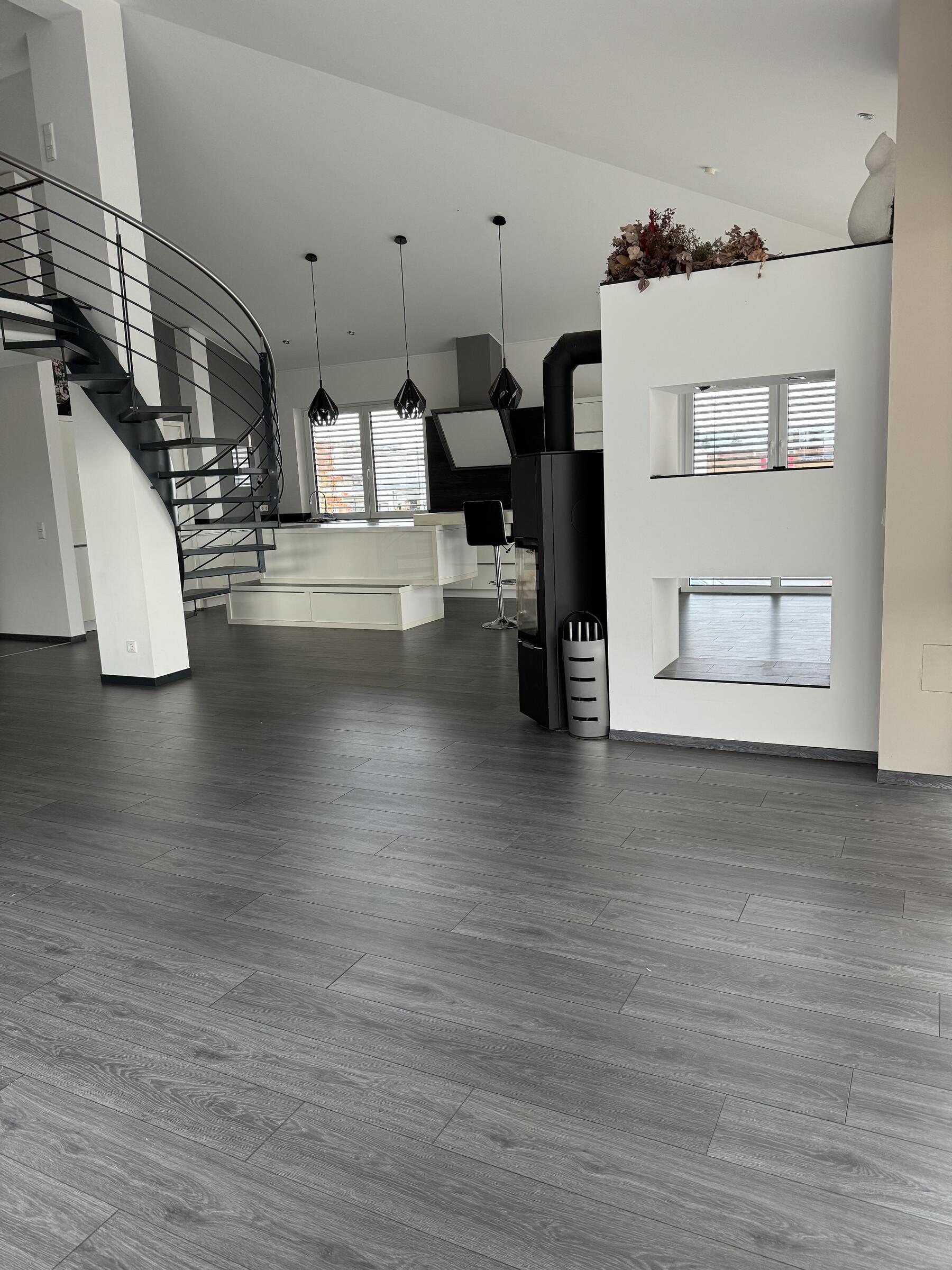 Die unbewohnte und größtenteils unmöblierte Wohnung befindet sich im 1. Obergeschoss eines Bürogebäudes in einem Industriegebiet in unmittelbarer Nähe zur A3 bei Aschaffenburg, ca. 40 km von Frankfurt am Main entfernt. Die Räume der Wohnung sind hell und offen gestaltet. Der große Wohn- und Essbereich geht direkt in die Küche über. Die Wohnung bietet auch eine Galerie mit einer Wendeltreppe. Die überwiegend bodentiefen Fenster können mit Jalousien abgedunktelt werden und teilweise sind noch Vorhänge vorhanden. Im Gebäude gibt es keinen Aufzug. Das Treppenhaus ist jedoch geräumig. Im Hof bestehen Parkmöglichkeiten.