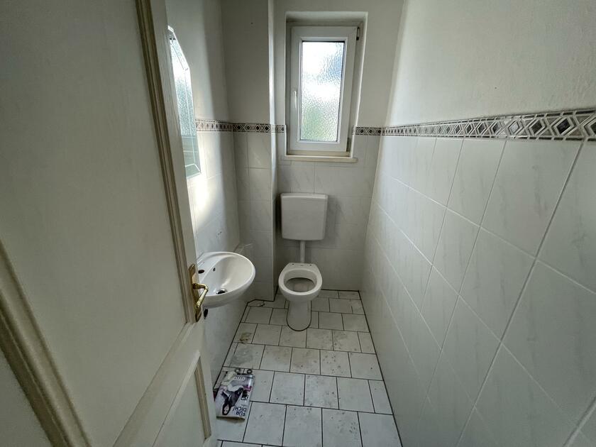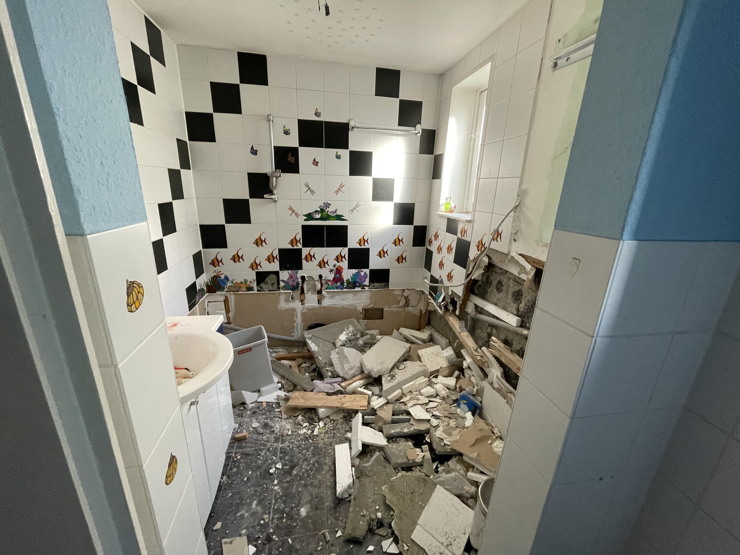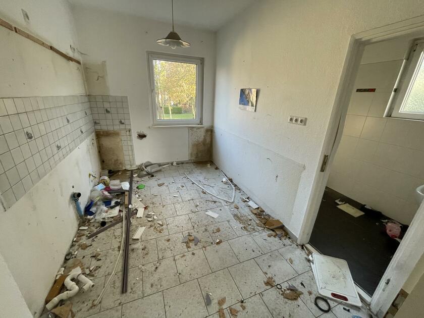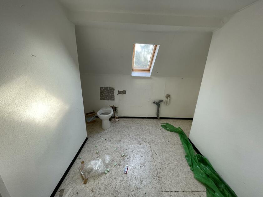 Das leerstehende Mehrfamilienhaus wurde im Jahr 1900 erbaut. Das Haus verfügt über keine Heizung, keine Elektrizität und keinen Wasseranschluss. Es bietet 2 Stockwerke und mit 3 Wohnungen, die über ein Treppenhaus miteinander verbunden sind. Ebenso kann der Keller und das Dachgeschoss mit Dachschräge für Produktionen genutzt werden. Das Erdgeschoss hat hohe Decken. Im Außenbereich bietet das ca. 725 m² große Grundstück einen großen Garten, der sehr verwachsen ist. Hier befindet sich auch eine Holzhütte. Das Grundstück liegt neben einem Bach. Im Haus ist Setbau je nach Bedarf möglich. Parkplätze gibt es in der Umgebung.