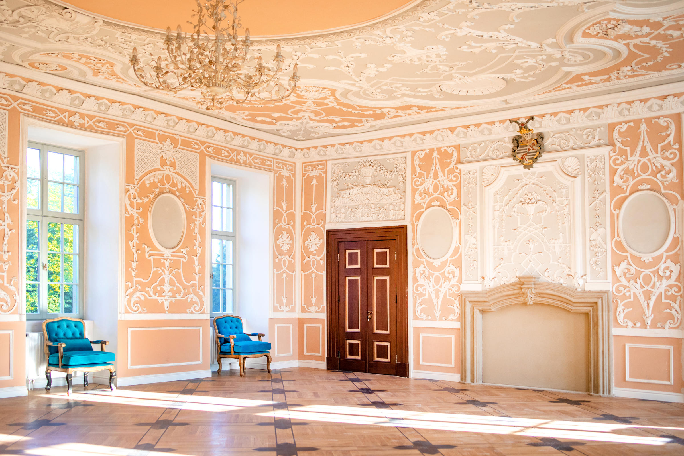 Das Barockschloss samt Eingangshalle, zwei Konferenzräume sowie die Bibliothek werden als Location für Film-, Fernseh- und Fotoproduktionen vermietet.