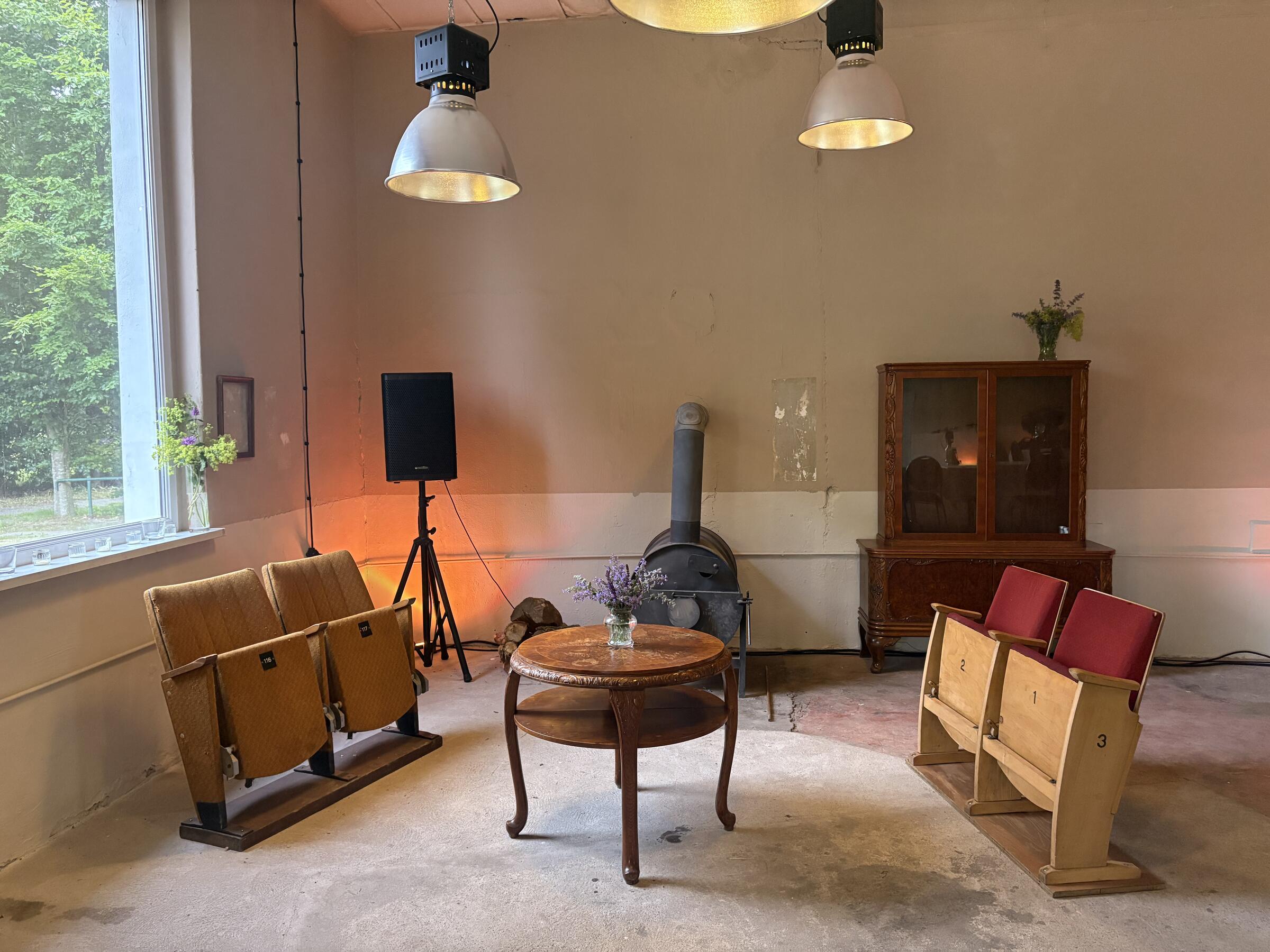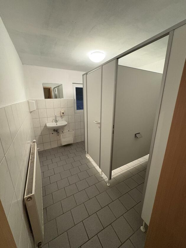 Dieses ehemalige Kulturhaus bietet eine große Halle mit ca.190 qm , die durch ein Rolltor (Höhe 3 m, Breite 2,50 m) befahrbar ist. Die Halle hat drei große Fenster und wird mit Deckenlampen beleuchtet. Dazu gibt es weitere Räume: Lounge /Büroraum, Küche, Abstellkammer, drei sanitäre Anlagen und einen Keller. Alle Räume können beheizt werden. Es gibt eine Gasheizung und zwei Kaminöfen. Die sanitären Anlagen bestehen aus drei Toilettenräumen sowie zwei Duschräumen. Alle sind funktionstüchtig. In der Küche gibt es Küchenschränke. Über eine Tür kann man von der Küche direkt auf eine kleine Terrasse gelangen. Im Außenbereich kann eine große Freifläche mit weitläufiger Wiese genutzt werden. Großzügige Stellflächen mit festem Untergrund für Lkw und Pkw-Parkplätze stehen ebenfalls ausreichend zur Verfügung. In 2025 wird die ehemalige Bühne des Kulturhauses frei gelegt, so dass weitere interessante Räume entstehen. Internet ist über einen Glasfaseranschluss in sehr guter Qualität vorhanden.