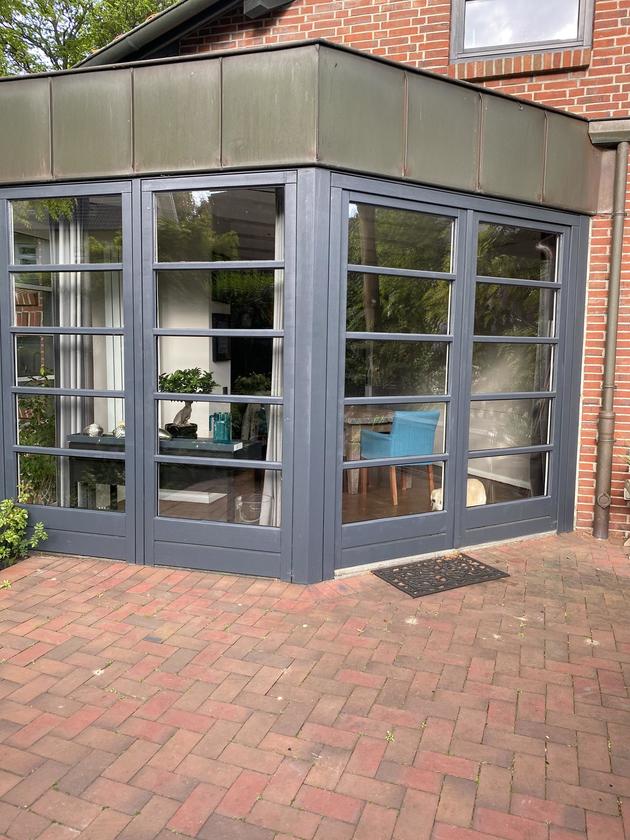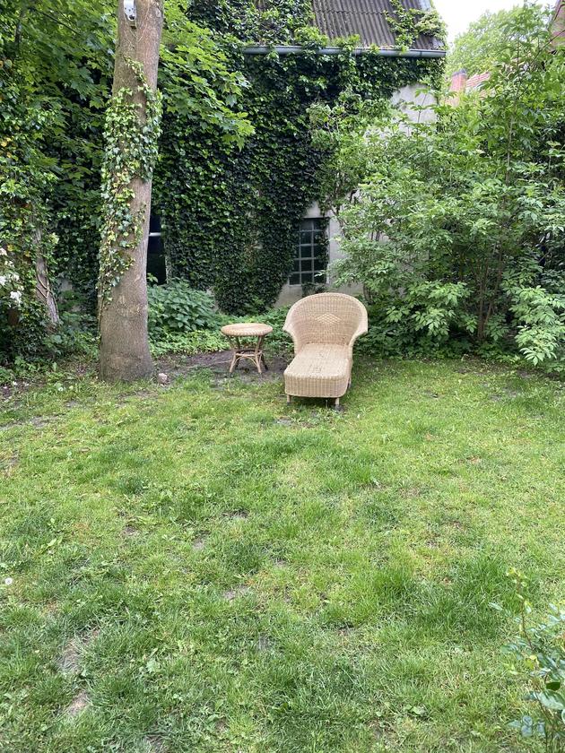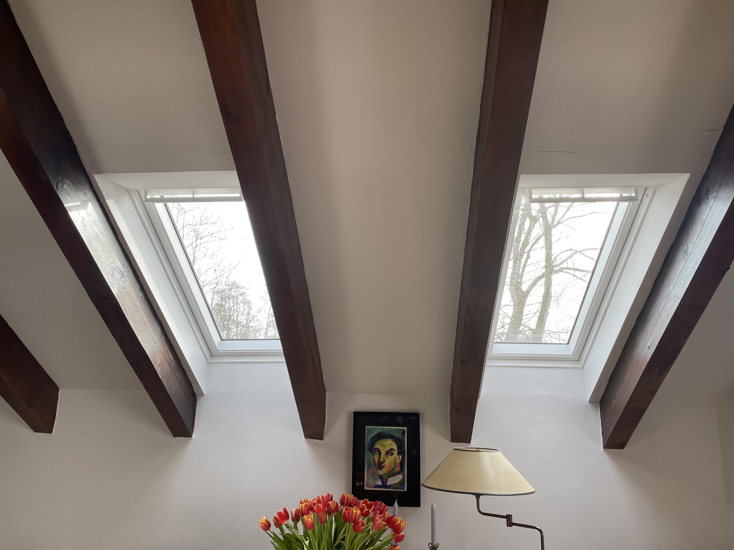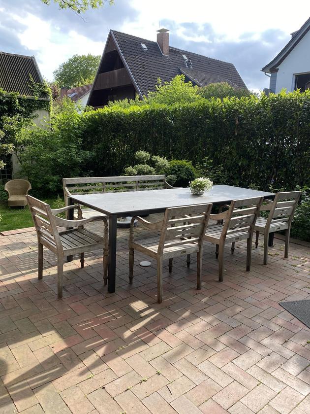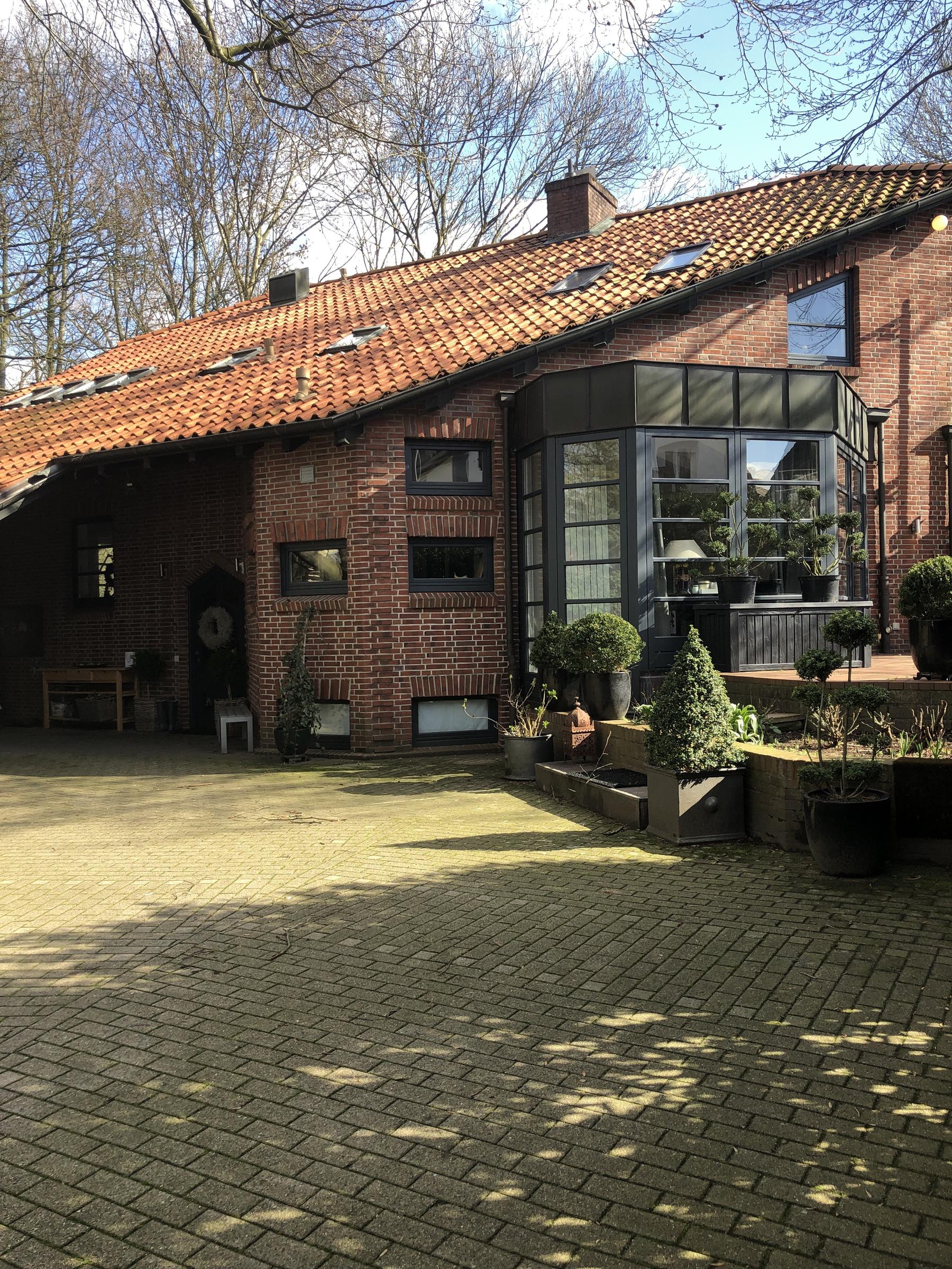 Unser Haus befindet sich an einem Wald- und Moorgrundstück in Hamburg-Altona. Es liegt sehr ruhig in zweiter Reihe mit einer Einfahrt, die von zwölf Ahornbäumen kugelförmig gesäumt wird. Es ist ein Architektenhaus, gebaut 1984 und hat in jedem Zimmer ca. 200 Jahre alte Balken. Der Boden mit Teakholz ausgelegt und sehr robust. Das Holz hat eine braun-rötliche Farbe. Das Haus ist anthroposophisch nach Rudolf Steiner gebaut, kein Raum ist rechtwinklig. In der Mitte des Hauses befindet sich ein großer Kamin. Das Haus wurde im Mai 2017 komplett renoviert, sowie die Küche, alle Bäder, alle Wände.