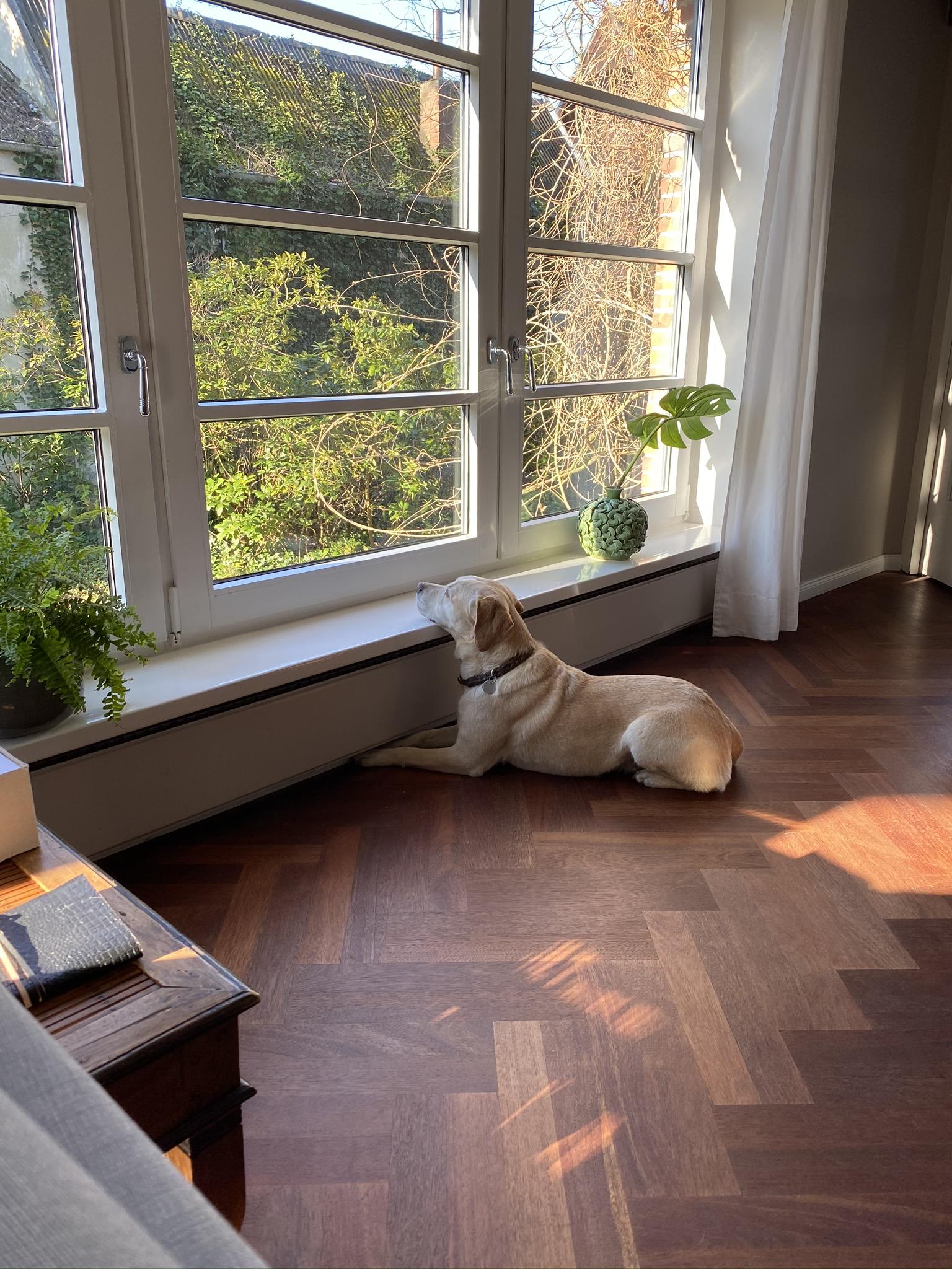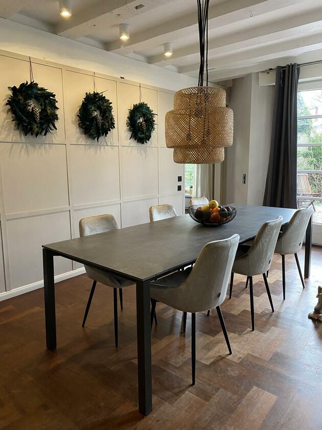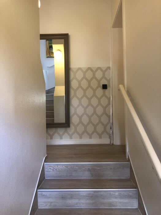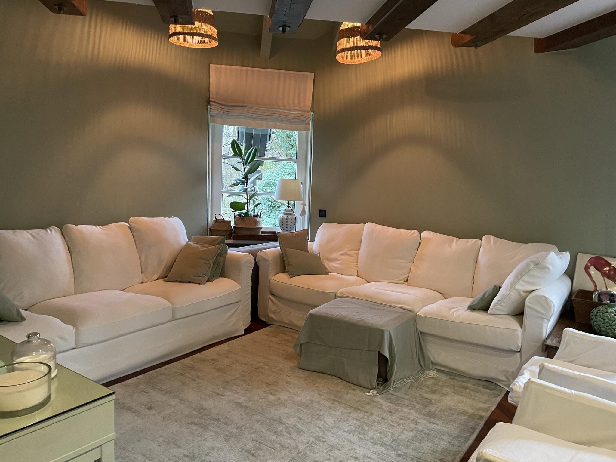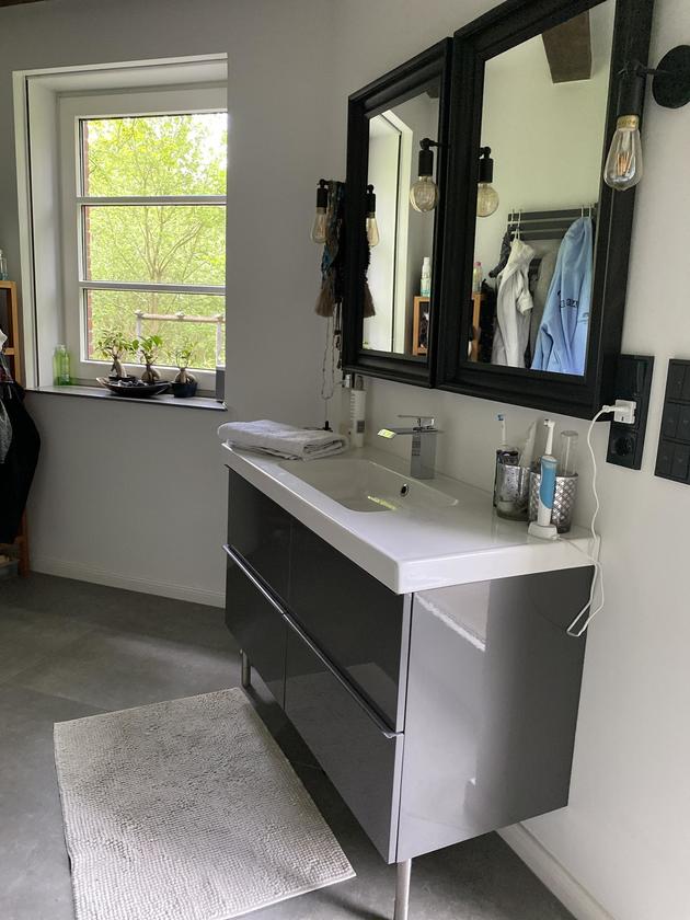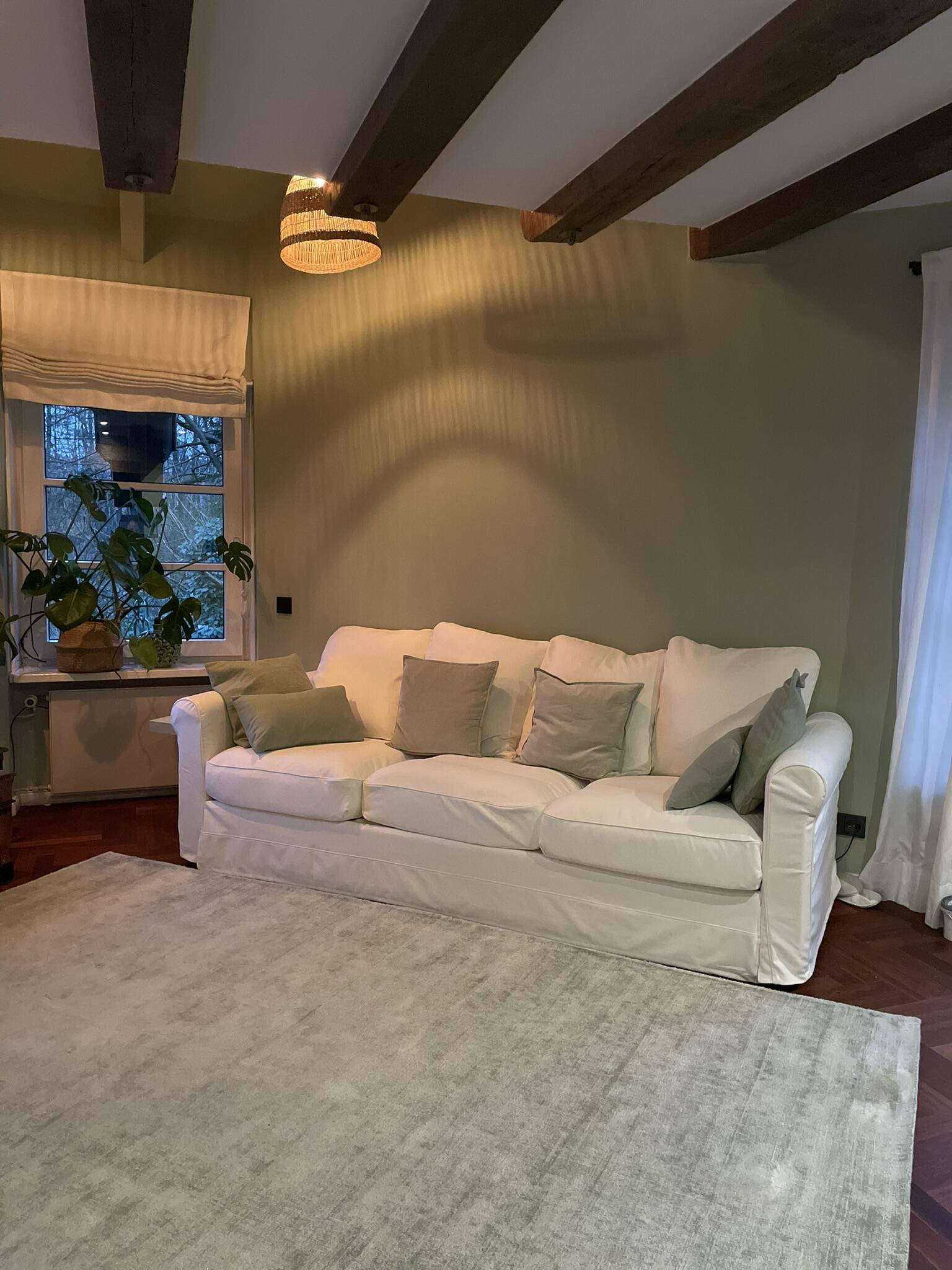 Unser Haus befindet sich an einem Wald- und Moorgrundstück in Hamburg-Altona. Es liegt sehr ruhig in zweiter Reihe mit einer Einfahrt, die von zwölf Ahornbäumen kugelförmig gesäumt wird. Es ist ein Architektenhaus, gebaut 1984 und hat in jedem Zimmer ca. 200 Jahre alte Balken. Der Boden mit Teakholz ausgelegt und sehr robust. Das Holz hat eine braun-rötliche Farbe. Das Haus ist anthroposophisch nach Rudolf Steiner gebaut, kein Raum ist rechtwinklig. In der Mitte des Hauses befindet sich ein großer Kamin. Das Haus wurde im Mai 2017 komplett renoviert, sowie die Küche, alle Bäder, alle Wände.