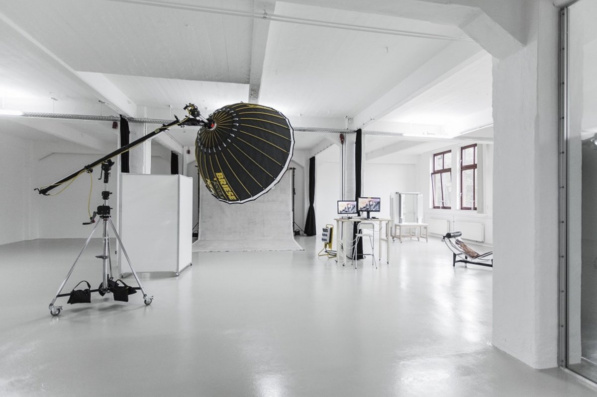 In unserem 600 m² großem Studio finden Produktionen ideale Bedingungen vor. Das Studio hat eine Deckenhöhe von 4 m und bietet 6 Produktionsplätze, die bei Bedarf abgedunkelt und flexibel erweitert werden können. Mehrere separate Make-Up Plätze, ein Garderobenbereich mit ausreichend fahrbaren Kleiderständern, eine vollständig ausgestattet Küche für Catering sowie ein Bereich für Teamaufenthalt stehen ebenfalls zur Verfügung. Auf Wunsch kümmert sich das Studio-Management gerne auch um spezielle Ausrüstung wie beispielsweise Ventilatoren, Möbel, Requisiten und andere Props.