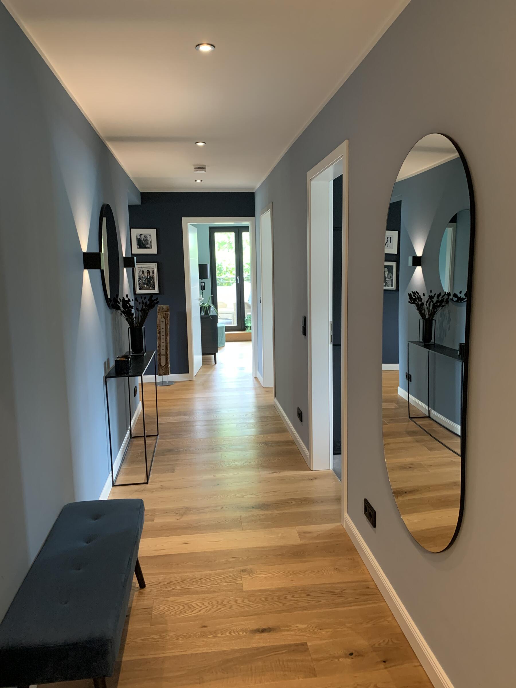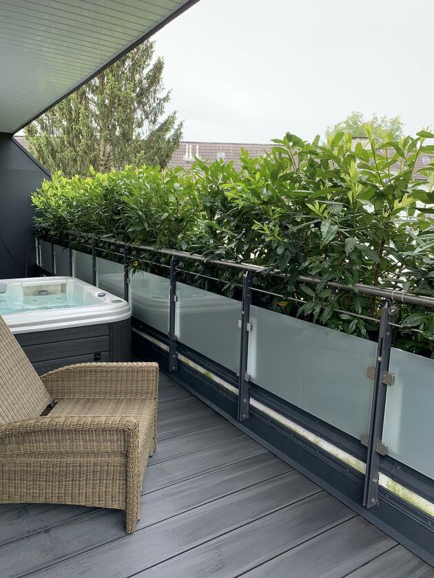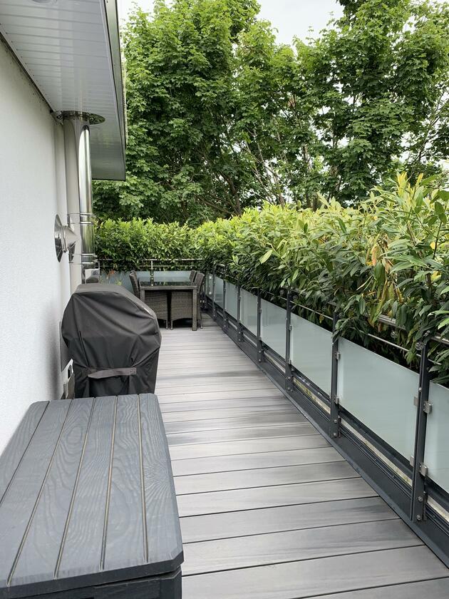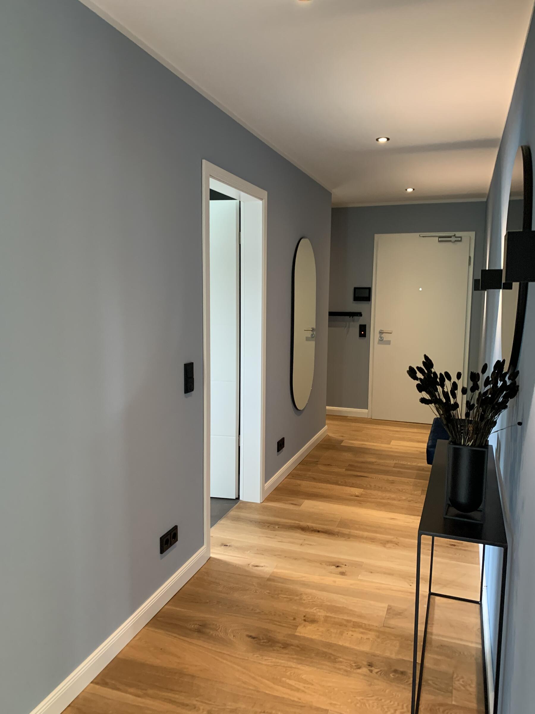 Die 4 Zimmer Dachgeschosswohnung befindet sich mitten in Hamburg-Altona, in der 3. Etage eines Neubau aus dem Jahr 2020. Die Wohnung bietet inklusive einer Dachterrasse eine Fläche von 140 m². Wenn man die Wohnung betritt, befindet sich auf der rechten Seite das Gästezimmer mit angrenzendem Gästebad. Dahinter folgt das Hauptbad mit einem Durchgang zur Ankleide und Zugang zum Schlafzimmer. Am Ende des Flurs kommt man direkt in den offenen Wohn-, Koch- und Essbereich sowie zu der 40 m² großen Dachterrasse mit integriertem Jacuzzi und Sauna. Alle Räume, außer dem Gästebad, haben Tageslicht und verfügen über mindestens ein Fenster. Außerdem gehört zu der Wohnung ein Tiefgaragenstellplatz.