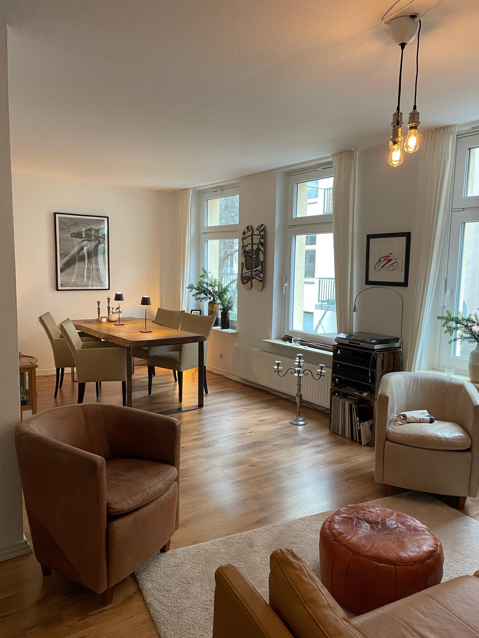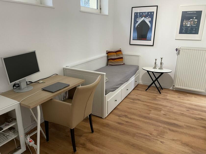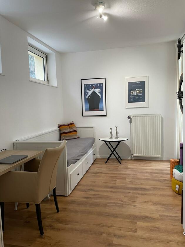 Diese modern eingerichtete Wohnung hat einen Wohn- und Esszimmerbereich sowie ein Arbeitszimmer, welches beispielsweise während einer Film- oder Fotoproduktion auch als Schlafzimmer oder Fitnessraum gestaltet werden kann. Die Wohnung verfügt zusätzlich über einen Studiobereich. Im Obergeschoss befindet sich der Wohnbereich. Die Bilder an den Wänden können mühelos abgehangen oder getauscht werden. Alle Möbel sind schnell umstellbar, sodass der Wohnraum sehr wandelbar ist. Das Fotostudio im Erdgeschoss ist vollständig ausgestattet. Durch die Hinterhoflage ist es sehr ruhig und eignet sich perfekt auch für Tonaufnahmen.