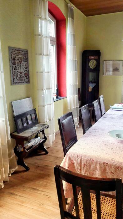 Die Hofanlage ist ein Platz voller Historie. In mitten von grünen Wiesen und Feldern liegt der Hof in der Nähe von Wesel am Niederrhein. Das Haupthaus mit seinen Stallungen wurde 1880 erbaut. Auf zwei Ebenen befinden sich ca. 250 m² Wohnfläche. Das Haupthaus besitzt einen kleinen Gewölbekeller sowie mehrere großzügige Dachböden. Teilweise befindet sich an den Decken noch Stuck. Das Mobiliar ist Antik und modern gehalten. Zum Hof gehören zudem eine alte Fachwerkscheune sowie eine alte Ständerscheune aus dem 16. Jahrhundert. Die Außenfläche, bestehend aus Streuobstwiese, Kuhweide sowie Garten - beträgt mehrere Hektar. Parkflächen sind für unzählige Autos/LKW vorhanden. Der Hof ist verkehrsgünstig zu den Autobahnanschlussstellen (A57/A3) gelegen, sodass schnelle Verbindungen zu den Zentren Düsseldorf und Köln gewährleistet sind.