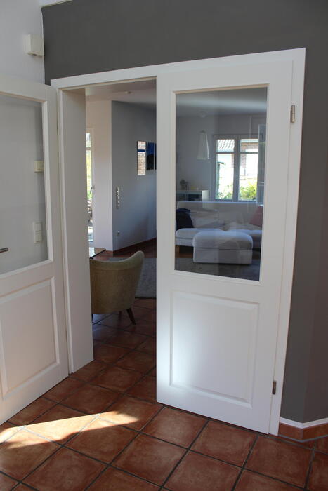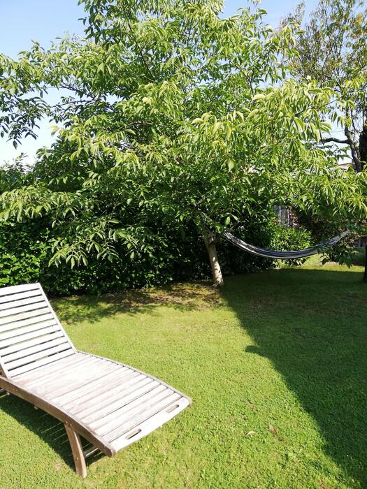 Unser skandinavisch anmutendes, gemütliches Holzhaus wurde 1999 erbaut. Es befindet sich im beschaulichen niedersächsischen Dorf Handorf, in der Nähe von Lüneburg. Das Haus ist frisch gestrichen und der Garten gepflegt und idyllisch. Der Außenbereich hat viele schöne Ecken wie z.B. Teich, Balkon, Terrasse, Walnussbaum mit Hängematte. Hervorzuheben ist der großzügige Eingangsbereich, durch die Eingangstür gelangt man in eine Diele, von der aus die Galerie im 1. Stock folgt. Im Inneren ist es sehr hell und wohnlich, der Essbereich befindet sich in einem Erker mit vielen Fenstern.