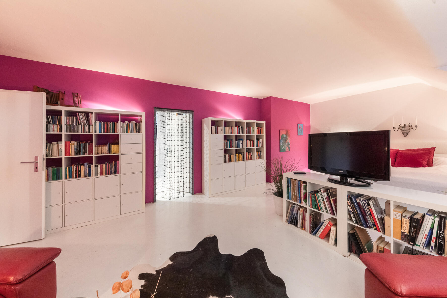 Meine zentral gelegene Wohnung ist künstlerisch, modern und sehr individuell eingerichtet. Die Wohnung verfügt über einen sehr schicken Küchentrakt im eleganten Look mit einem großem Wanddurchbruch und beleuchtetem Bartresen. Die Küche ist auch für Kochsendungen geeignet. Die expressiven Farben im Wohn- und Schlafbereich geben der Wohnung einen besonderen Touch. Durch die Alleinlage gibt es keine Nachbarn, die beispielsweise bei Filmaufnahmen stören könnten. Der durchgängig weiß gestrichene Boden erleichtert die Lichtführung. Ein Personen- und Lastenaufzug ist ebenfalls vorhanden und macht die Wohnung ideal für Filmaufnahmen.