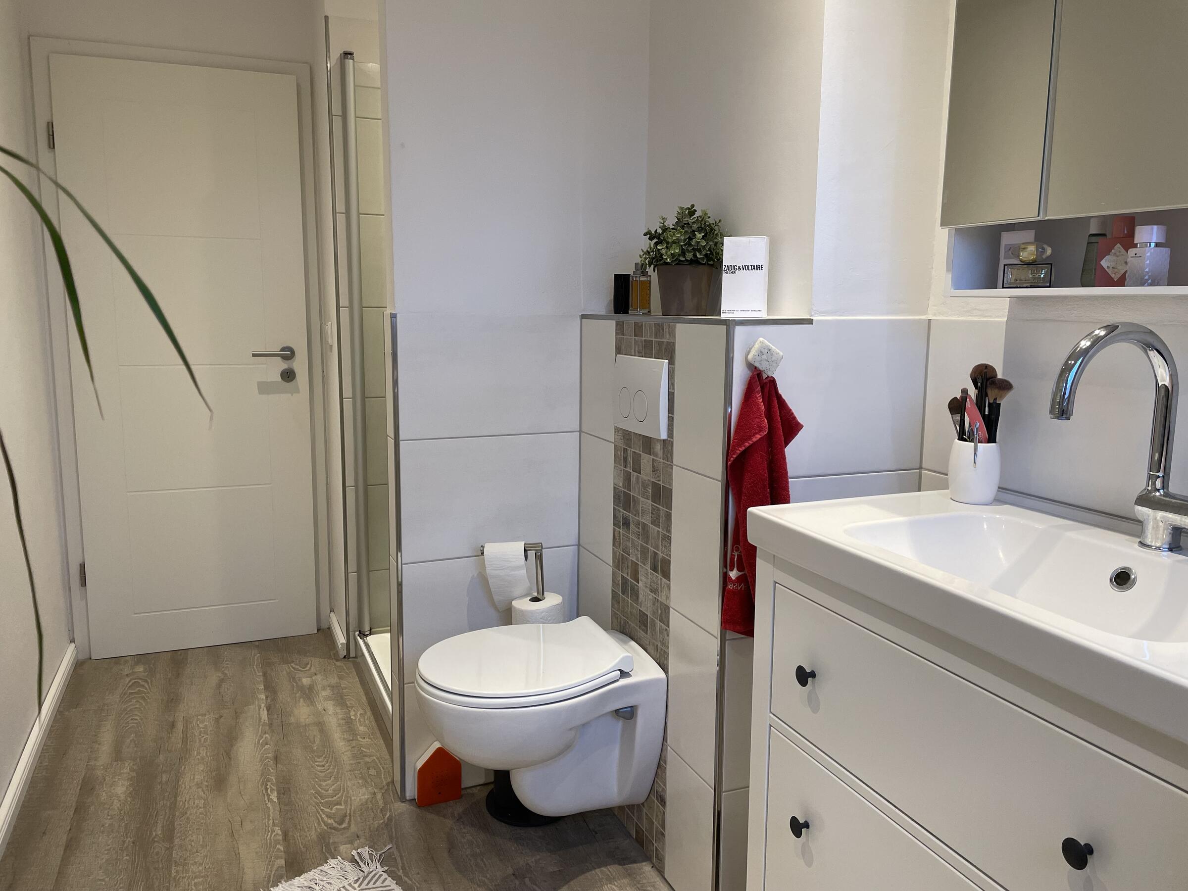 - Badezimmer (3. OG)Fläche: 8 m²Länge: 3,9 mBreite: 1,8 mHöhe: 2,43 mmöbliert: ja