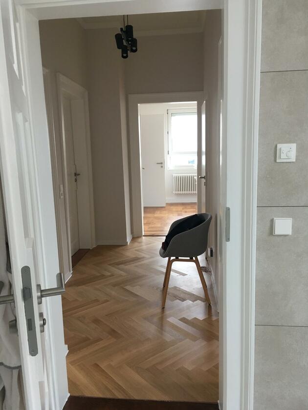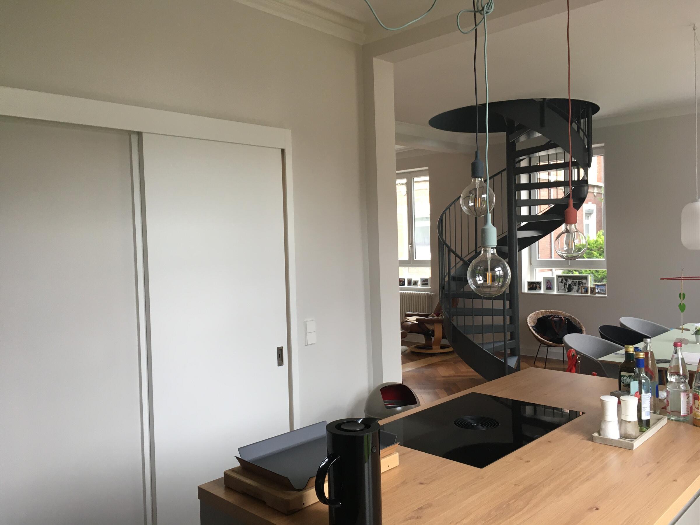 Das Gründerzeit-Stadthaus aus dem Baujahr 1889, wurde 2021 vollständig modernisiert. Wunderschöne alte Elemente wie Fischgrätparkett, Solnhofer sowie Schachbrett Fliesen und alte Türen wurden im Original aufgearbeitet, während Bad, WCs und Küche komplett renoviert wurden und im Bauhaus Scandinavian Stil ein besonderes Ambiente schaffen. Die Möbel sind ein Mix aus Design Klassikern und individuellen modern coolen Stücken. Die beiden Ebenen sind mit einer Eyecatcher Wendeltreppe verbunden. Die im Loft Style daher kommenden 2 Etagen wirken durch die 3,20 m Deckenhöhe sehr imposant. Die Wände sind leicht angetönt was den original Deckenstuck toll hervorhebt. Ein wunderschöner Garten vervollständigt das Stadthaus mit 140 Jahre alter Klinker Fassade.