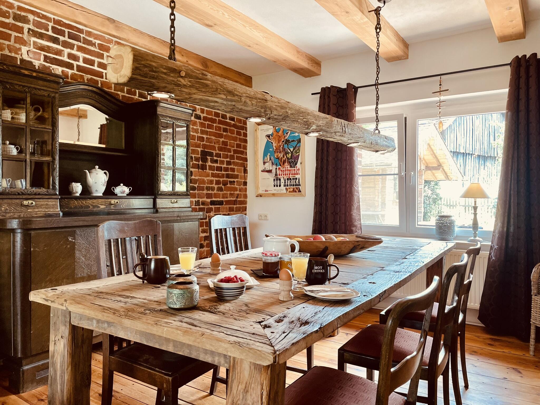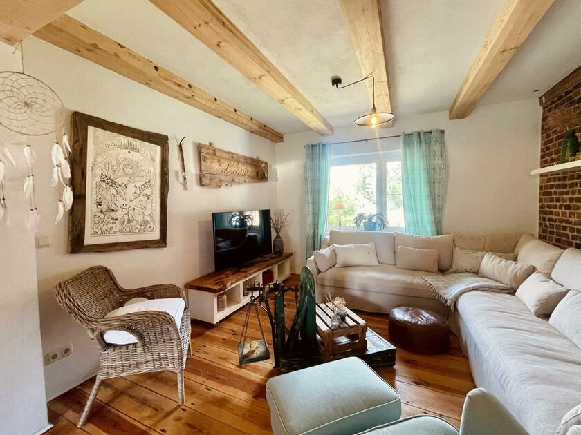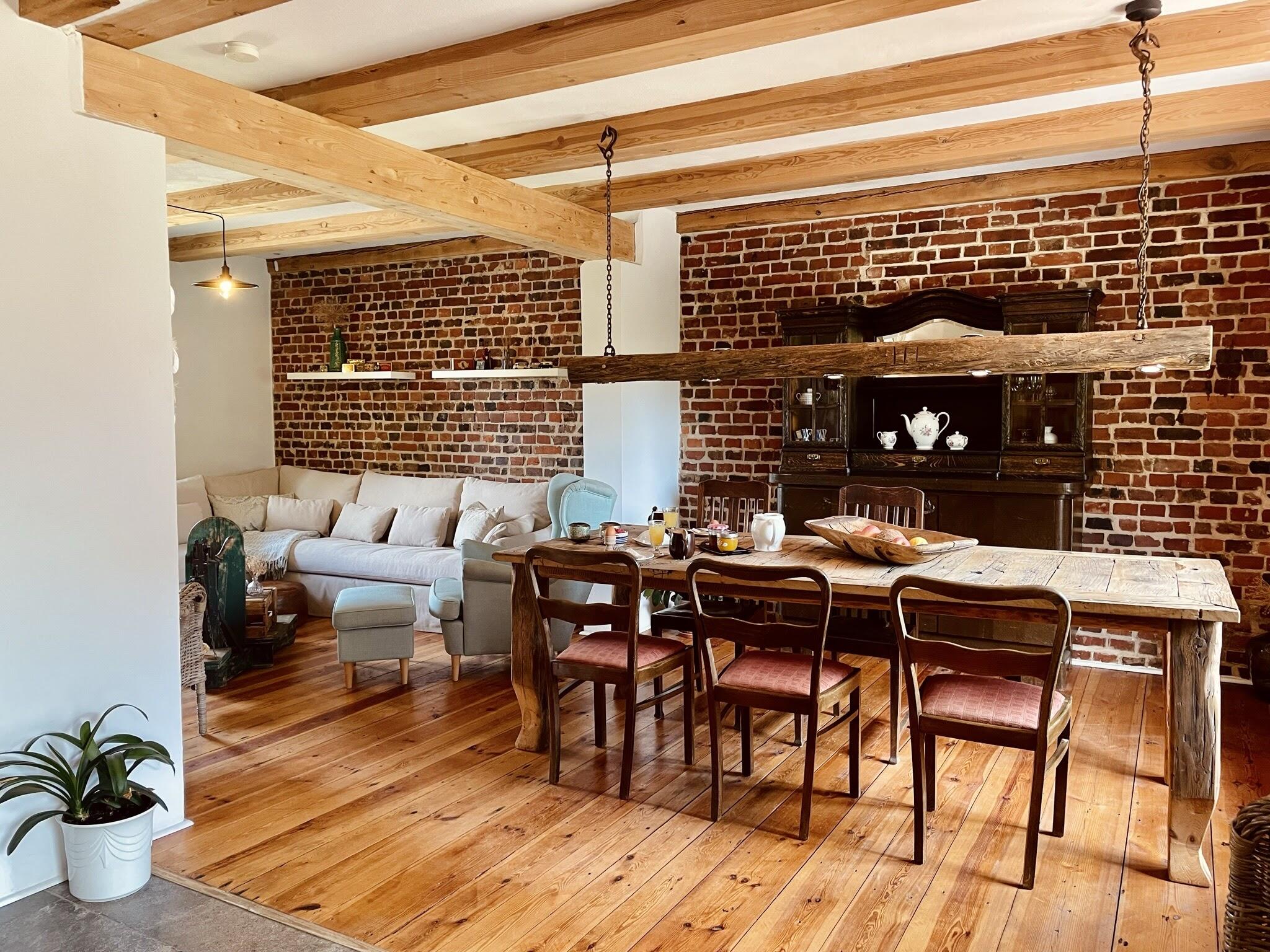 Das charmante Bauernhaus befindet sich auf einem ehemalige Bauernhof bei Cottbus, zwischen Spreewald und Schlaubetal,. Das Haus wurde liebevoll, aufwendig und nachhaltig restauriert und auf einen modernen Stand gebracht. Die Räume sind hell und in einem modernen Vintage-Stil eingerichtet. Viele der Möbelstücke wurden eigens für dieses Haus entworfen und gebaut und sind Einzelstücke. Die Fenster in den Wohnräumen, im Essbereich und den Schlafzimmern können mit Hilfe von Vorhängen abgedunkelt werden. Im Außenbereich gibt es eine Gartensauna mit einem kleinen Pool. Auf dem Grundstück sind Parkplätze vorhanden.