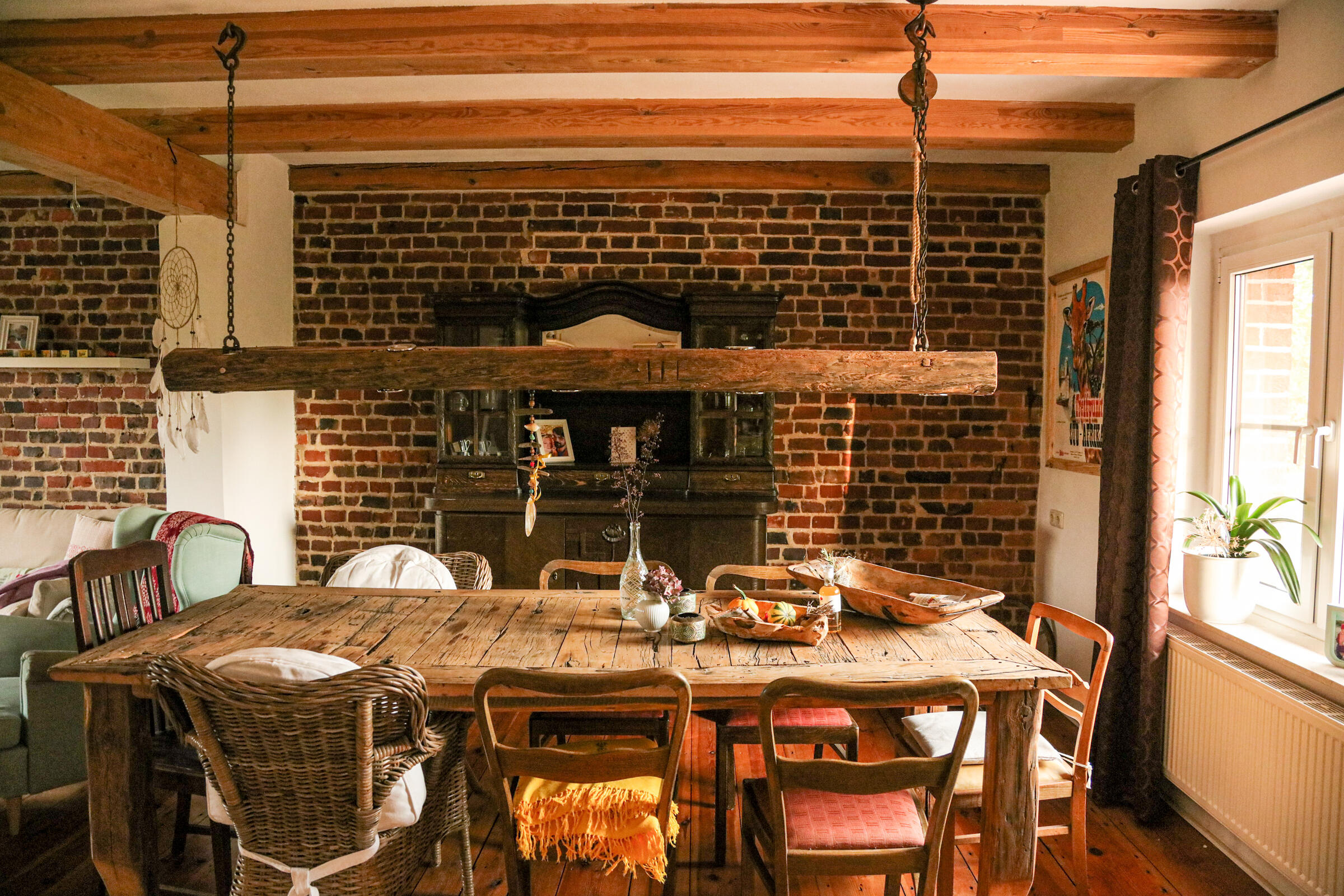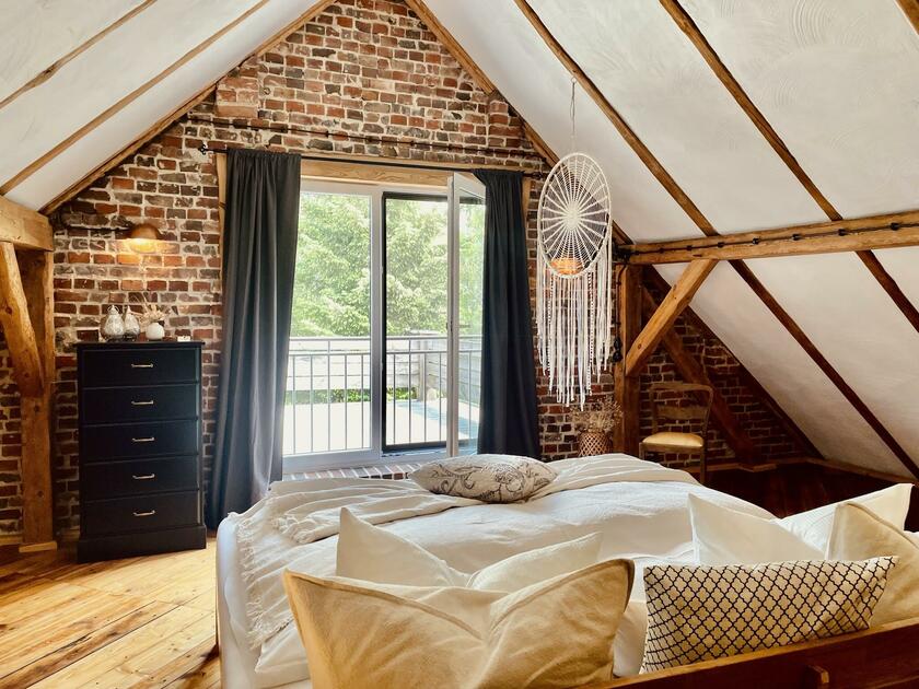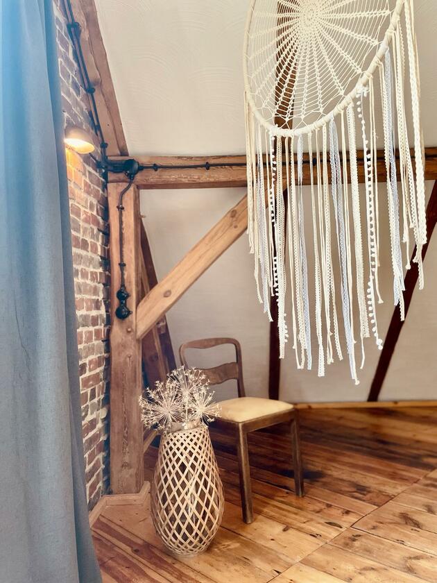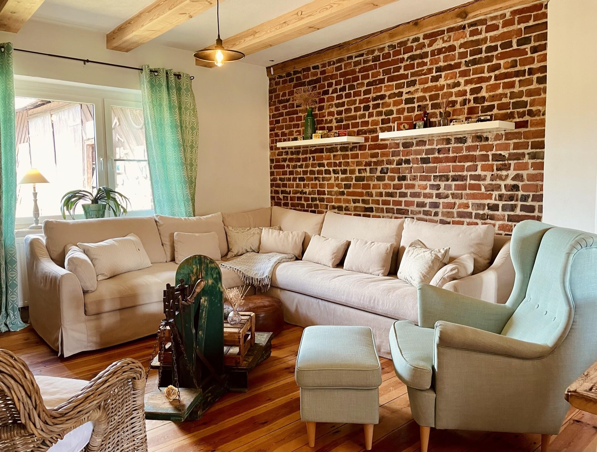 Das charmante Bauernhaus befindet sich auf einem ehemalige Bauernhof bei Cottbus, zwischen Spreewald und Schlaubetal,. Das Haus wurde liebevoll, aufwendig und nachhaltig restauriert und auf einen modernen Stand gebracht. Die Räume sind hell und in einem modernen Vintage-Stil eingerichtet. Viele der Möbelstücke wurden eigens für dieses Haus entworfen und gebaut und sind Einzelstücke. Die Fenster in den Wohnräumen, im Essbereich und den Schlafzimmern können mit Hilfe von Vorhängen abgedunkelt werden. Im Außenbereich gibt es eine Gartensauna mit einem kleinen Pool. Auf dem Grundstück sind Parkplätze vorhanden.