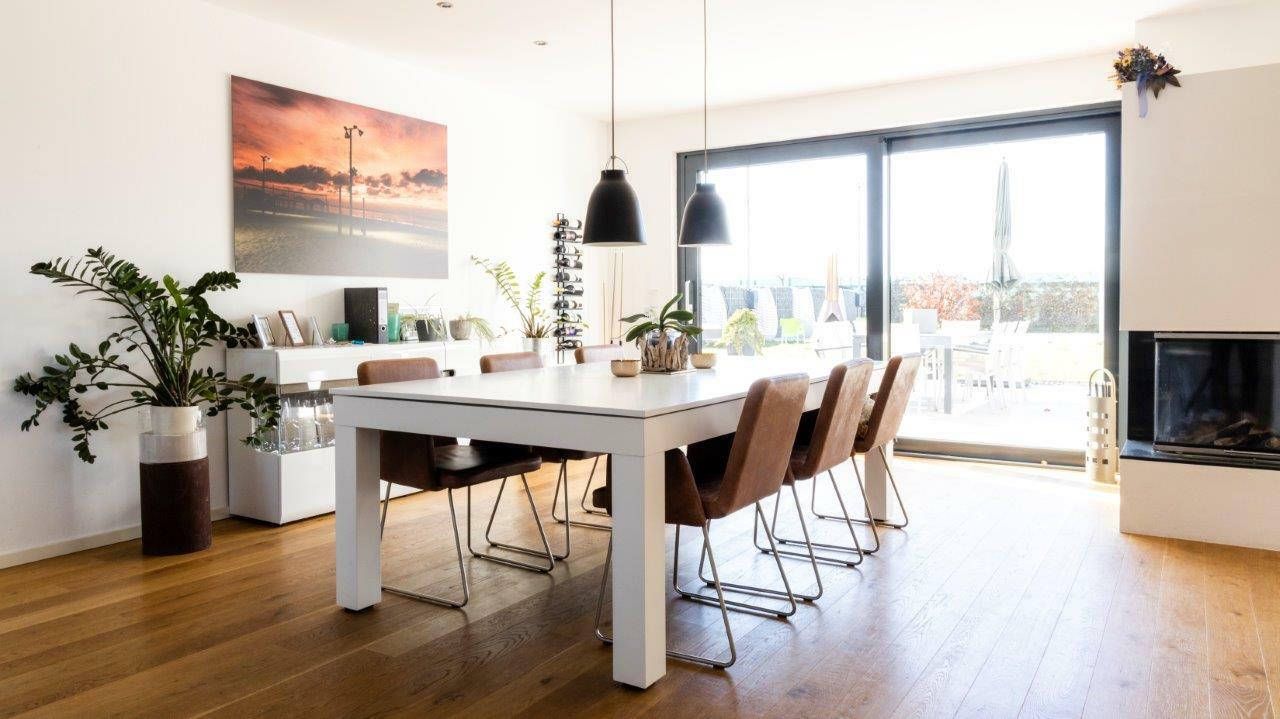 Die perfekte Süd-Westausrichtung sorgt für eine angenehme und stets helle Stimmung durch großzügige und lichte Räume. Bei Bedarf können alle Räume via elektrischer Raffstores beschattet werden. Die große Sonnenterrasse am Haus hat ebenfalls die Möglichkeit der Beschattung. Die Dachterrasse, mit Fernblick auf den Deister, hat ein bequemes Daybed, einen Bioethanolkamin sowie einen Jacuzzi. Im Haus ist ebenfalls ein Kamin vorhanden.