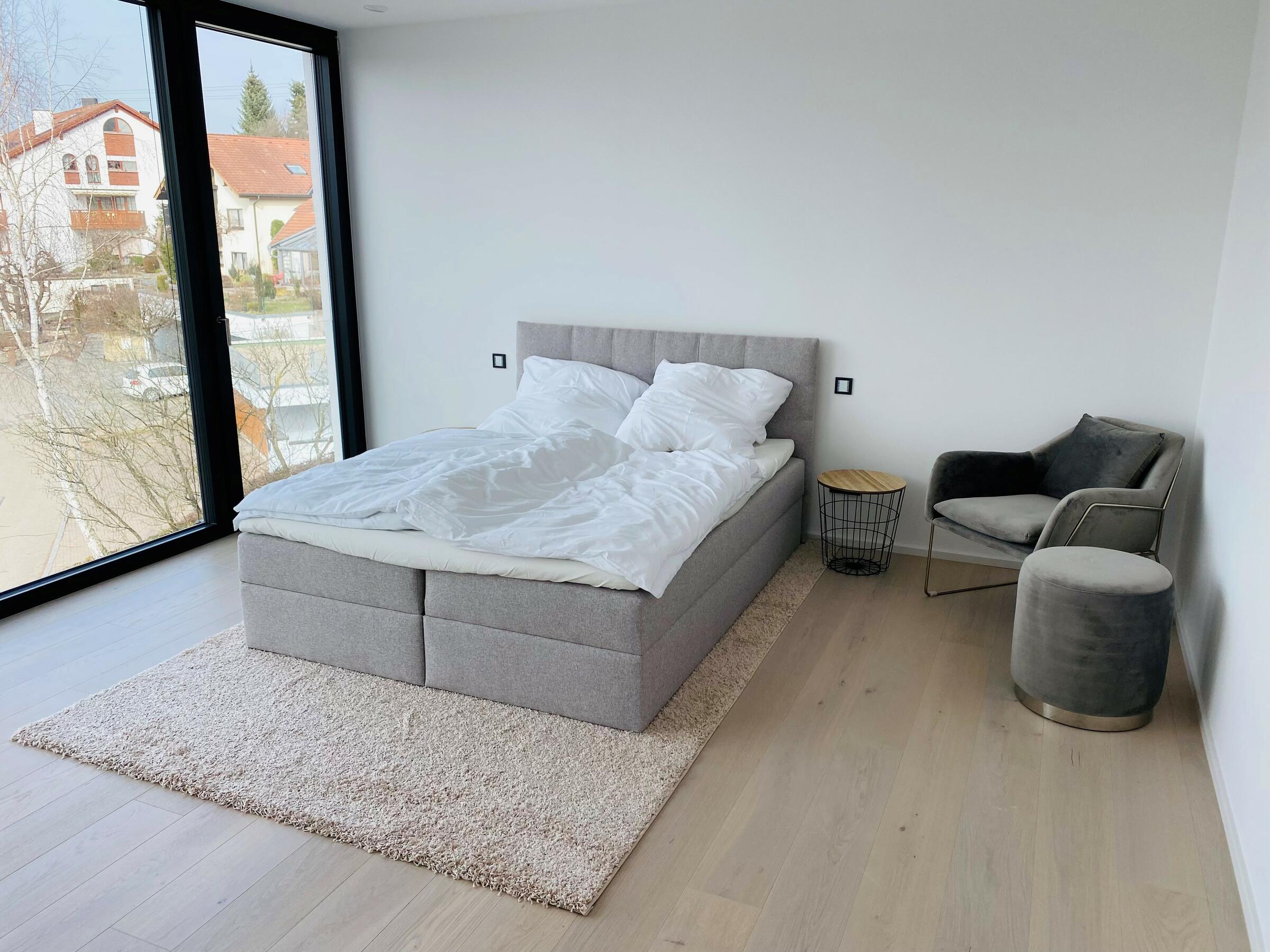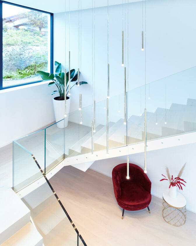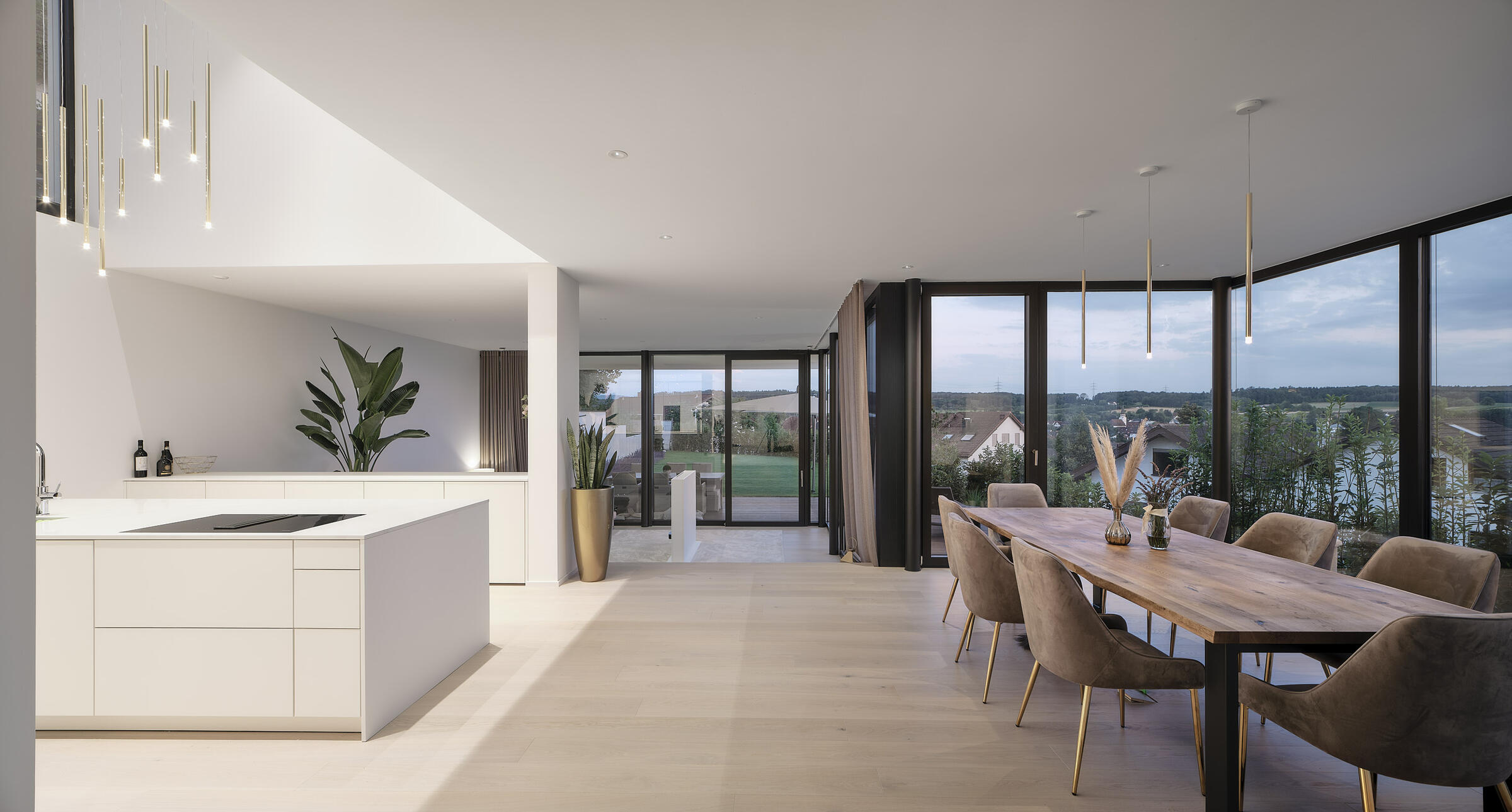 Mein helles und modernes Haus, nicht weit von Stuttgart gelegen, wurde im Jahr 2020 gebaut und vom Architekt Patrick Schiller entworfen. Das Haus beeindruckt durch enorme Deckenhöhen von beispielsweise 3,70 m im Wohnzimmer oder von 6 m über der Küche. Mit extrem viel Glasflächen wird das Haus permanent mit Licht durchflutet. Durch die hohe Hanglage entsteht ein einzigartiger Blick über die gesamte Ortschaft. Aufgrund der außergewöhnlichen und einzigartigen Architektur, zierte das Haus bereits das Cover der CUBE Architektur Zeitschrift. Das Haus befindet sich nur 20 min vom Flughafen Stuttgart entfernt.