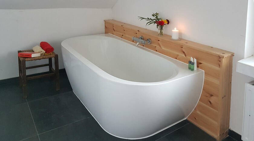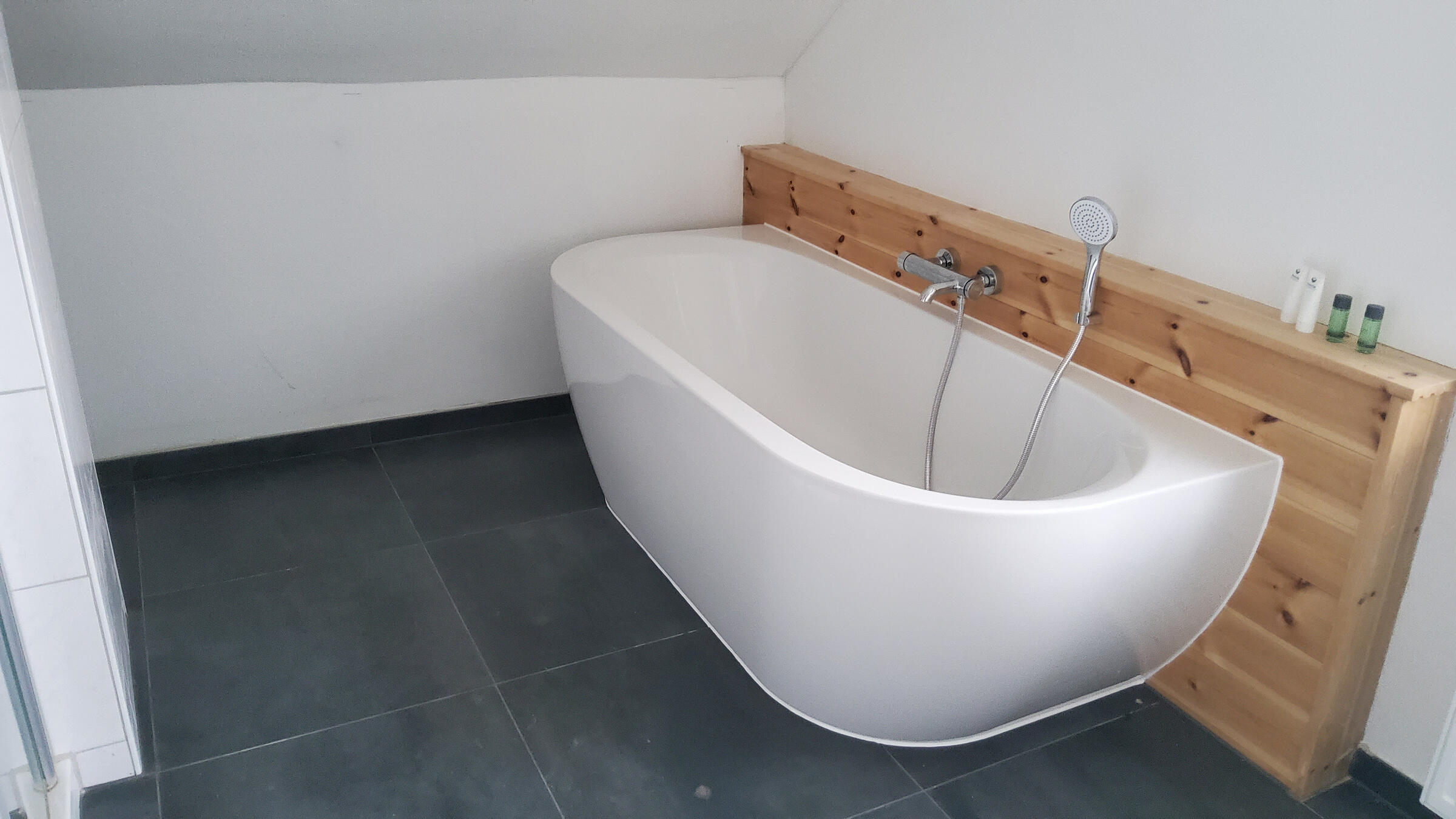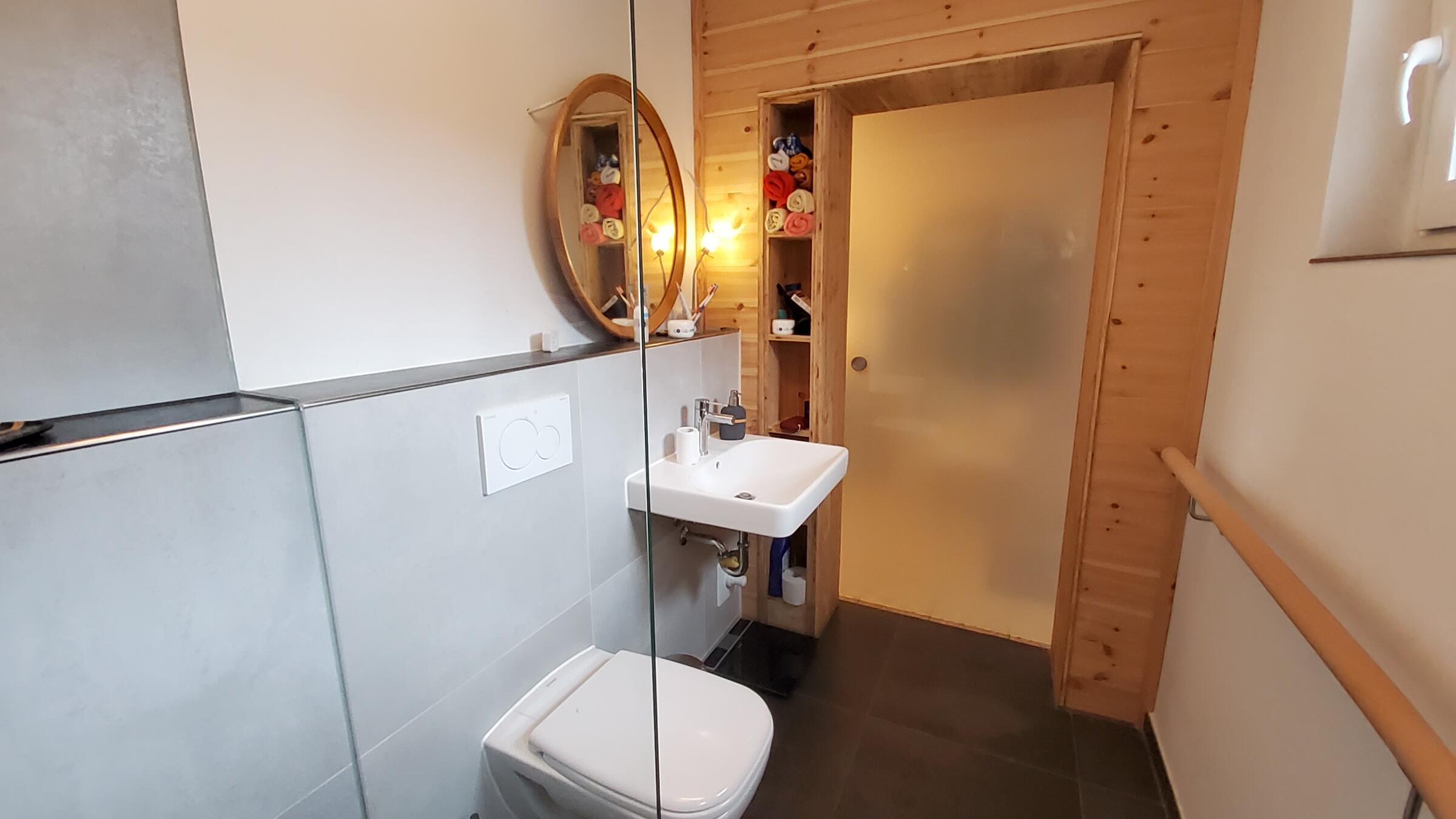 Das Haus wurde 1966 erbaut und 2019-2020 zeitgemäß saniert. Um das anspruchsvolle flexible Raumprogramm zu realisieren, setzte die Architektin auf modulare Einschübe in Holzbauweise. Der Einschub auf der Südseite bietet einen Wintergarten für die Wohnung im Erdgeschoss, dessen Decke die großzügige Dachterrasse der Gaube im ersten Obergeschoss bildet. Auf der Nordseite markiert ein weiterer Holzquader den neuen markanten Eingangsbereich mit den Außentüren der beiden Wohnungen. Bevor man die geradläufige massive Holztreppe ins Obergeschoss betritt, passiert man eine optionale Verbindung zur Wohnung im Erdgeschoss. Das Treppenhaus besticht durch eine Raumhöhe von fünf Metern und bietet den Blick hinaus in den angrenzenden Eichenwald. Der von Holzwänden flankierte zentrale Wohn-, Koch- und Essbereich im Obergeschoss bietet dank großzügiger Fensterflächen Ausblicke in alle Himmelsrichtungen und gibt den Blick auf offene Dachsparren frei. Ein Sitzfenster erinnert an den ehemaligen West-Balkon. Im Erdgeschoss wurden zugunsten von mehr Transparenz und einer offenen Küche ebenfalls trennende Wände entfernt. Durch den gewachsenen Garten mit vielen alten Sträuchern und Büschen entsteht so in jeder der Wohnungen eine spannende Korrelation von innen und außen, geprägt durch die neuen Sichtachsen der eingeschobenen Module. Momentan wird die untere Wohnung von den Besitzern selbst genutzt und ist leicht möbliert. Die obere Wohnung steht leer und wird nur gelegentlich von Gästen genutzt.