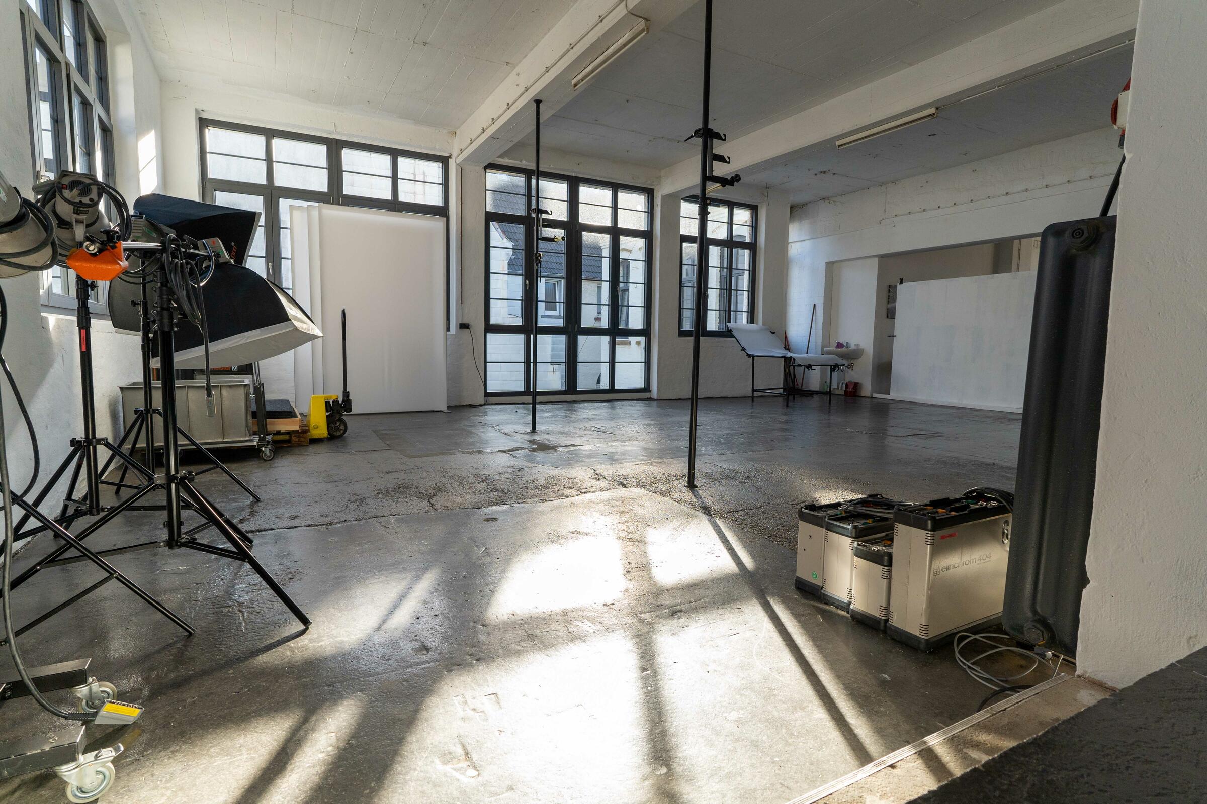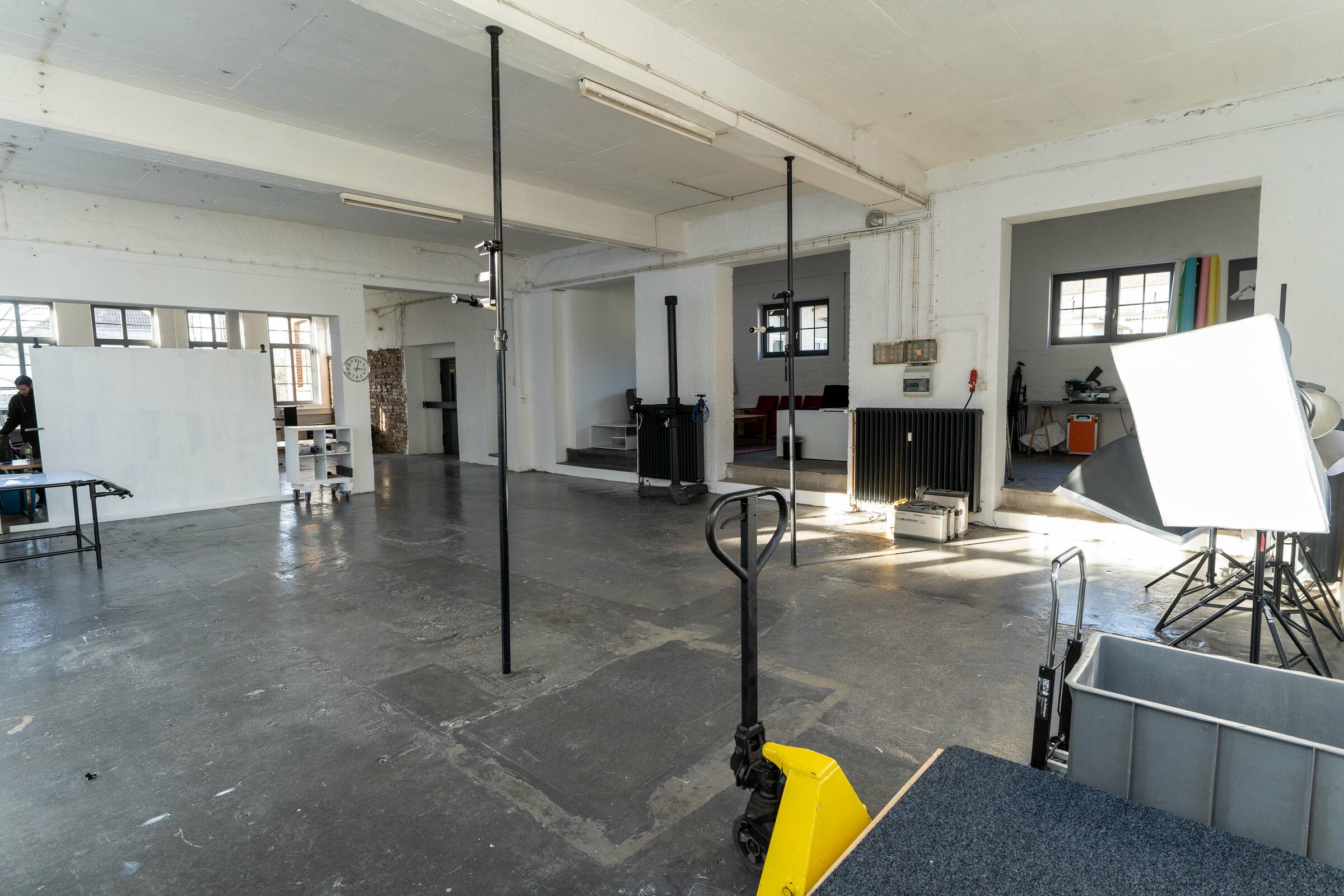 Unser helles und lichtdurchflutetes Loftstudio bietet eine bespielbare Fläche von 156 m². Die neuen und großen Fensterfronten lassen viel Licht in den Raum fallen. Die alten roten Backsteinwände verleihen dem Raum zusätzlichen Charme. Aufgrund der Deckenhöhe von ca. 3,8 m können diverse Aufbauten auf der Fläche umgesetzt werden. Eine LKW Laderampe und eine Hebebühne machen den Ladungsvorgang sehr komfortabel. Über einen Lastenaufzug gelangt man direkt in das Studio.