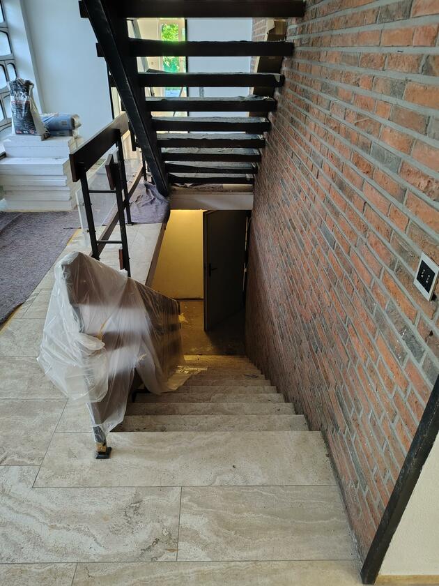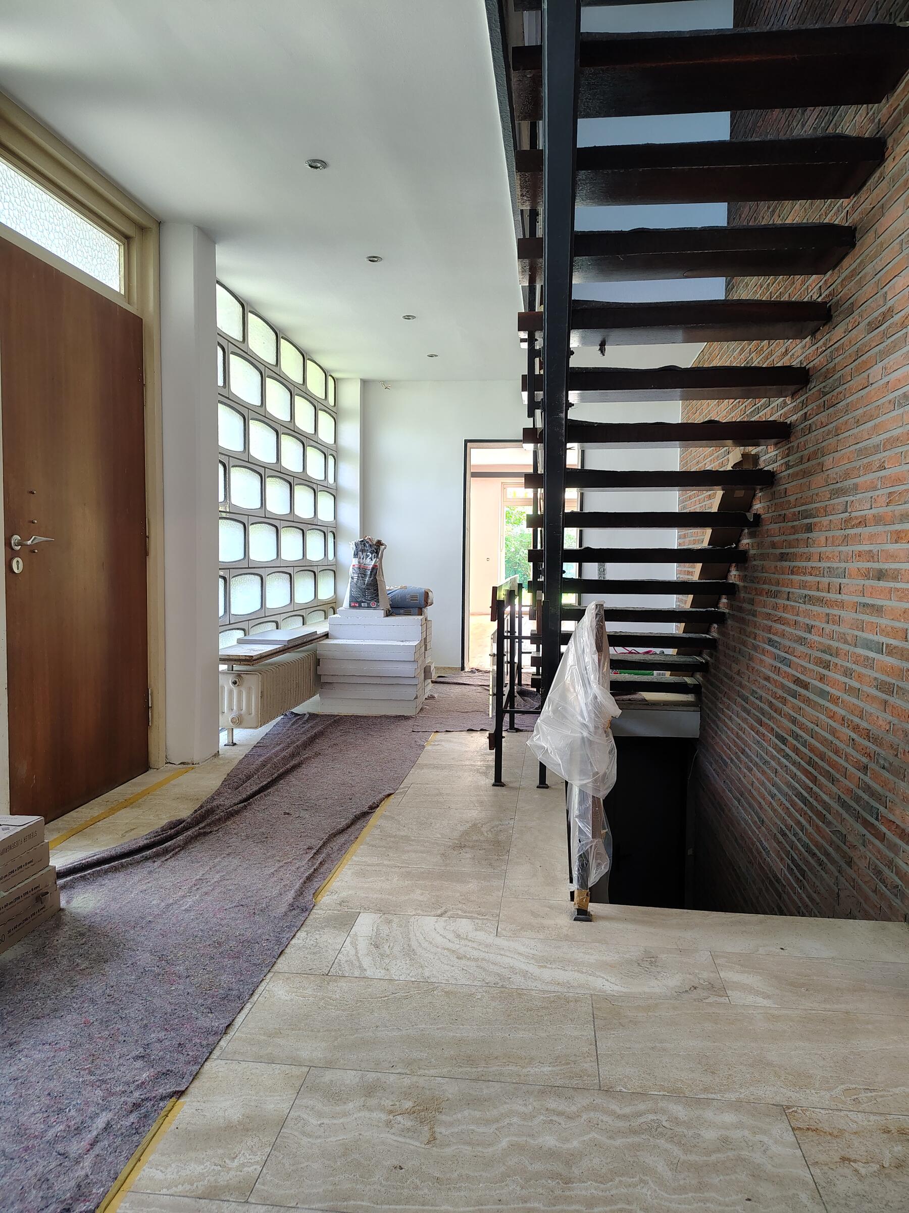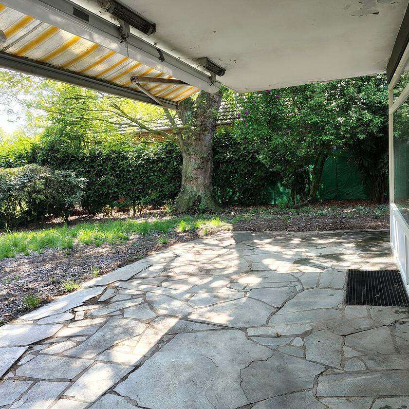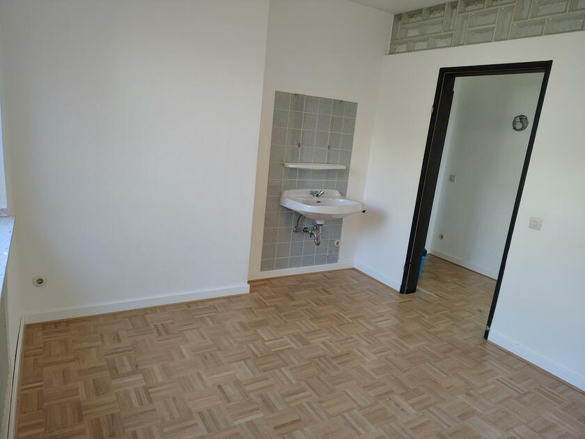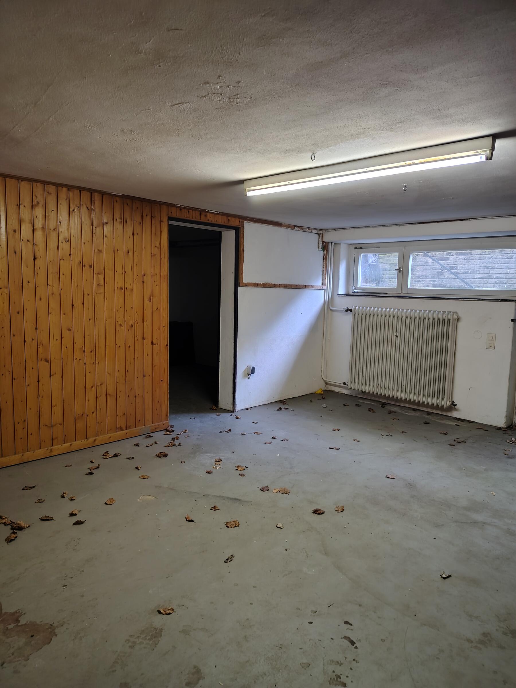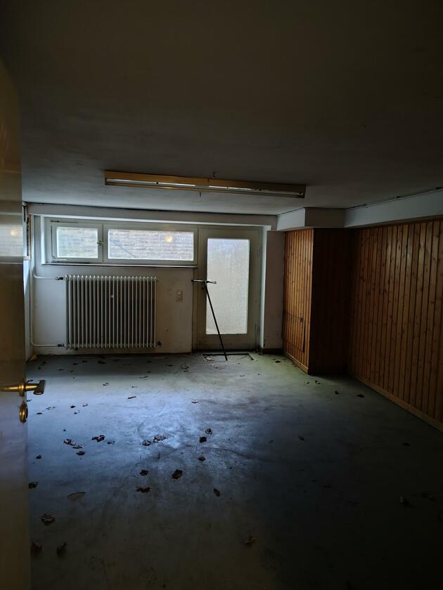 Das leerstehende, sanierte Haus befindet sich am Stadtrand. Das untere Stockwerk verfügt über ein großes Wohnzimmer mit Parkettboden und Zugang zur Terrasse, einer große Küche mit anliegendem Esszimmer, dem Eingangsbereich mit begehbarer Garderobe und einem Gäste-WC. Die Küche und das Esszimmer haben ebenfalls einen Zugang zum Garten. Durch die großflächige Verglasung im Wohnzimmer fällt viel Tageslicht in den Raum. Im Erdgeschoss befindet sich auch eine ehemals genutzte Arztpraxis. Im oberen Stockwerk befinden sich ein großes Zimmer mit eigenem Badezimmer und vier weitere Zimmer. Drei der Zimmer teilen sich einen langen Balkon. Der trockene Keller bietet vier Räume. Der größte Raum hat einen Heizkörper, sowie Fenster und einen Gartenzugang. Die Wände sind mit Holz vertäfelt. Weiteren Stauraum bietet der Dachboden mit altem hölzernen Dachstuhl und Zugang über eine Klappleiter. Parkplätze gibt es vor dem Haus.