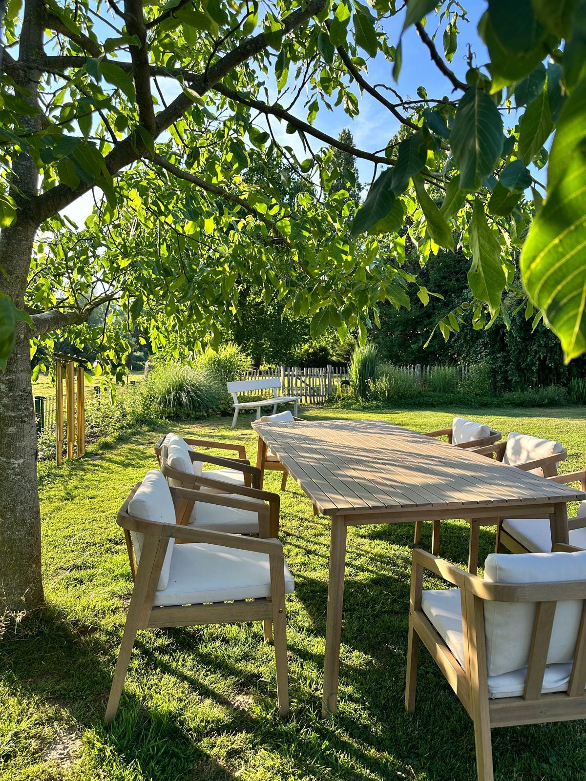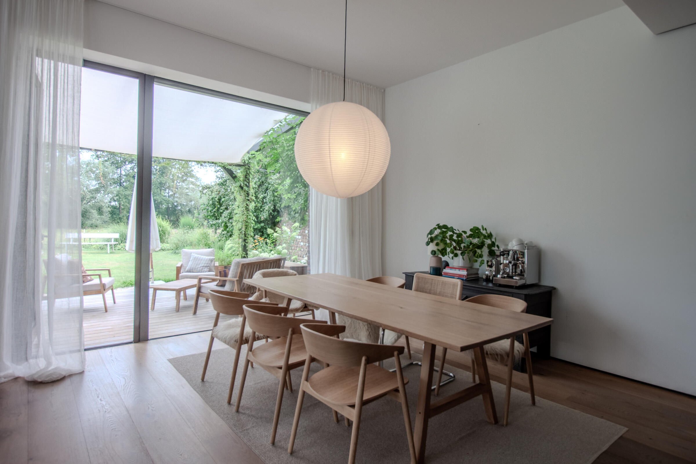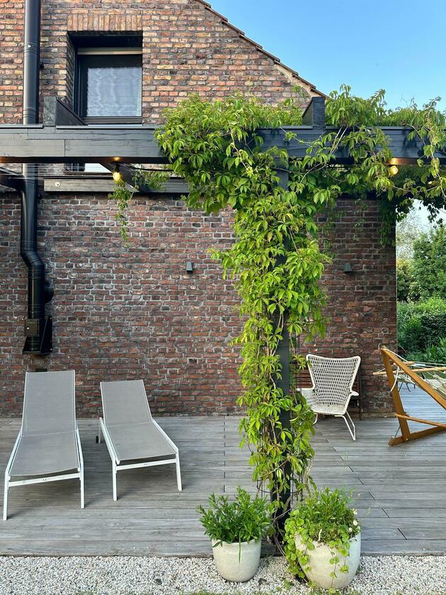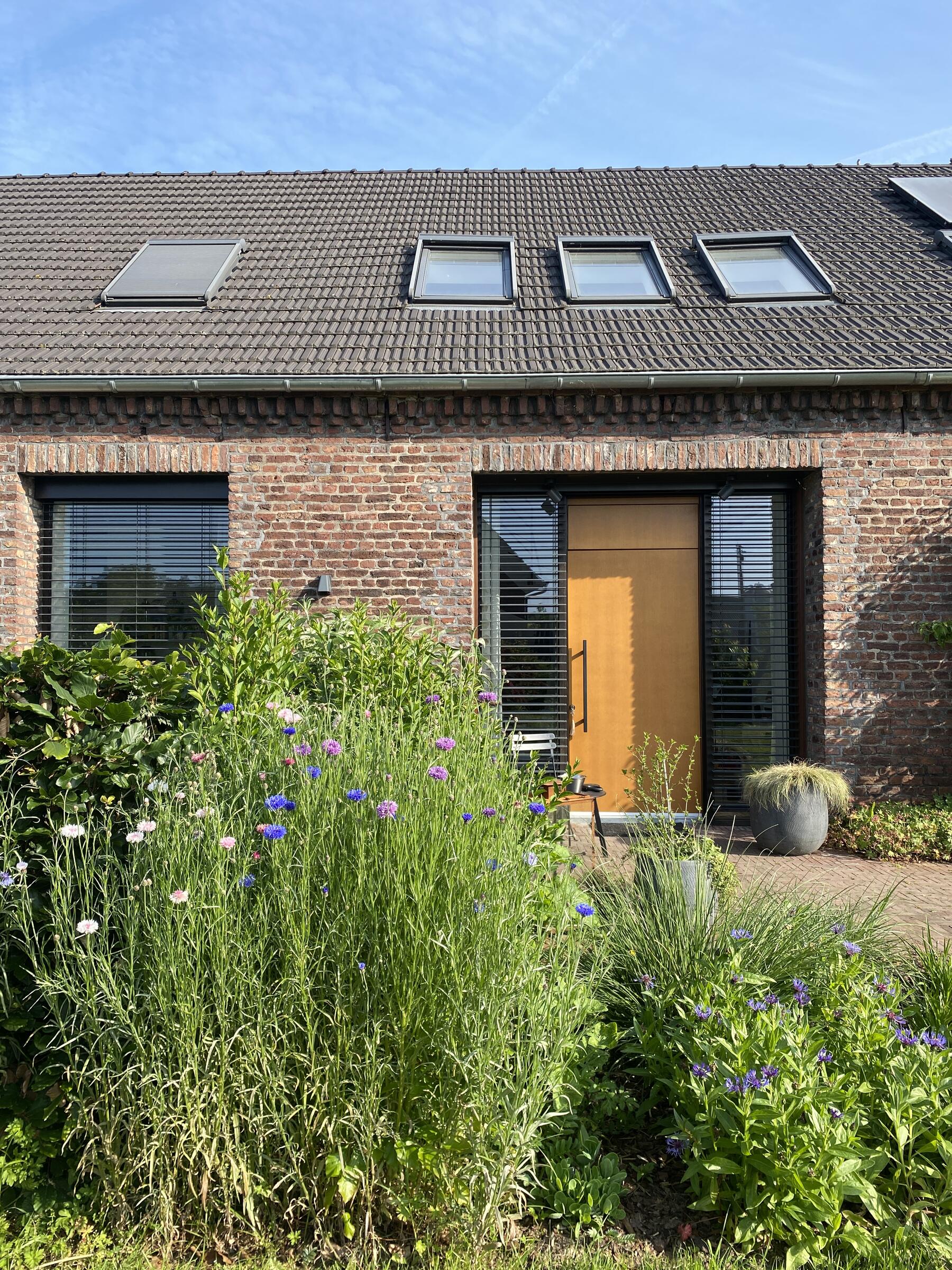 Im Außenbereich bietet unser Haus einen großen Garten mit Wiese, Staudenbeeten, eine Terrasse aus Kebony Holz und schwarzer Pergola mit wildem Wein. In Sichtweite zum Haus befindet sich ein kleiner See.