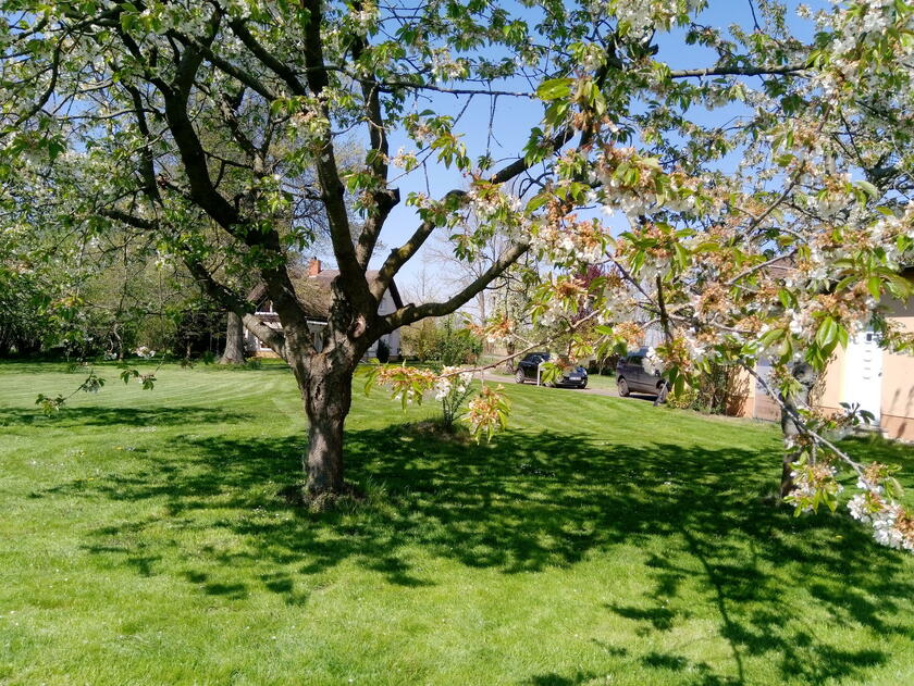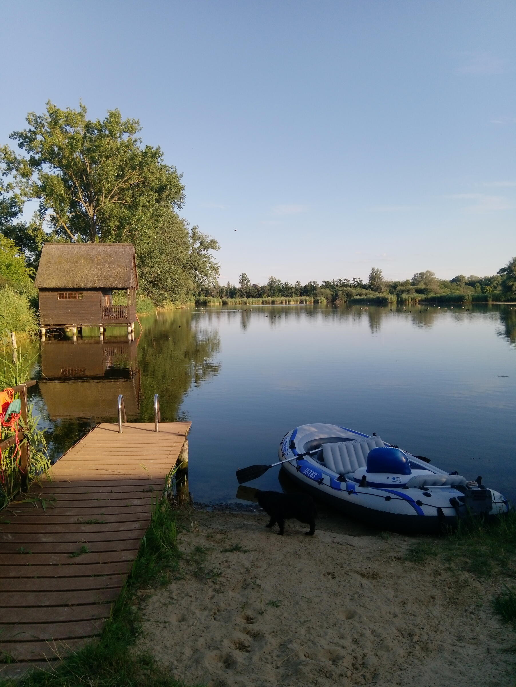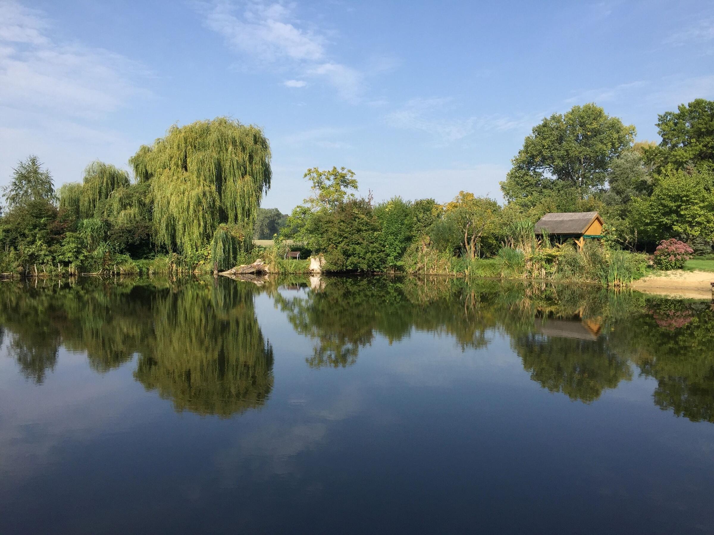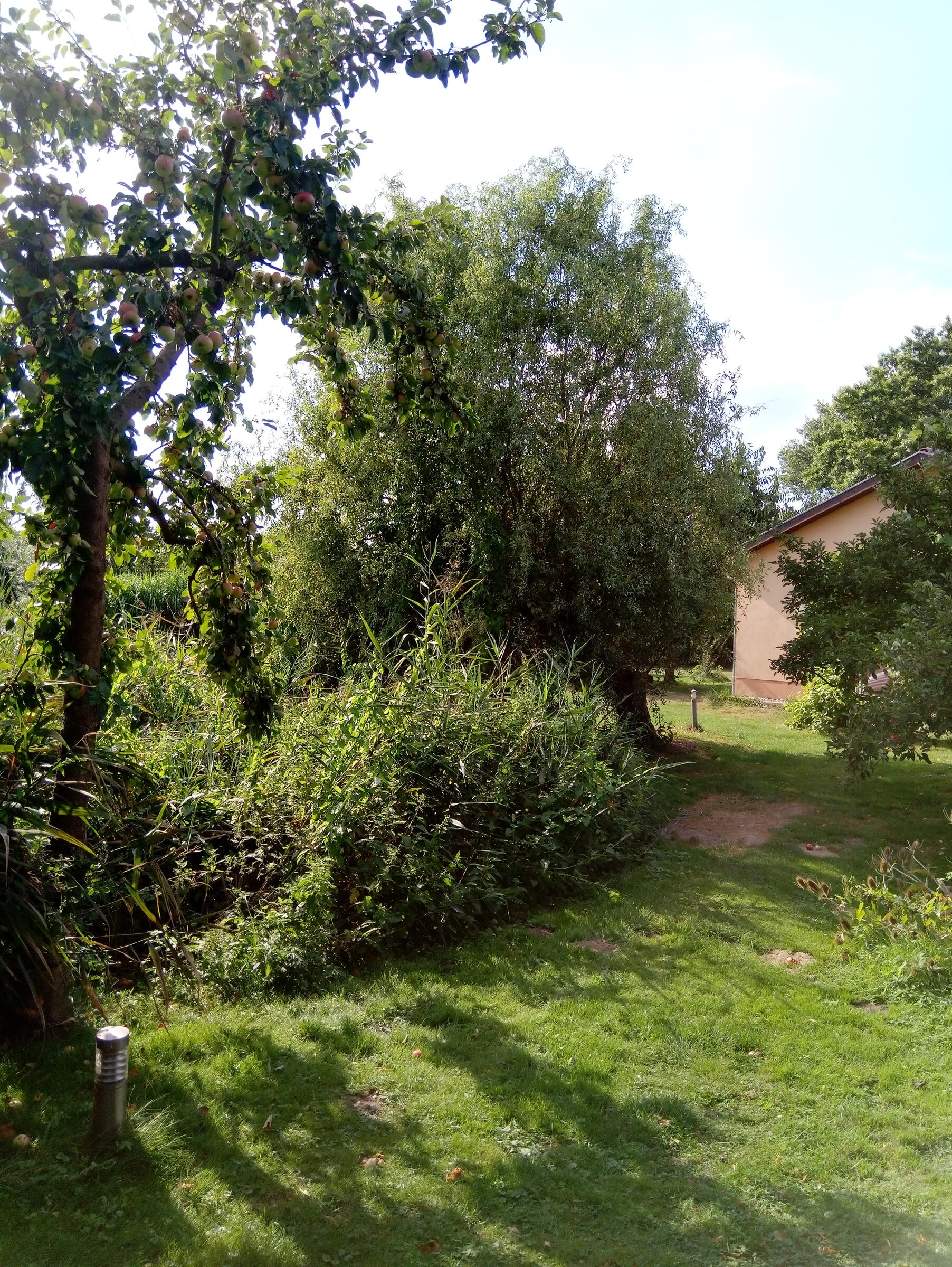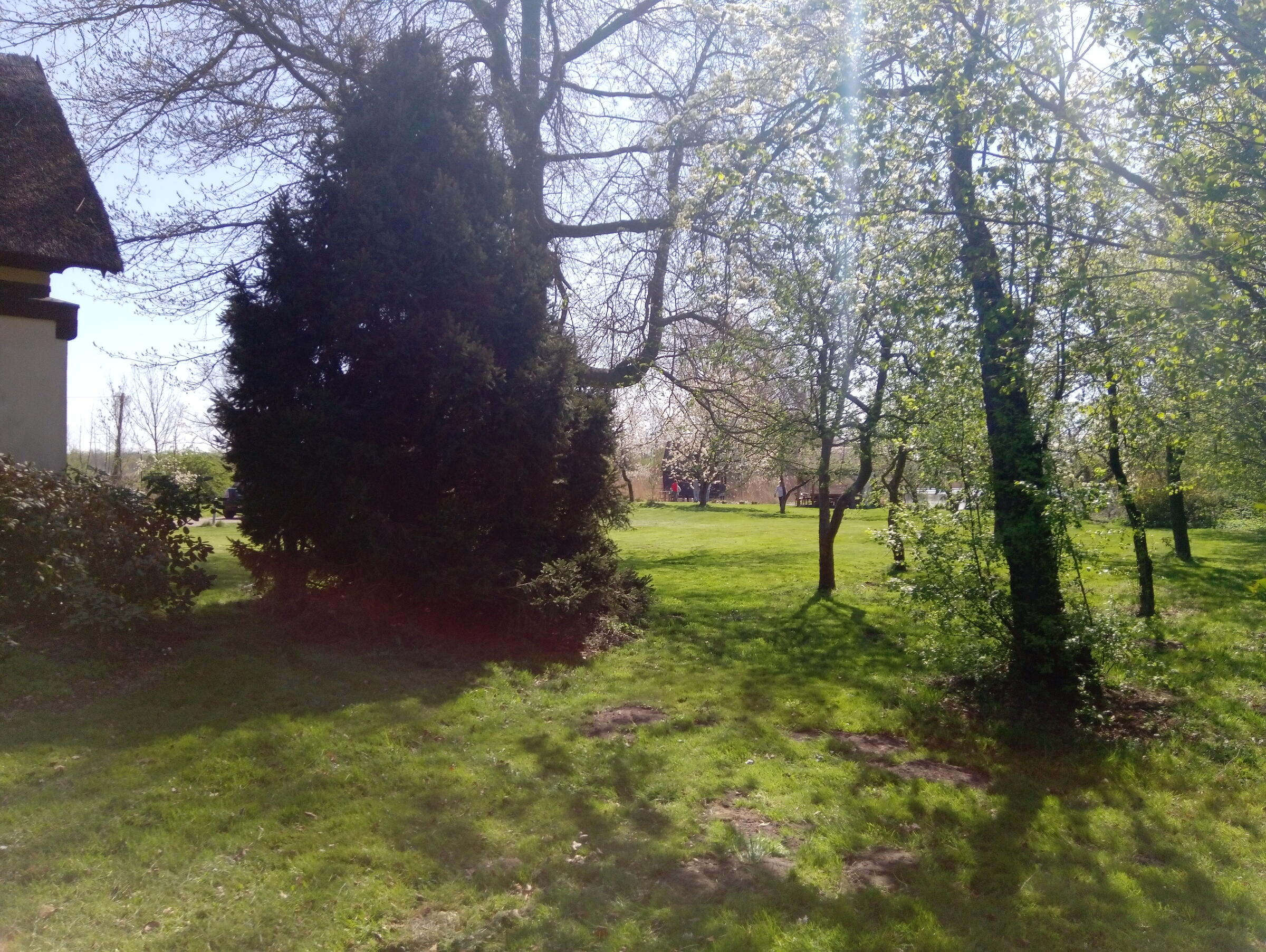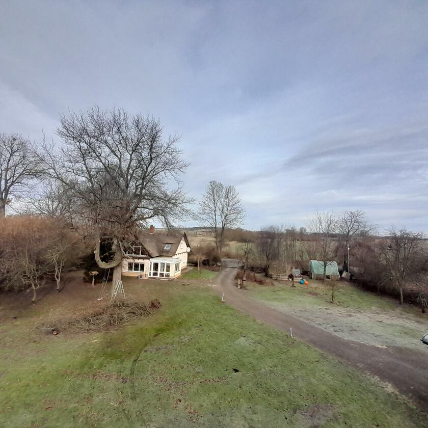 Unser Haus befindet sich nur 30 Minuten von Berlin und Potsdam entfernt in der malerischen Fischerstadt Ketzin und erstreckt sich auf insgesamt über 23.000 m² im Außenbereich. Die lange und breite gepflasterte Zuwegung auf dem Grundstück bietet Platz für mehrere Fahrzeuge, ebenso die Wiese vor der Scheune. Auf das Grundstück kann man mit Fahrzeugen von der Frontseite aus über das große elektrische Zufahrtstor, und/oder zu Fuß über das östliche Tor gelangen. Das Grundstück verfügt über eine ca. 20 Meter lange und 4 Meter breite gepflasterte Einfahrt, die das reetgedeckte Haupthaus (Baujahr ca. 1900) in dem die Familie wohnt, und das moderne Gästehaus von 2003 mit 30 m² großer offener Garage, verbindet. Das Grundstück liegt L-förmig am zu 2/3 eigenen See mit Wasserfläche 17500 m² Eigentum, keine weiteren Anlieger, und ist mit vielen Bäumen u. a. diversen Obstbäumen, bewachsen. Eingebettet ist das Grundstück zwischen Feldern und Wiesen und dem See. Ein Highlight bildet dabei die ca. 15 Meter hohe Eiche, an der eine Schaukel an überlangen Seilen befestigt ist entsprechend romantische Motive bietet.
