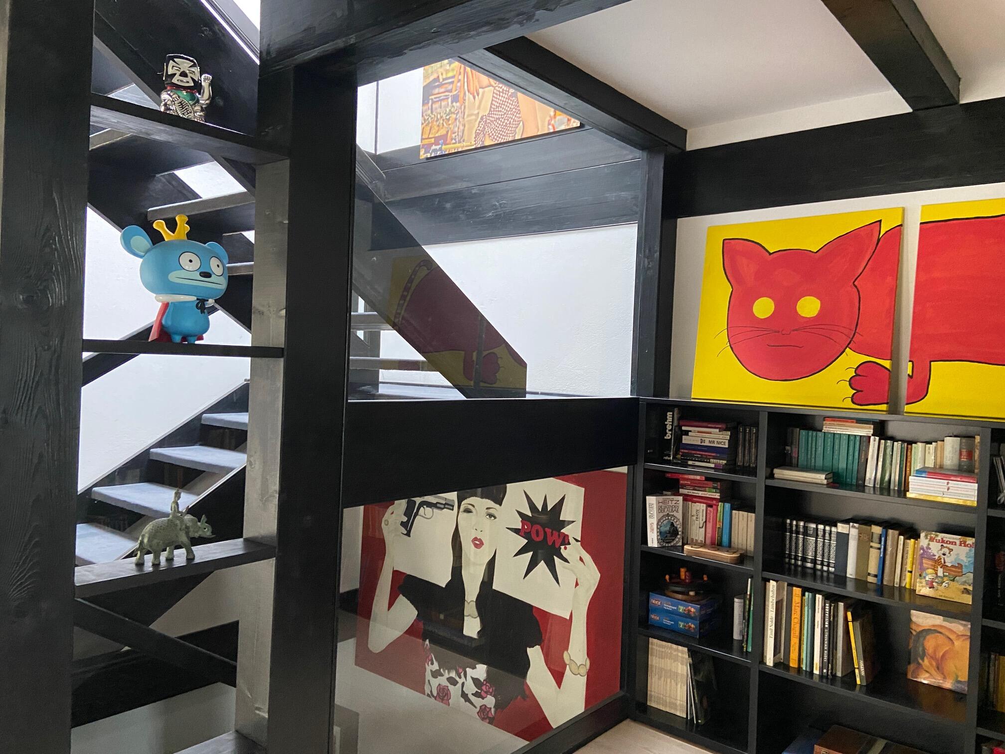 Rechts, nach dem Haus-Eingangsbereich ist eine kleine Bibliotheks-Ecke.