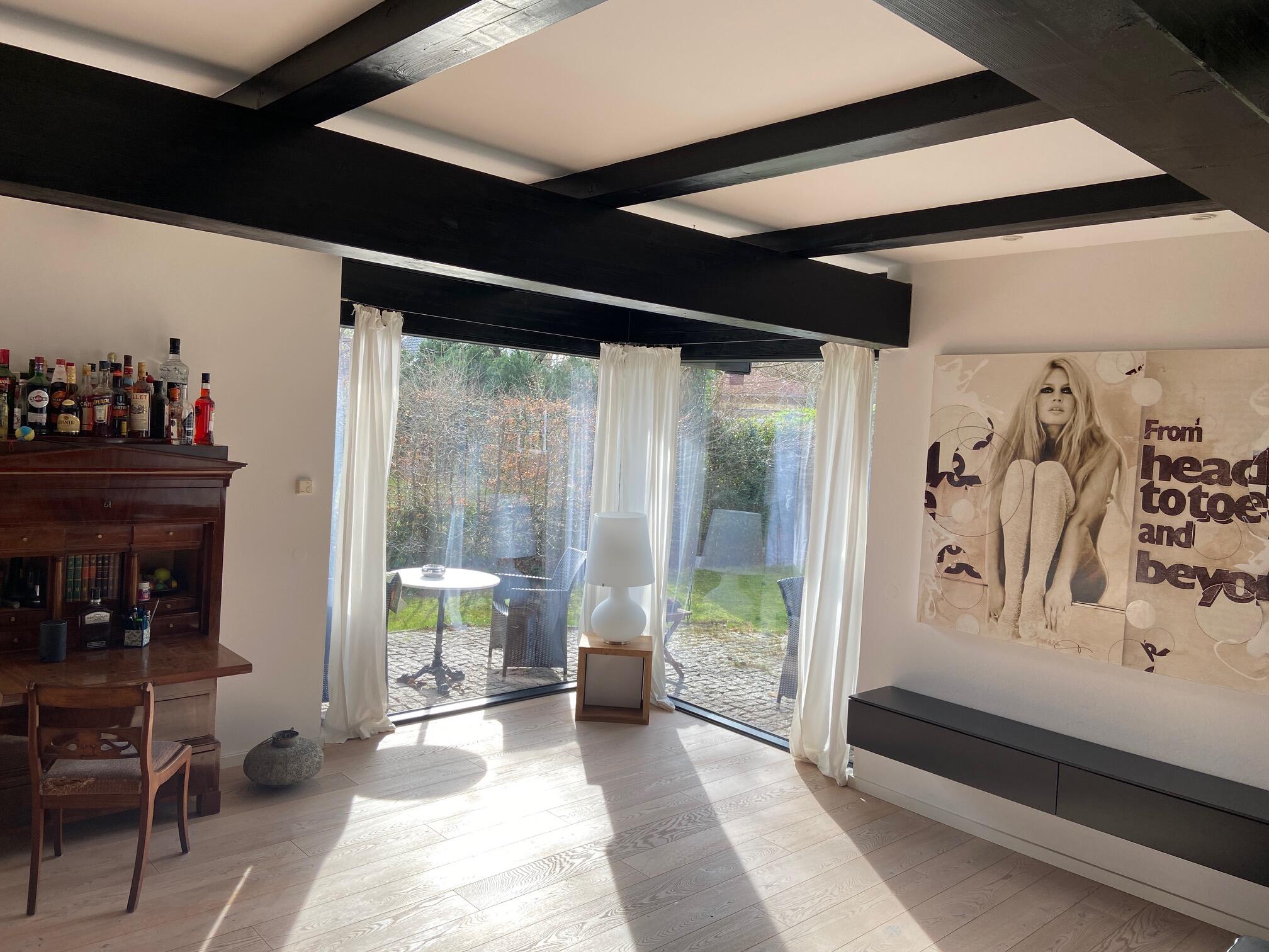 Die Fronten in diesem Bereich sind zum Garten hin geprägt durch bodentiefe Fensterfronten.