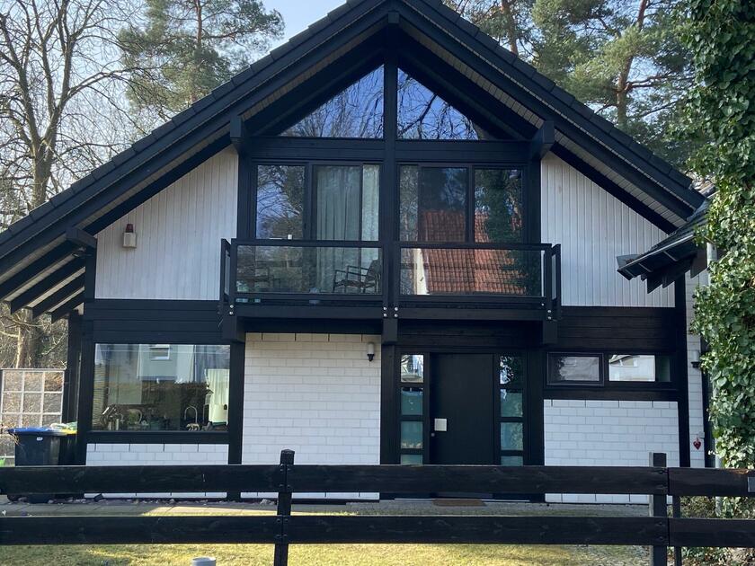 Unser Haus ist geprägt von großen Fensterfronten und offenen Räumen, die es zu einem sehr hellen Haus machen (ähnlich "HUF-Haus"). Auf dem Grundstück stehen 2 versetzt gebaute Häuser. Beide gehören uns als Eigentümer, wobei nur eines der Häuser von uns bewohnt wird und das andere fremdvermietet ist. Unser Haus liegt in einer 30er Zone in Kleinmachnow. Es können sowohl Innen- als auch Außenaufnahmen gemacht werden (Foto & Film). Bei uns können Sie CO2 neutral produzieren, denn wir haben eine Photovoltaik-Anlage auf dem Dach die uns mit Sonnenenergie versorgt.