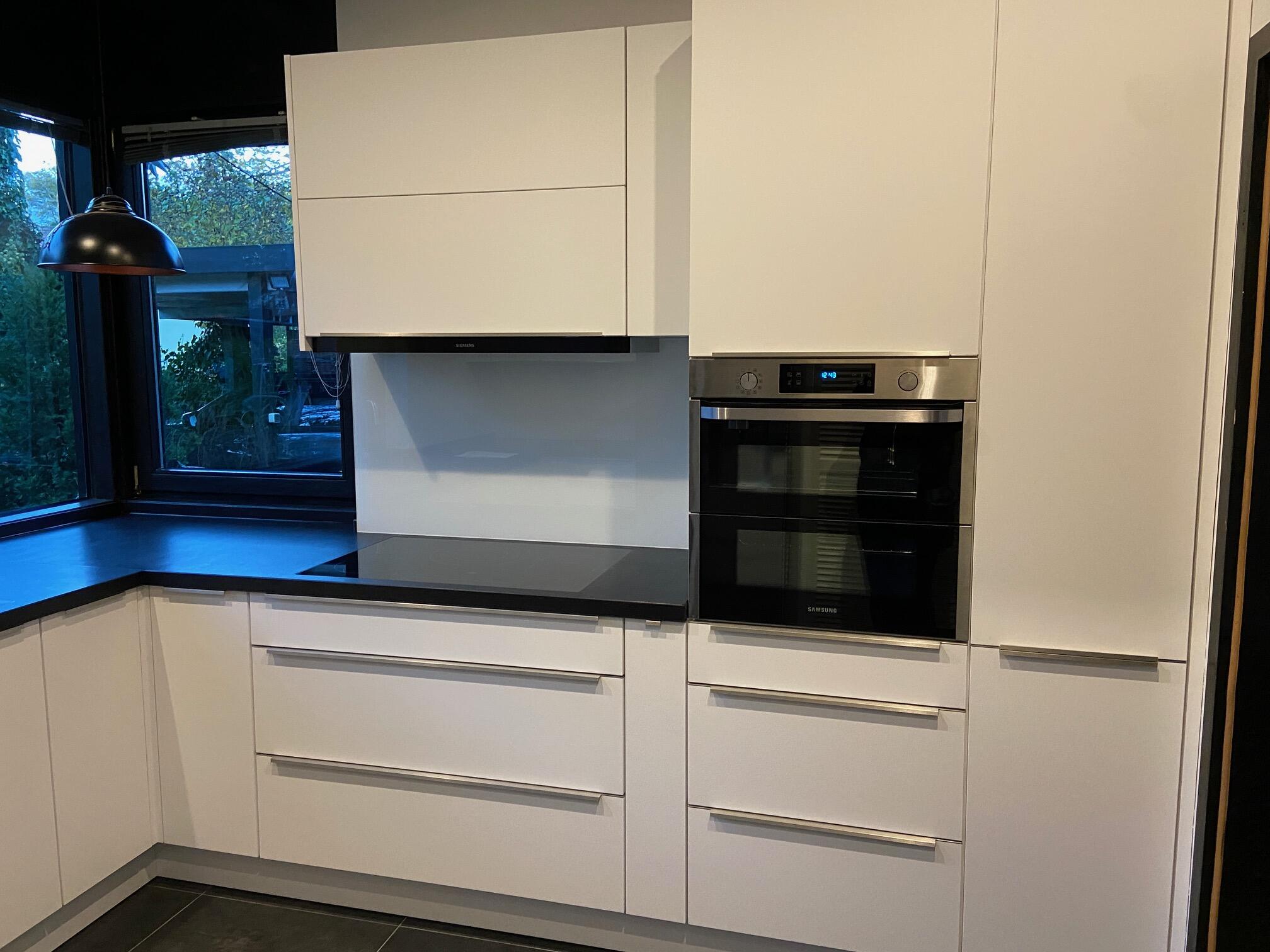 Inkl. Einbauschrank mit Schiebetüren. Eine verglaste Tür zum Wohnbereich.