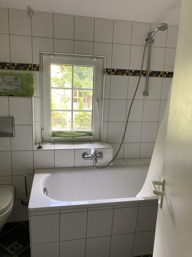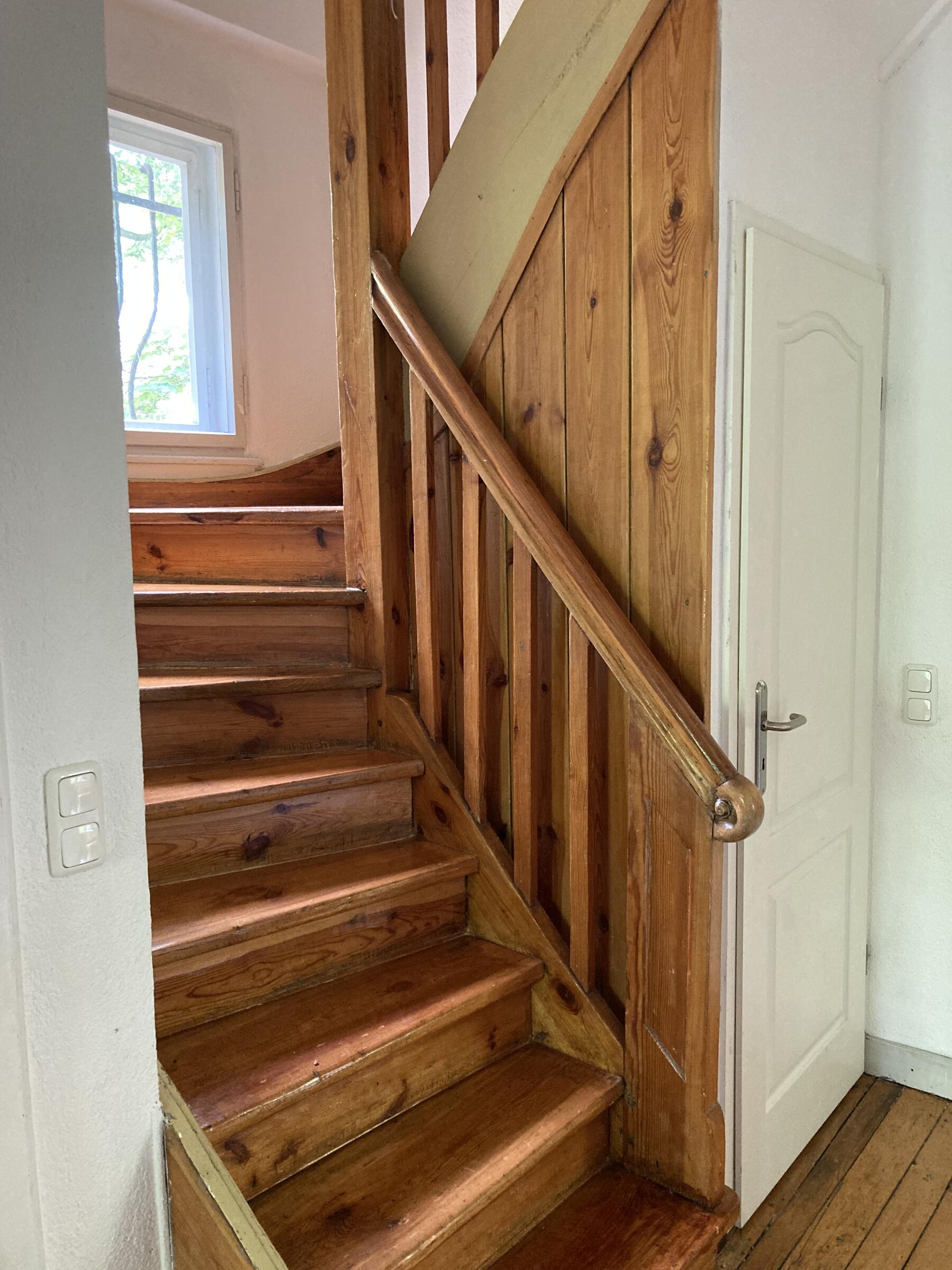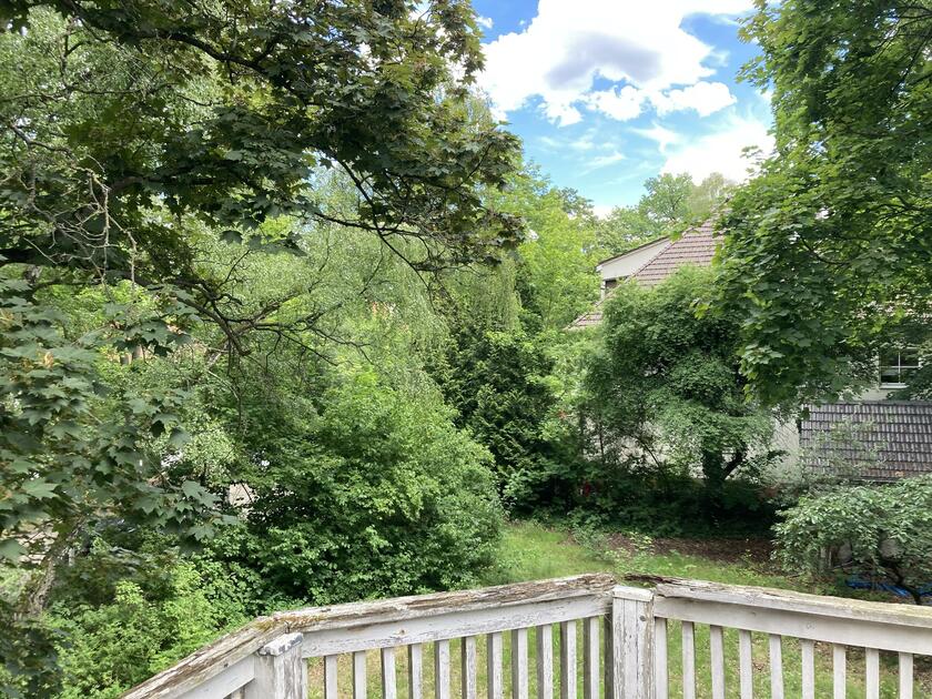 Das leerstehende Holzhaus wurde in den 1920er Jahren erbaut und befindet sich in einem ruhigen Wohngebiet. Das Wohn- und Esszimmer im Erdgeschoss bietet einen kleinen Ofen und hat sichtbare Deckenbalken. Auf den Böden sind Holzdielen verlegt. Die Räume werden durch große Schiebetüren voneinander abgetrennt. Die Altbaufenster sind mit Hilfe von Jalousien abdunkelbar. Eine Einbauküche ist ebenfalls vorhanden. Im Obergeschoss befinden sich 2 Schlafzimmer und ein Balkon. Der ausgebaute Keller hat einen separaten Eingang und bietet Räume für Maske, Garderobe und Team. Parkplätze sind auf dem Grundstück vorhanden.