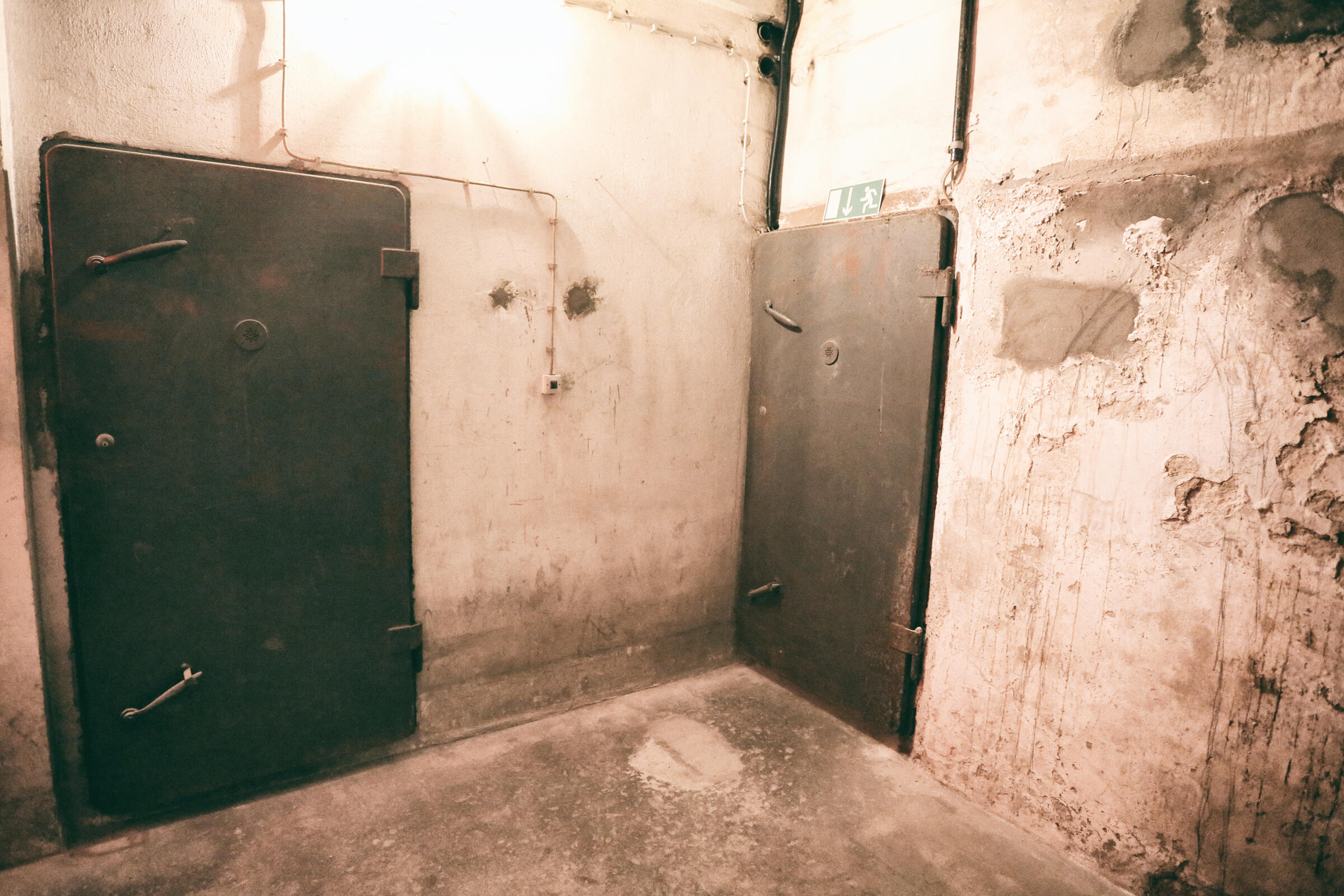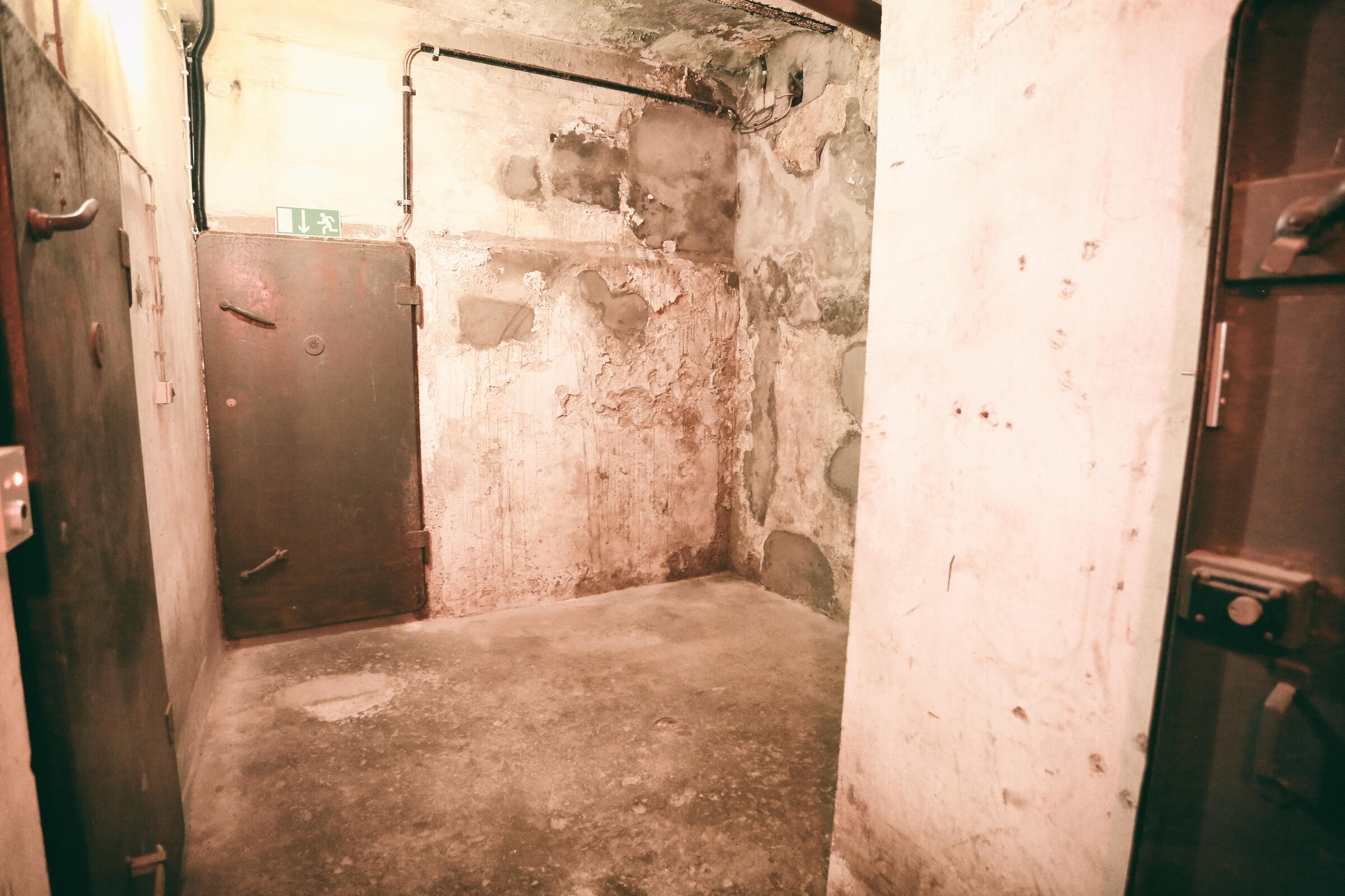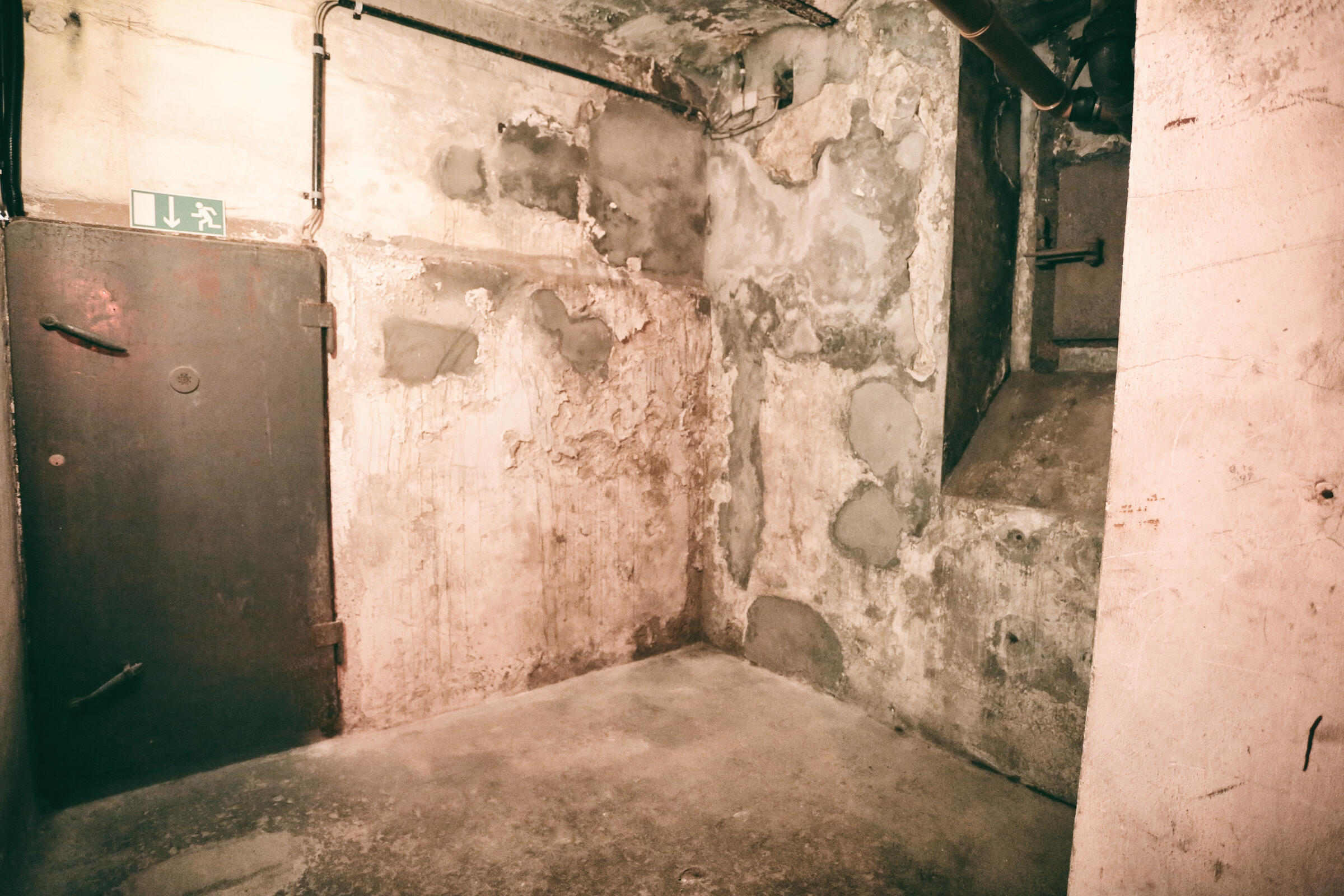 Wir bieten unseren Tiefbunker unter unserem Fotostudio in Köln als Film- und Fotolocation an. Im Keller der Halle befindet sich ein Tiefbunker (ca. 80-90 m²), der von der Halle aus über eine Stahltreppe zu erreichen ist. Dieser besteht aus einem Vorraum ohne Möblierung mit Rohholzboden. Über eine Bunkertüre gelangt man in den eigentlichen Bunkerbereich. Ein Raum des Bunkers ist als Maske und Garderobe ausgebaut. Als Besonderheit gibt es in einem der alten Einbauschränke einen versteckten Kriechgang (begehbar) hinter einer Schranktüre. Ein weiterer Vorraum mit 3 Bunkertüren und einem Gitterverschlag münden in einem Gang, der in 2 weitere Räume führt. Die 2 hinteren Kellerräume werden als Fotostudio für den SM-Bereich genutzt und sind teilmöbliert. Die SM-Möbel sind entfernbar. Der Keller ist durch Bauheizer elektrisch beheizbar und besitzt einen Drehstromanschluss 16 A. Parkplätze vor der Halle sind in reichlicher Anzahl vorhanden.