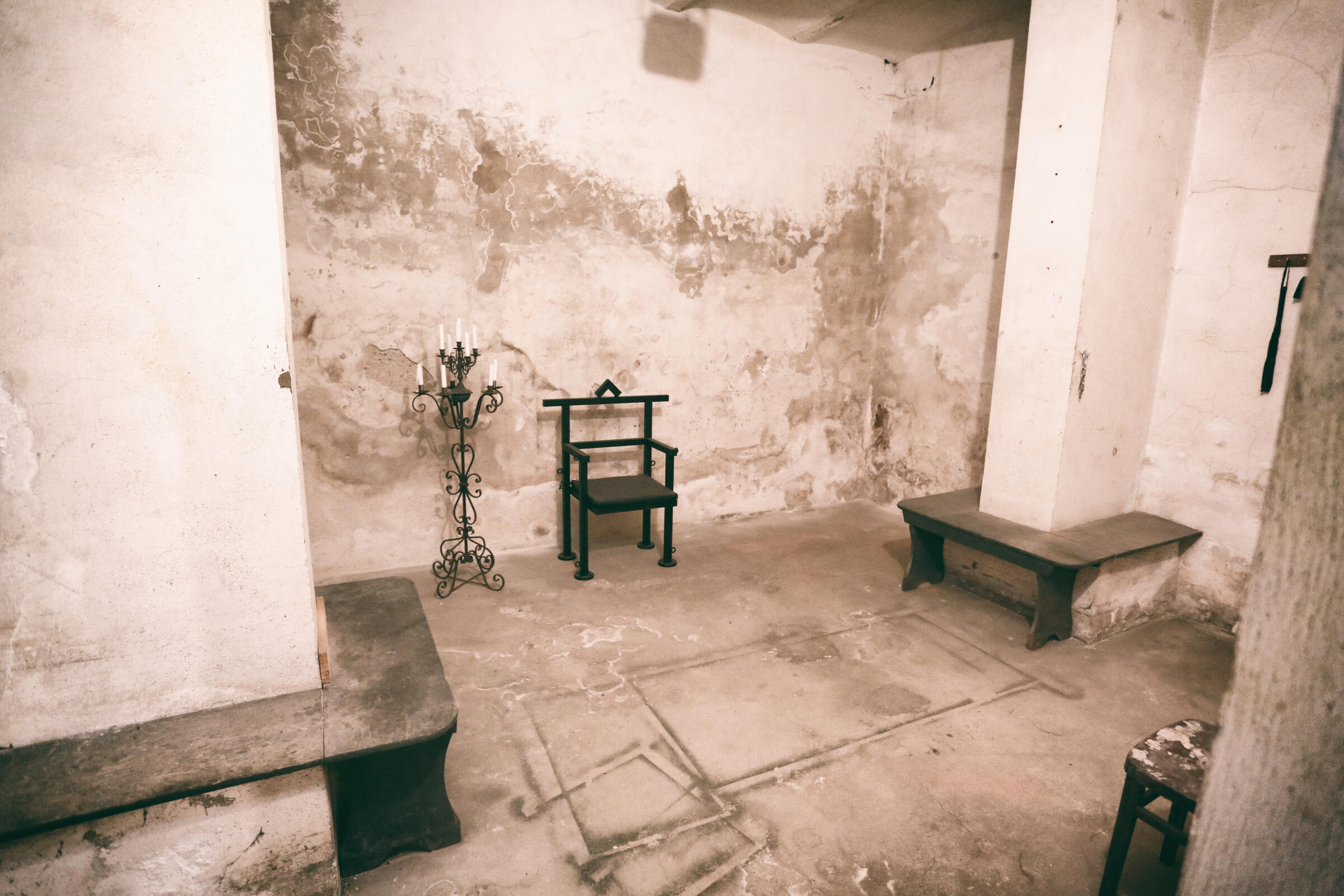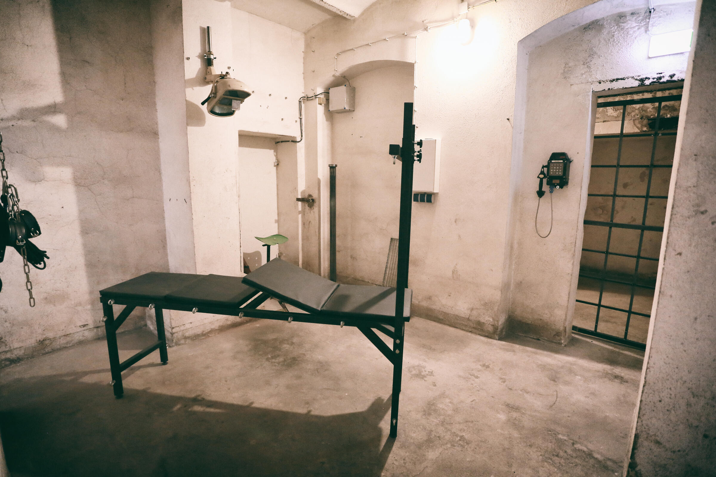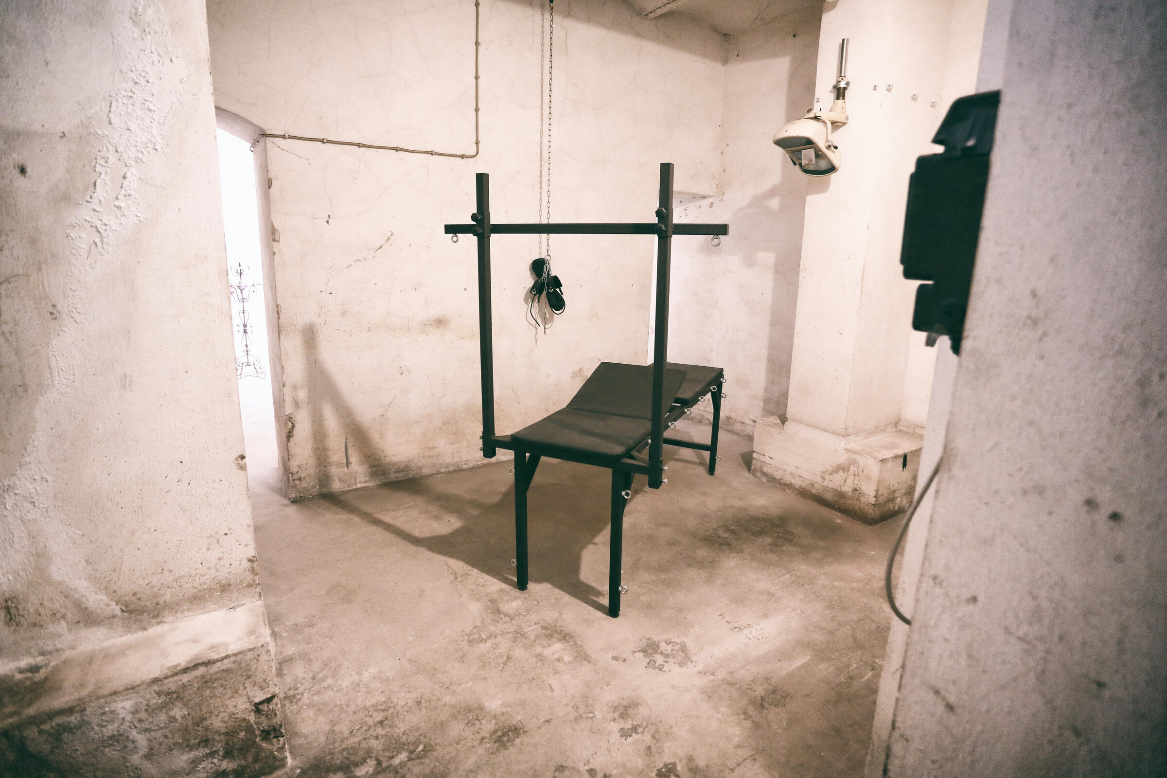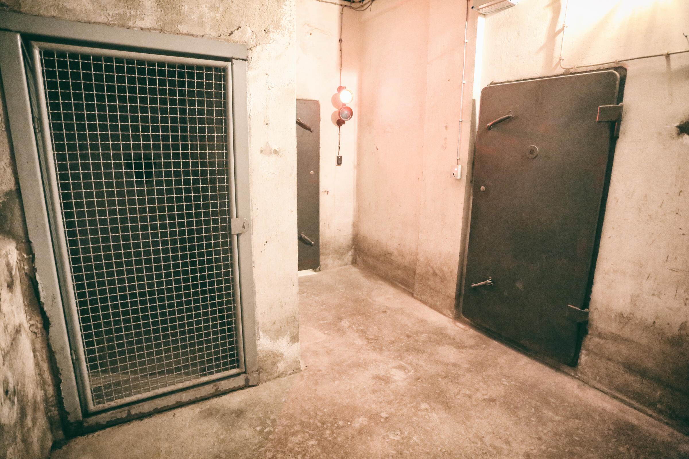 Wir bieten unseren Tiefbunker unter unserem Fotostudio in Köln als Film- und Fotolocation an. Im Keller der Halle befindet sich ein Tiefbunker (ca. 80-90 m²), der von der Halle aus über eine Stahltreppe zu erreichen ist. Dieser besteht aus einem Vorraum ohne Möblierung mit Rohholzboden. Über eine Bunkertüre gelangt man in den eigentlichen Bunkerbereich. Ein Raum des Bunkers ist als Maske und Garderobe ausgebaut. Als Besonderheit gibt es in einem der alten Einbauschränke einen versteckten Kriechgang (begehbar) hinter einer Schranktüre. Ein weiterer Vorraum mit 3 Bunkertüren und einem Gitterverschlag münden in einem Gang, der in 2 weitere Räume führt. Die 2 hinteren Kellerräume werden als Fotostudio für den SM-Bereich genutzt und sind teilmöbliert. Die SM-Möbel sind entfernbar. Der Keller ist durch Bauheizer elektrisch beheizbar und besitzt einen Drehstromanschluss 16 A. Parkplätze vor der Halle sind in reichlicher Anzahl vorhanden.