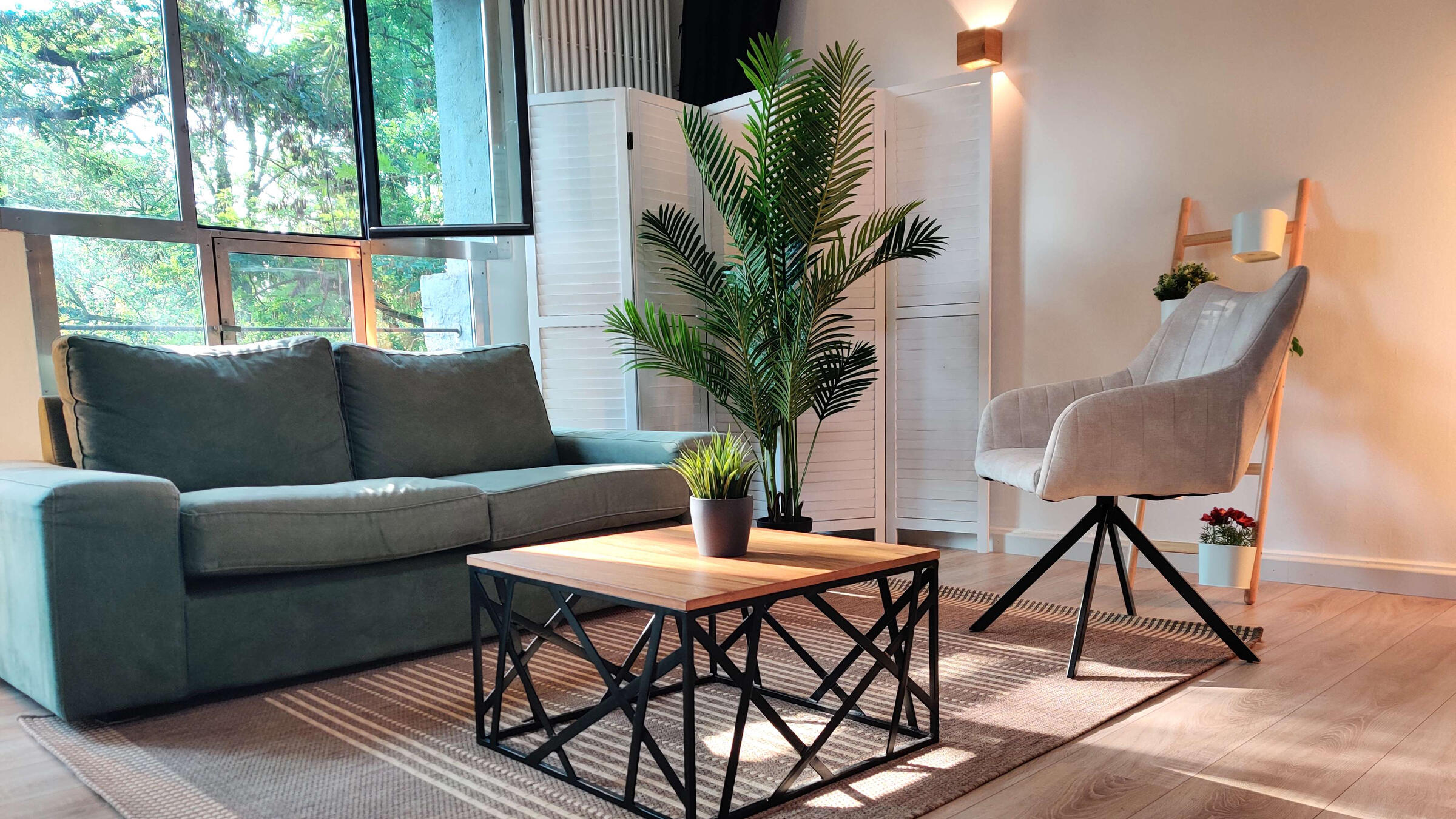 Unser großes lichtdurchflutetes Mietstudio mit 3 m – 3,8 m hohen Decken ist ideal für Foto- und Videoproduktionen geeignet. Für Livestreams können wir eine Glasfaserleitung zur Verfügung stellen. Die Studiofläche ist durch akustische Elemente für die Tonqualität bei Videoproduktionen optimiert worden. Das geräumige Badezimmer bietet die Möglichkeit zum Umkleiden und Schminken. Nutzen Sie verschiedene Requisiten für Ihr Szenenbild. Auch unsere Videotechnik kann hinzugebucht werden. Das Studio bietet verschiedene Möbel und Dekoartikel. Der vordere Raum bietet viel Platz für Pausen. In der offenen Küche stellen wir Ihnen gerne Kaffee und weitere Getränke bereit.