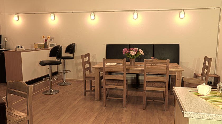 Innenräume (5)Fläche (m²) Länge (m) Breite (m) Höhe (m) Möbliert Geschoss Teeküche 18 4 4,5 2,5 ja EG Garderobe 7 4,5 1,5 2,3 ja EG Essbereich 14 4,5 3 2,8 ja EG Büroraum 14 4,5 3 2,3 ja EG Studiofläche 95 10 9,5 3 nein EG