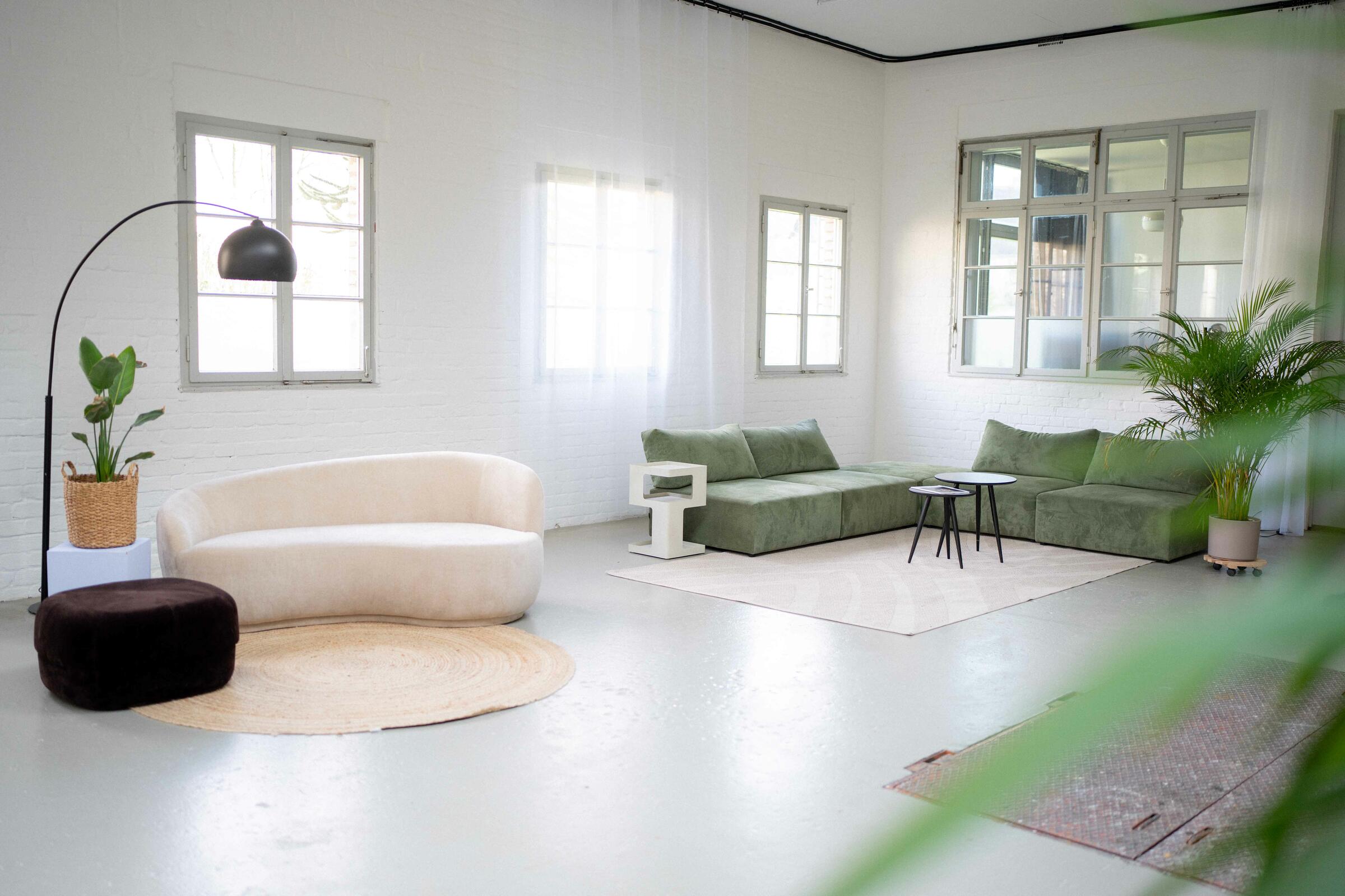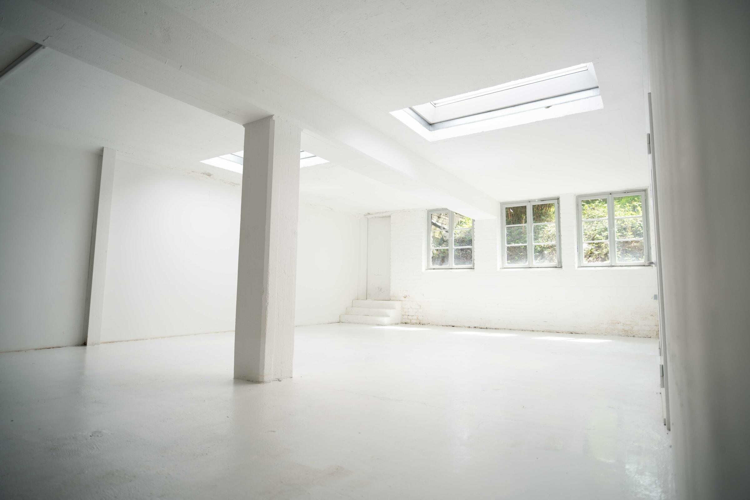 Unser Loftstudio bietet 2 separate Studioflächen. Im Erdgeschoss befindet sich das 200 m² großes Tageslichtstudio mit vielen seitlichen Fenstern und ca. 20 m² großem Deckenfenster. Das Erdgeschoss ist durch ein großes Tor befahrbar, wodurch das Be- und Entladen erleichtert wird. Im EG befindet sich ebenfalls die Studioküche und der Zugang zum ca. 200 m² großen Garten. Im Untergeschoss befindet sich eine ca. 200 m² große Studiofläche im All-White-Look. Diese Studiofläche hat ebenfalls direktes Tageslicht. Unsere Studios sind selbstverständlich mit diversen Möbeln, Props und Produktionsequipment ausgestattet. Vor dem Studio befinden sich 7 reservierte Parkplätze. Weitere Parkplätze in der näheren Umgebung sind außerdem einfach zu finden.