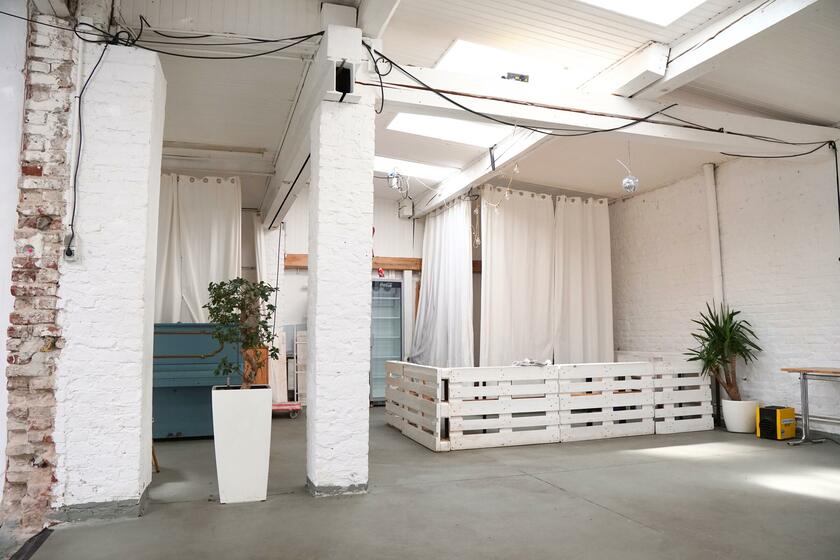 Das helle und wandelbare Studio befindet sich im Belgischen Viertel und bietet 3 bespielbare Studioflächen. Die Haupthalle bietet eine Deckenhöhe von bis zu 4,75 m und kann mit Fahrzeugen bis zu einer Breite von 1,95 m befahren werden. Das Studio verfügt über große Fenster, die nicht vollständig verdunkelbar sind. Neben den 2 kleineren Studioflächen steht auch ein separater Raum für Maske und Aufenthalt zur Verfügung. Trotz der zentralen Lage, dringt kein Außenlärm in die Studioräume. Auf der vorbeiführenden Straße gibt es öffentliche und kostenpflichtige Parkplätze. In ca. 30 m Entfernung befindet sich ein Parkhaus.