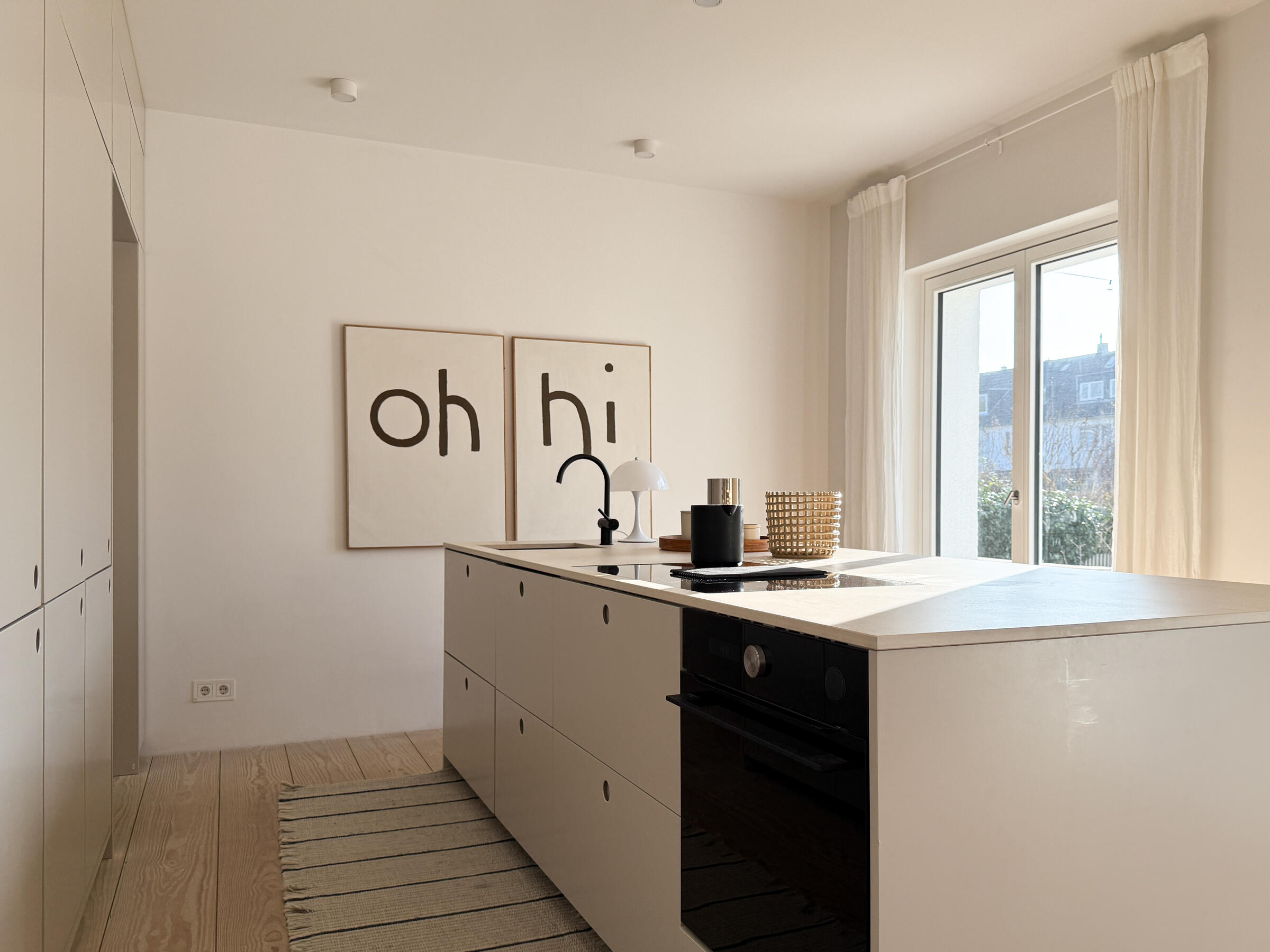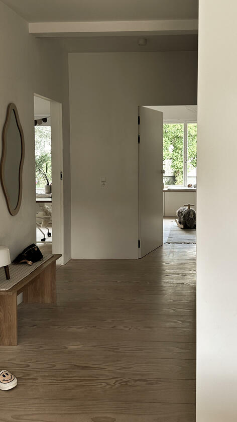 Meine helle Wohnung befindet sich im Kölner Stadtteil Neuehrenfeld, im 1. Obergeschoss eines Wohnhauses. Die Räume der Wohnung sind mit hochwertigen Möbeln modern und funktional im Japandi Stil eingerichtet. In allen Räumen, außer den Badezimmern, die gefliest sind, ist Douglasien Dielenboden verlegt. Die moderne Küche bietet eine große Kochinsel. Die teilweise bodentiefen Fenster haben lichtdurchlässige Vorhänge und können somit nur bedingt abgedunkelt werden. Im Außenbereich steht ein großer Garten zur Verfügung. Parkplätze gibt es vor dem Eckhaus auf der vorbeiführenden Einbahnstraße.