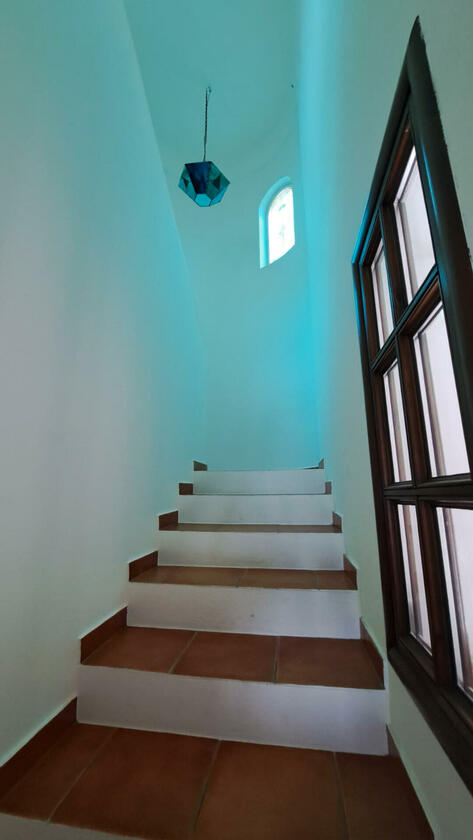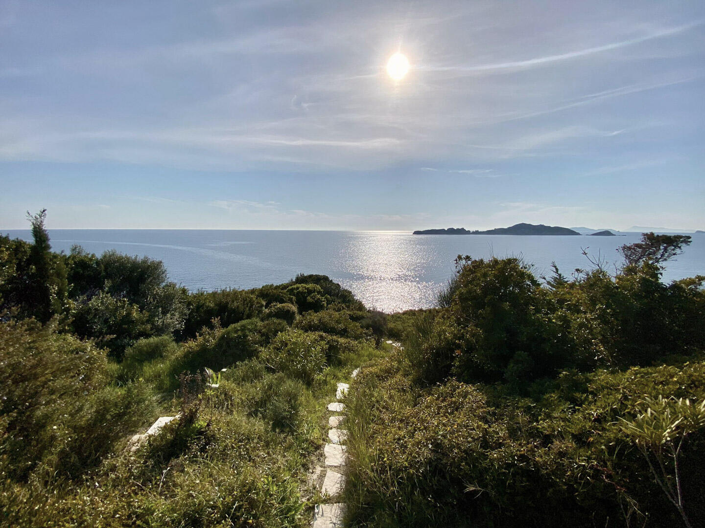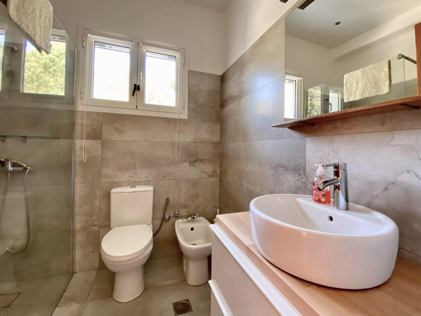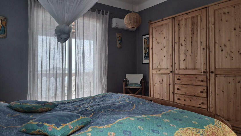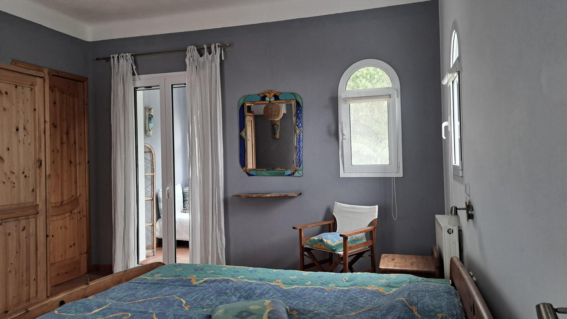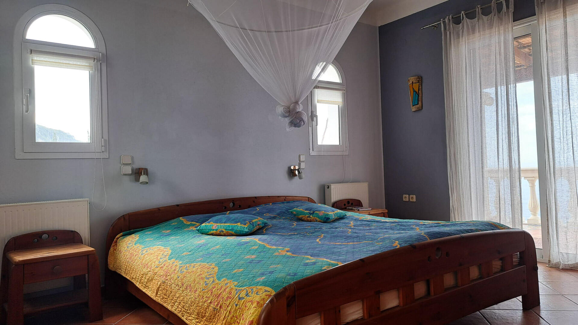Die Villa befindet sich abseits eines kleinen Bergdörfchens im Nordwesten der Insel Korfu. Die hellen und lichtdurchfluteten Wohnräume des Hauses erstrecken sich über 2 Etagen. Das Haus bietet einen offenen Wohn- und Essbereich der in die offen gestaltete Küche übergeht. Die große Küche verfügt über eine Kücheninsel, eine Theke und Sitzgelegenheiten. In der oberen Etage befinden sich Schlafzimmer mit jeweiliger Veranda. Im Außenbereich bietet das Haus eine großzügige Terrasse und einen Garten. Das Haus bietet in alle Richtungen unverbauten Blick ins Grüne oder direkt aufs Meer. Es sind lediglich ein paar Schritte über das private Gelände und den Felsen bis zum Meer. Über einen unbefestigten Weg gelang man vom Dorf hinunter zur Villa, wo es Parkmöglichkeiten direkt vor den Eingängen gibt. Ein Allradfahrzeug ist empfehlenswert. Vom Flughafen Kerkyra sind es ca. 60 min Autofahrt bis zum Haus.