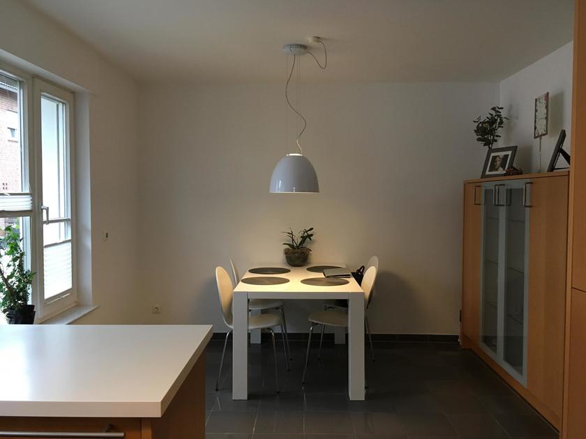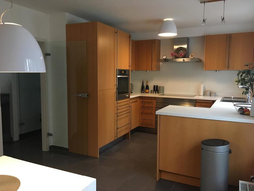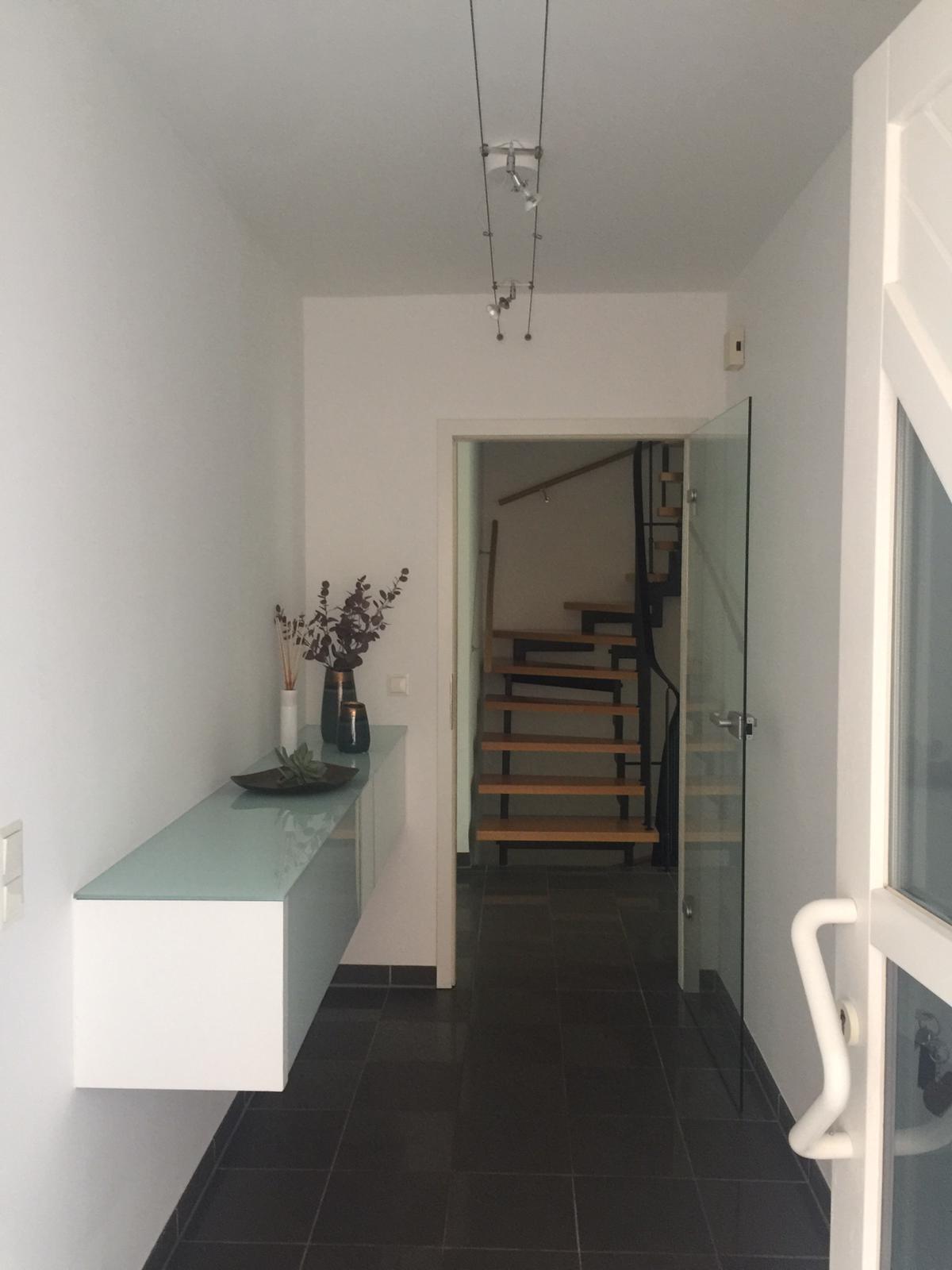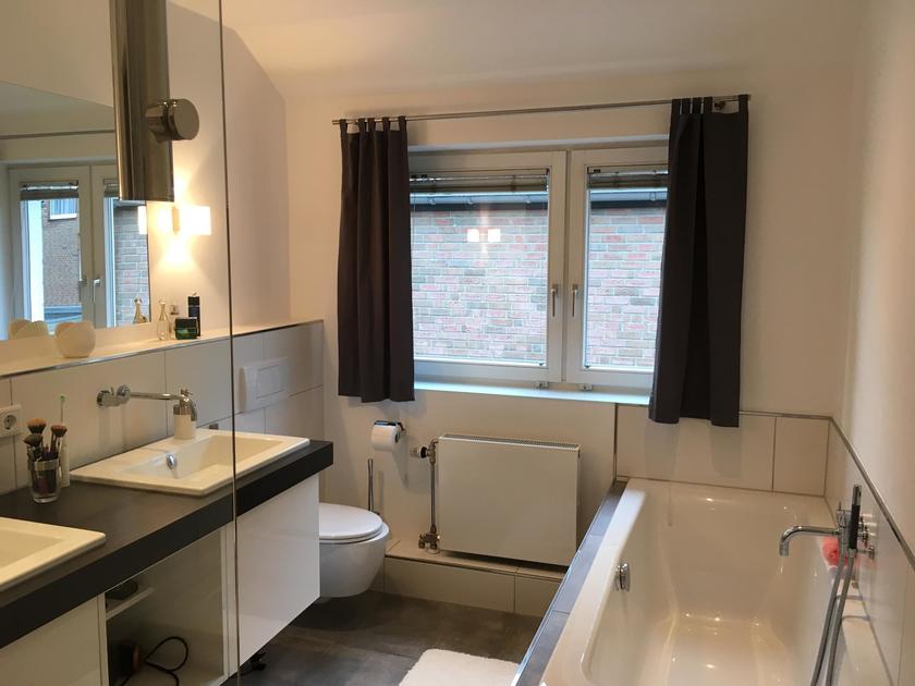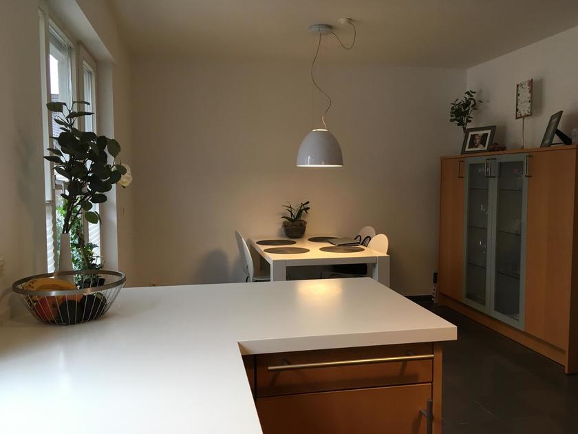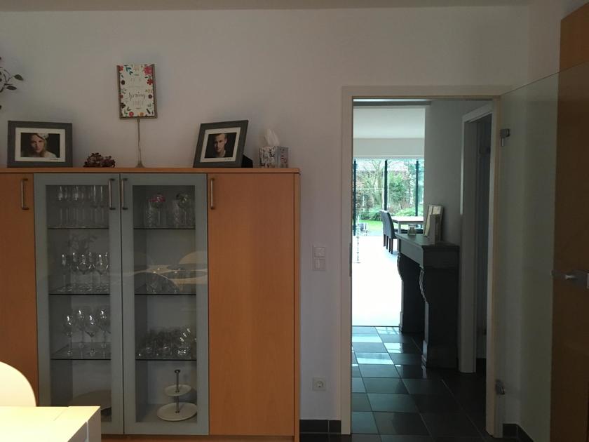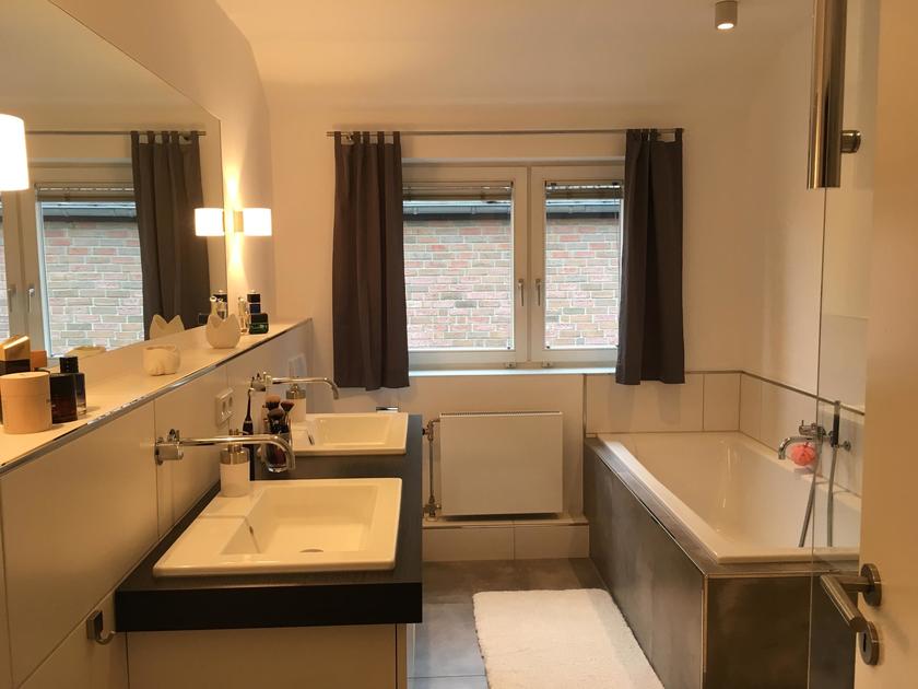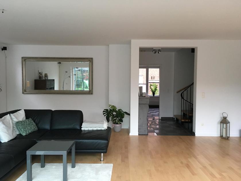 Freistehendes, zweigeschossiges Einfamilienhaus in einer ruhigen Einbahnstraße mit ausgebautem Dachgeschoss, sowie ausgebautem Keller und einem großen wunderschönen Glas-Wintergarten. Im geräumigen und hellen Eingangsbereich des Hauses befindet sich ein Einbauschrank als Garderobe. Ein geräumiges Gäste-WC, mit einem Fenster zum Vorgarten ist ebenfalls vom Eingangsbereich zu erreichen. Die Küche verfügt über eine eingebaute Bulthaupt-Küche die U-förmig eingebaut ist und etwas in den Raum hineinragt und ihn damit optisch vom Essbereich abgrenzt. Hier kann das Team kochen und bis zu 10 Personen als Essensbereich/ Teamaufenthalt verwenden. Im Obergeschoss befinden sich ein leer stechendes Zimmer und ein Kinderzimmer mit großen Fenstern und Blick in den Garten. Diese Räume können für Teamaufenthalt, Maske und Garderobe benutzt werden. Das Schlafzimmer ist mit einem hellen Boxspringbett und leicht rosafarbener Wand hell gestaltet und durch die große Fensterfront des Erkers (Eckfenster) sehr hell. Das anliegende Ankleidezimmer verfügt über Nolteschränke die baugleich sind. Falls gewünscht können hier die Garderobe untergebracht werden. In der ersten Etage befindet sich auch ein Bad mit zwei Waschbecken und einer Badewanne und einer offenen Dusche (Glas).