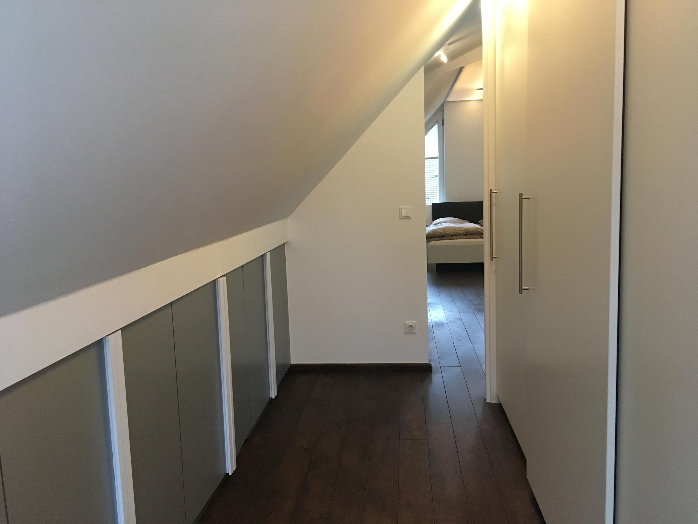 Im exklusiv ausgebauten Dachgeschoss befindet ein großzügiger Schlafbereich zur Gartenseite, der auch zur Maske und Garderobe verwendet werden kann. Hier gibt es auch einen Ankleidebereich mit Einbauschränken, die als Stauraum für die Garderobe benutzt werden kann. Das Dachgeschoss bietet auch ein modernes offenes Bad (Dusche) mit separatem WC. Der Garten ist abwechslungsreich bepflanzt und im Sommer sehr farbenreich. Falls gewünscht können auch Möbelstücke entfernt werden.