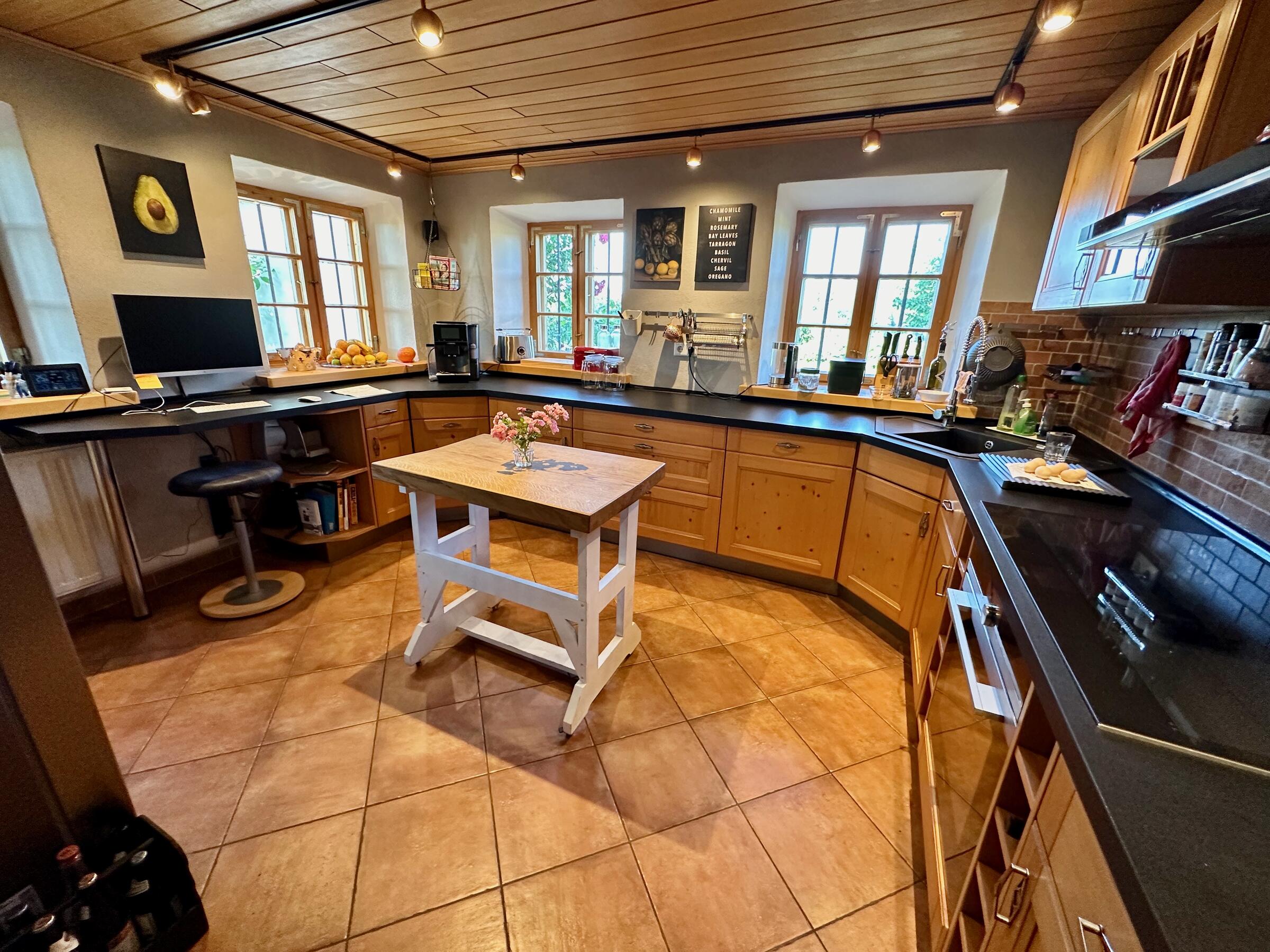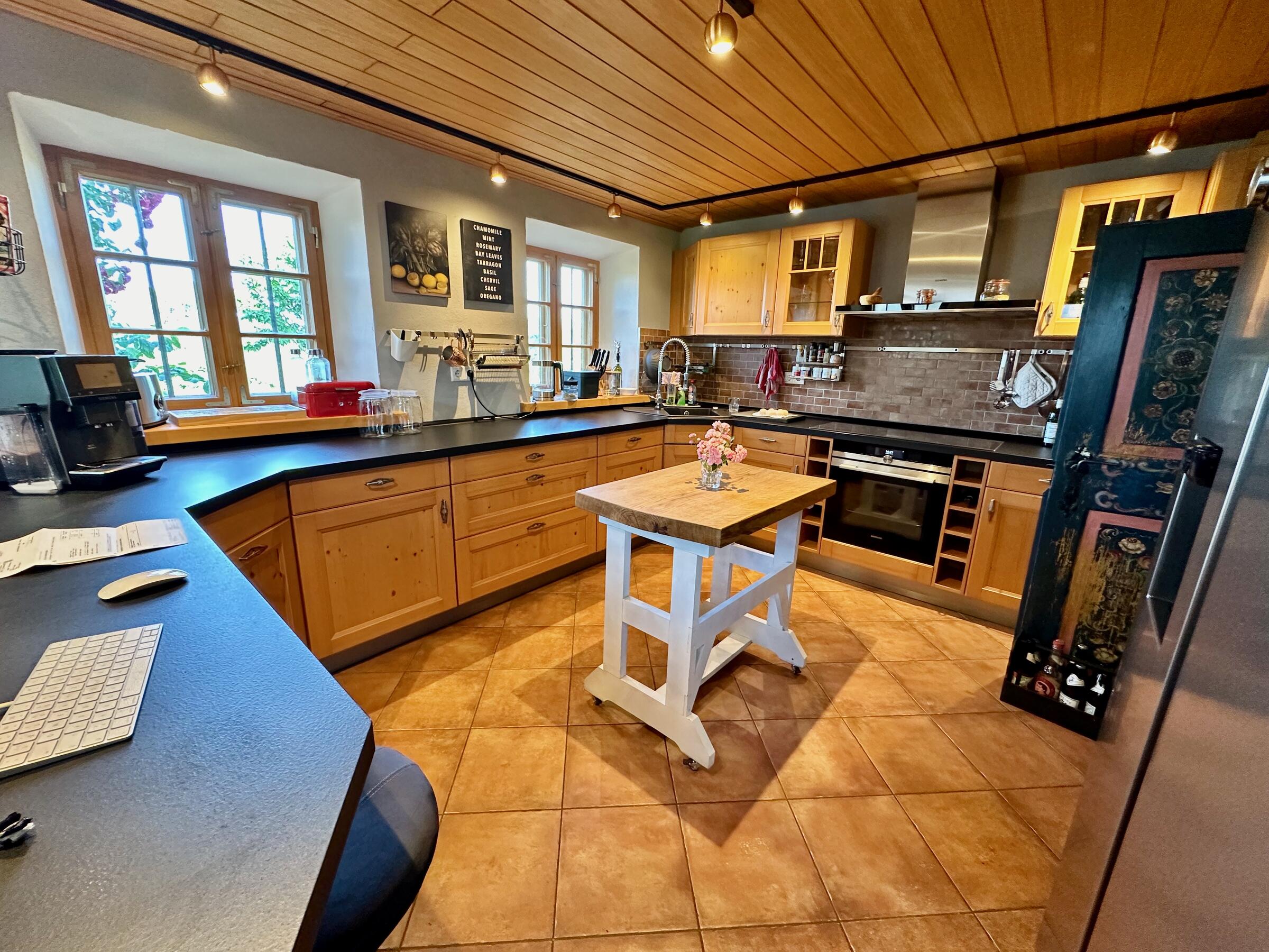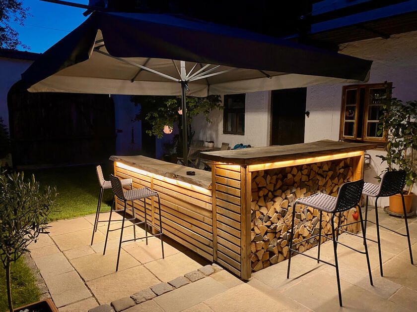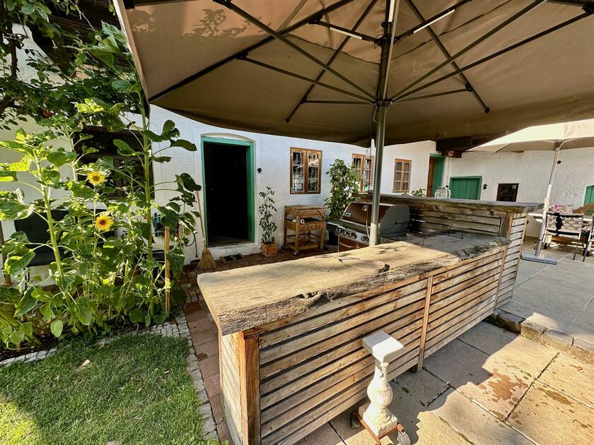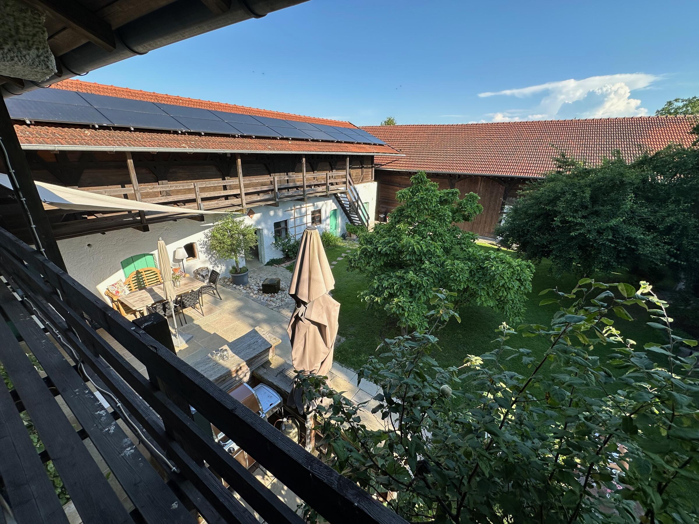 Unser wunderschöner Vierseithof ist nahezu vollständig renoviert und befindet sich fast in Alleinlage. Das Haupthaus bietet ca. 240 m² Wohnfläche. Hinzu kommen ca. 600 m² Nutzflächen. Die Stube mit Kachelofen ist gemütlich, aber nicht zu bäuerlich. Das Wohnzimmer hat einen offenen Kamin. Das große Bad mit großer Badewanne ist stylisch-gemütlich. Der idyllische Innenhof bietet eine großzügige Terrasse und einem Grillplatz mit L-förmiger Theke. Auf der Ostseite ist eine weitere Terrasse, daneben ein Bienenstand und auf der anderen Seite ein Hühnerauslauf. Im Hühnerstall haben 22 Hühner ihr Zuhause. Wir haben auch einen ca. 200 m² großen Bauerngarten. Es gibt noch einige zusätzlichen Räume, unter anderem eine großzügige Werkstatt mit ca. 20 m². Ein Gästezimmer mit 13 m² und ein Büro mit 25 m². Im Erdgeschoss des Stallstadels könnte auf 60 m² ein regengeschütztes Crew-Catering eingerichtet werden. Unser Hof ist mit einer 1Gbit/s Glasfaseranbindung ausgestattet und hat eine sehr gute WiFi-Abdeckung. Es sind zwei 16 A Drehstromanschlüsse vorhanden. Einer davon vor dem Haus, welcher sich auch zum Laden von Elektroautos nutzen lässt. Die Wiese vor der Scheune ist auch von LKW bis 12 t befahrbar. Dort finden ebenfalls bis zu 10 Pkw einen Abstellplatz. Über die A94 kommend sind es von der Autobahnabfahrt Ampfing nur ca. 10 min bis zum Hof. Von München ist unser Hof ca. 50 Fahrminuten entfernt. Da ich 10 Jahre lang als Kameramann tätig war habe ich viel Einsicht in die Filmproduktion gewonnen.